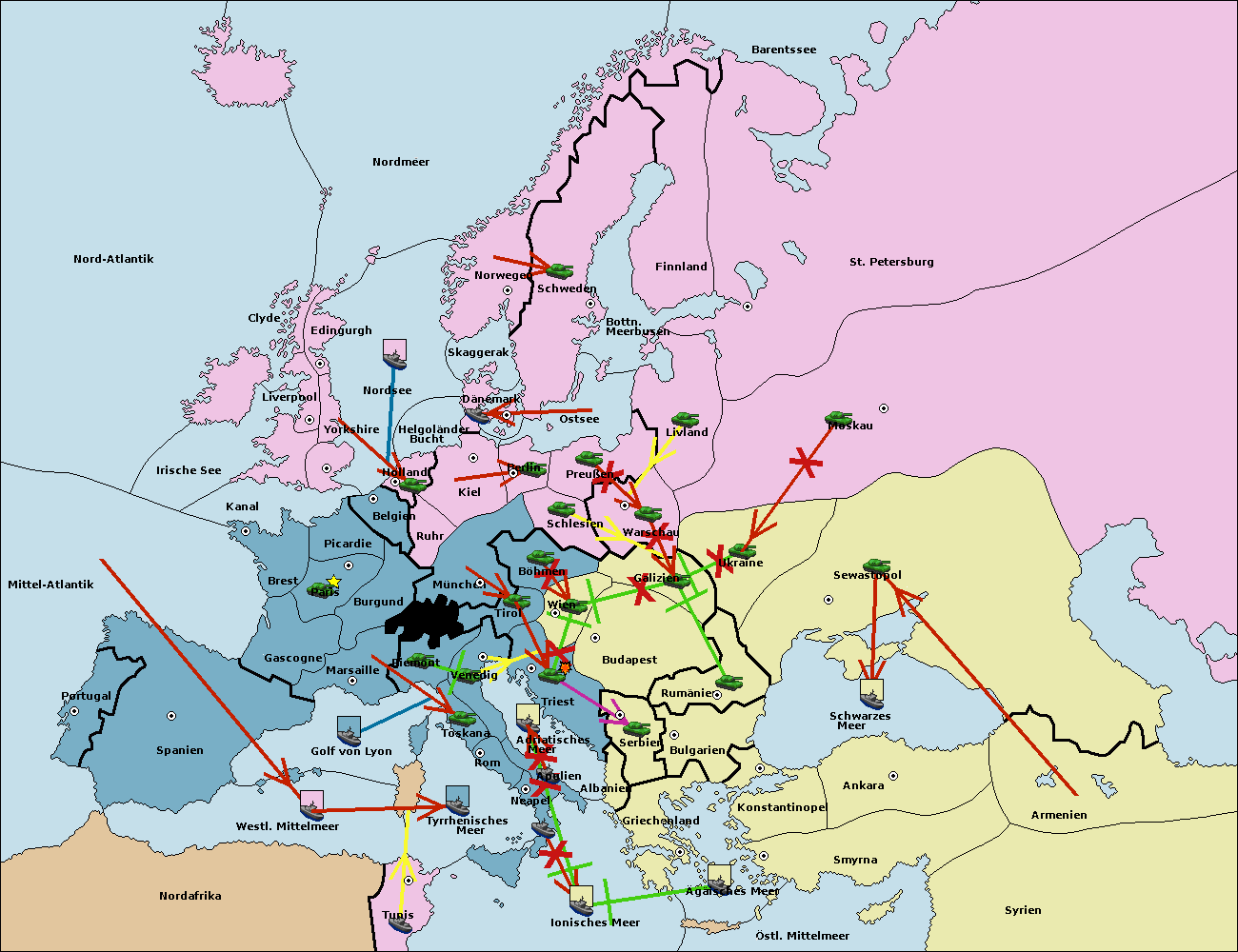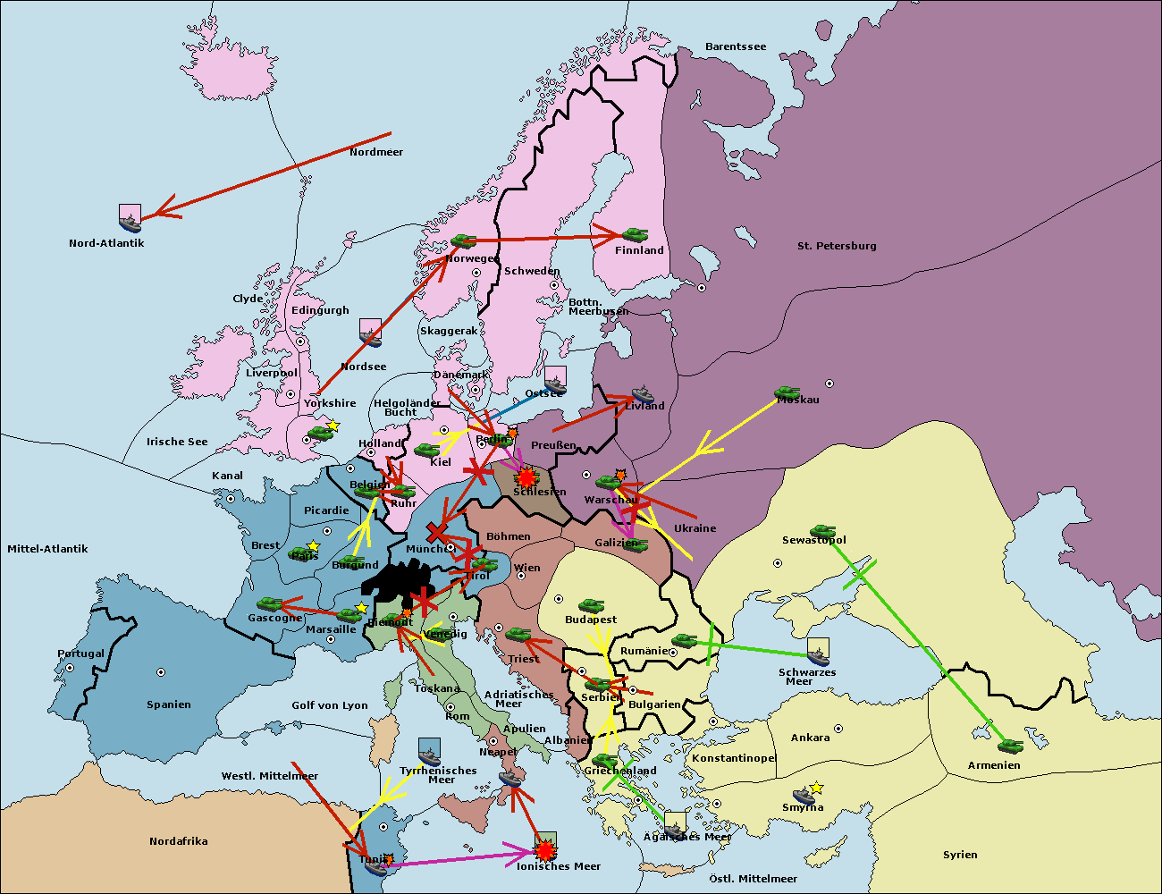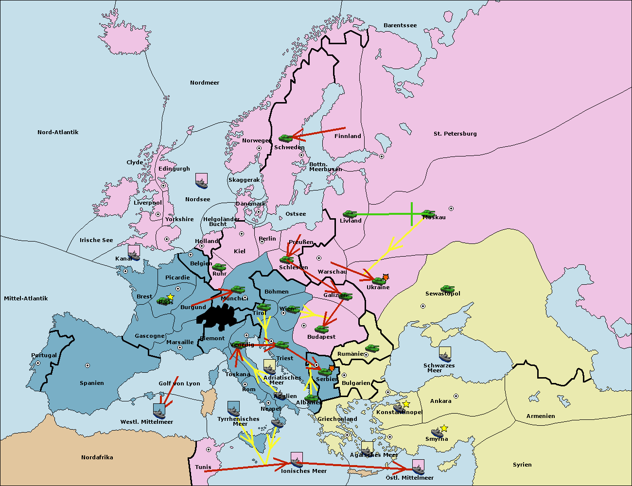 • Die Armee in München wird zerstörtFlotte in München gebaut.