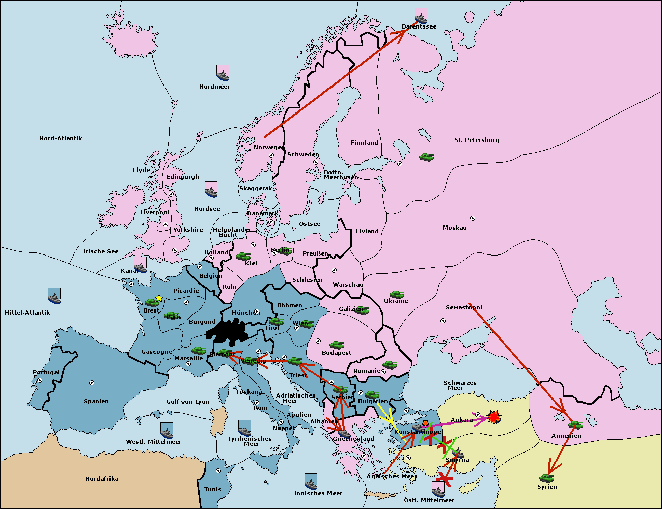 • Die Flotte in Smyrna support hold nach Konstantinopel. (gescheitert)