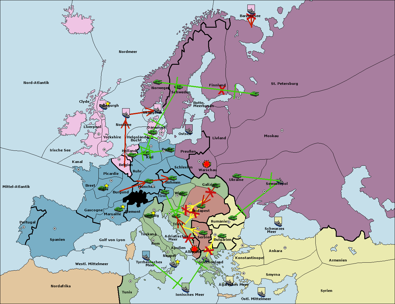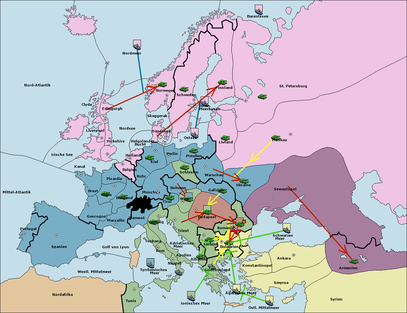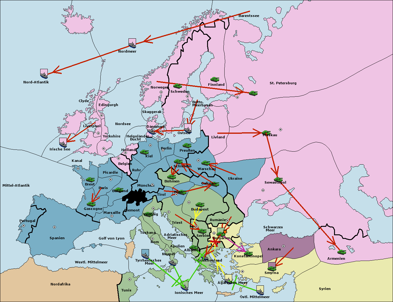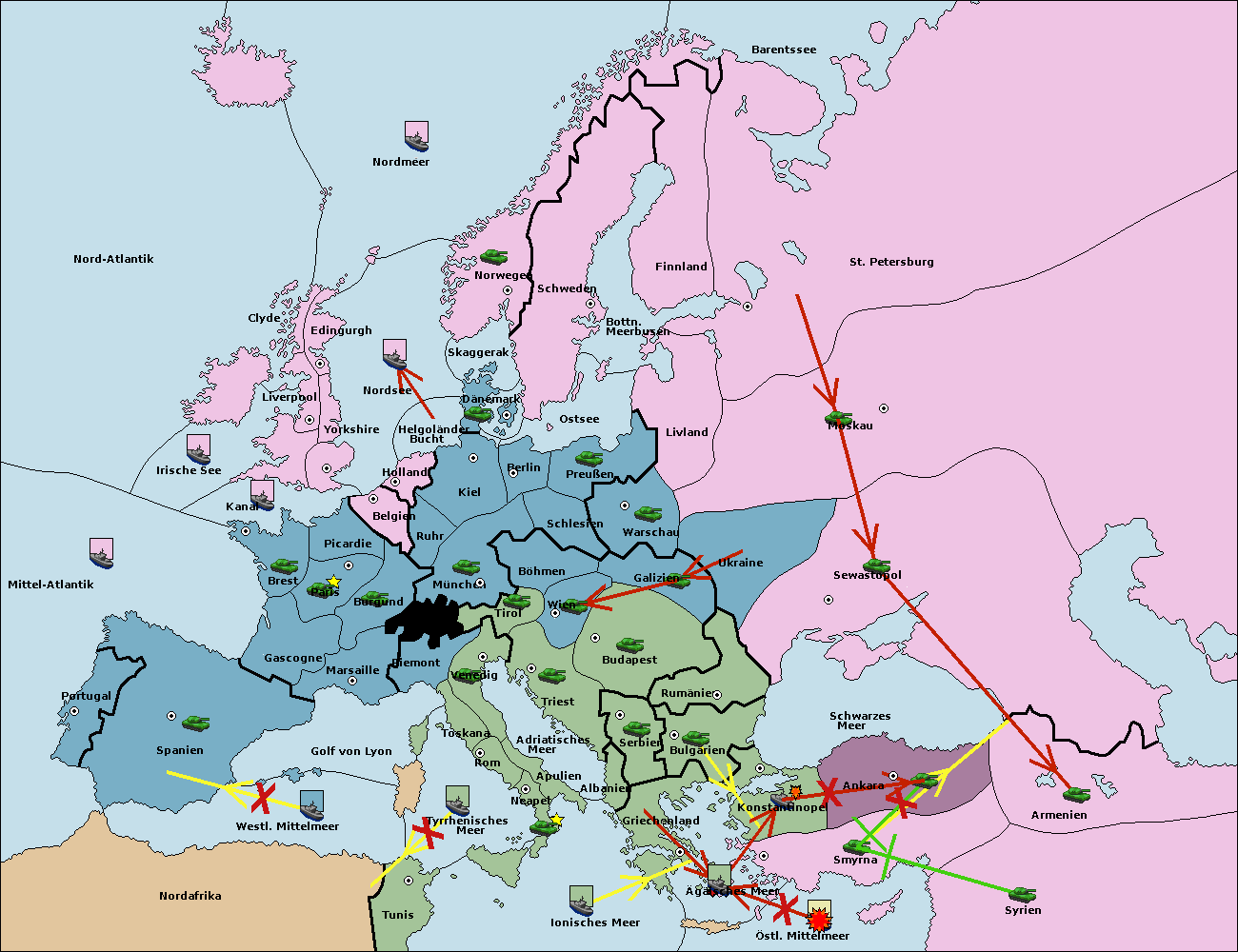 • Die Flotte in Bulgarien (Südküste) move nach Griechenland.
