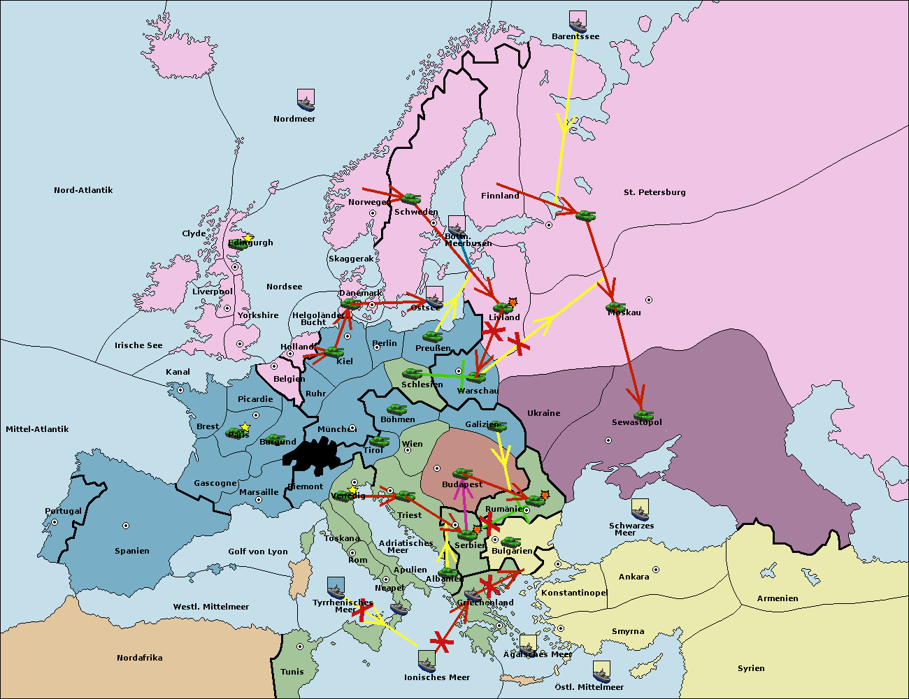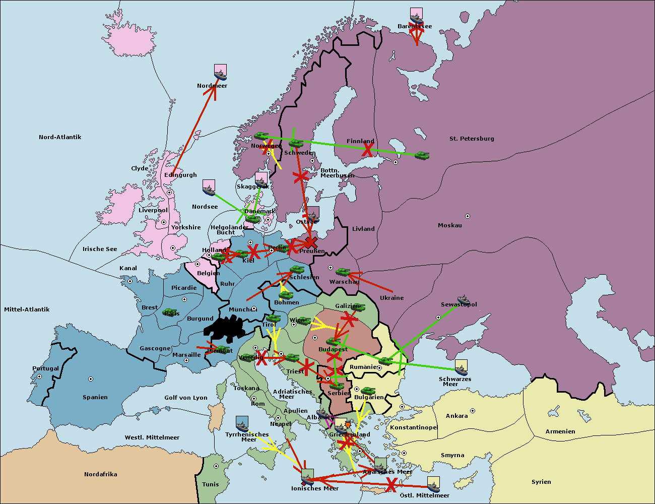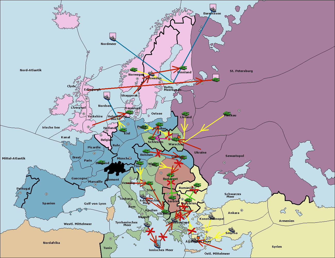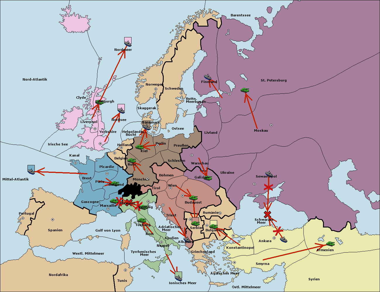 • Die Flotte in Bulgarien (Südküste) move nach Griechenland.