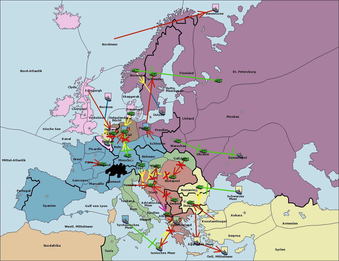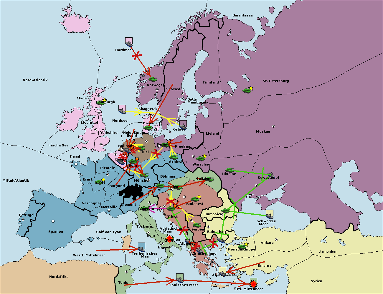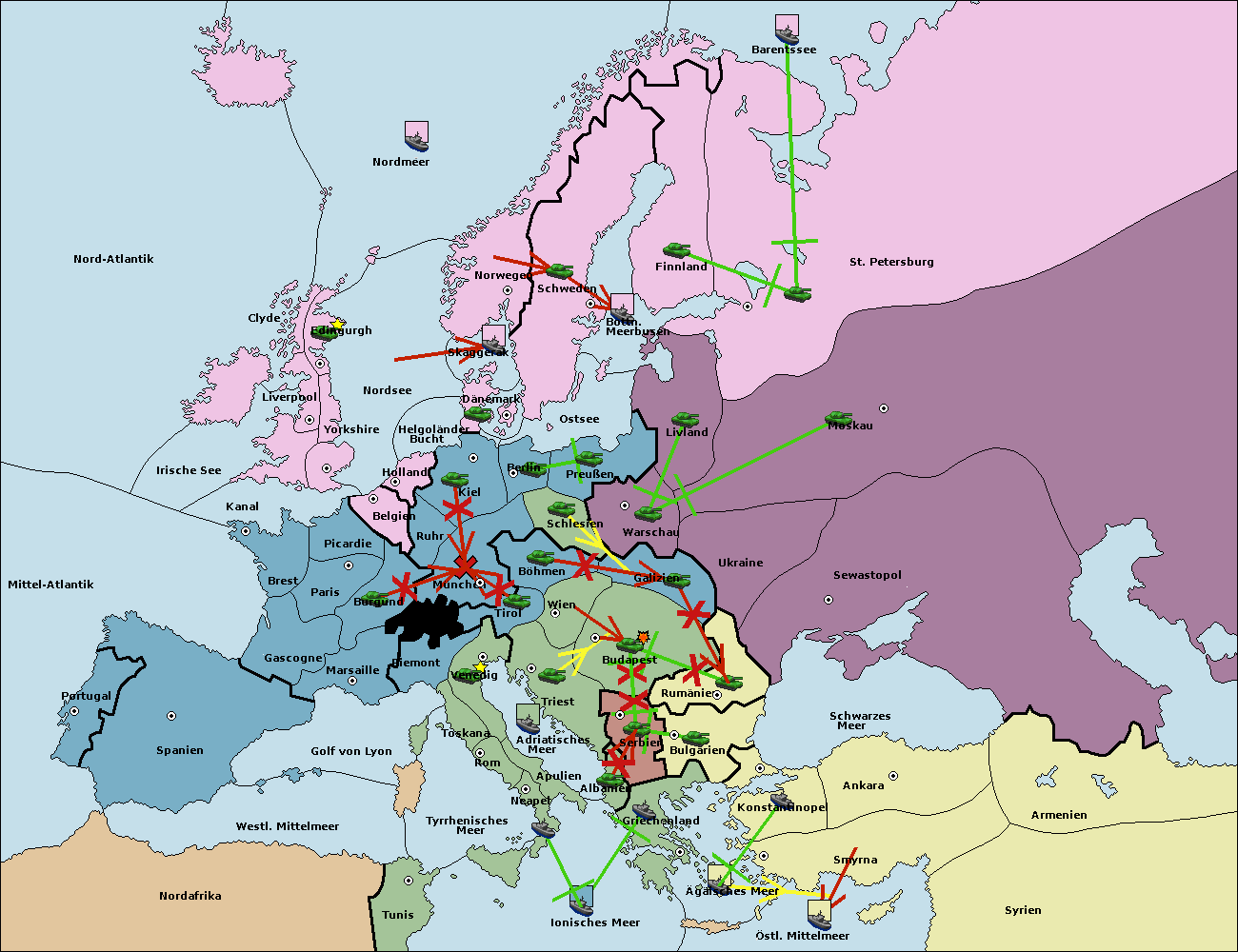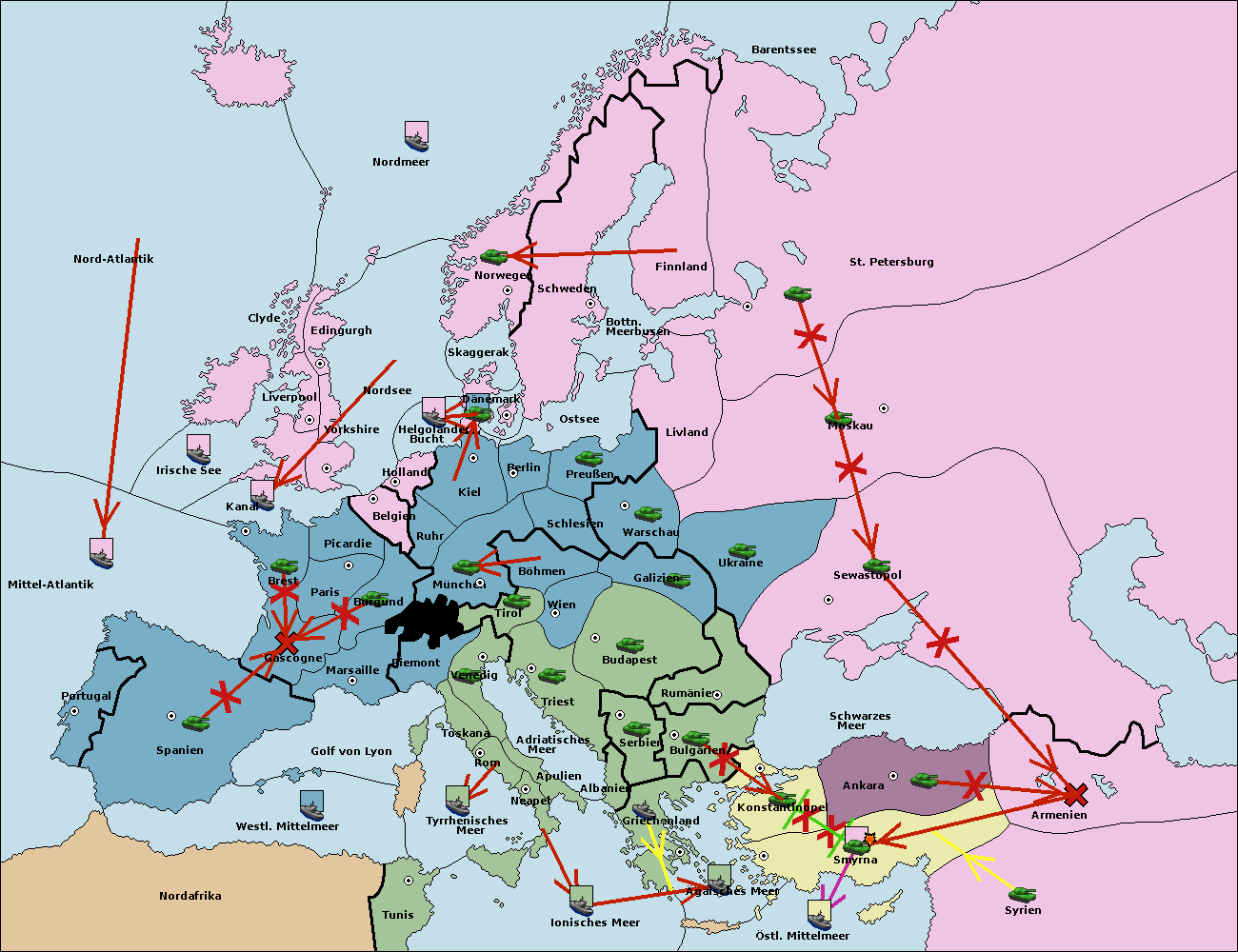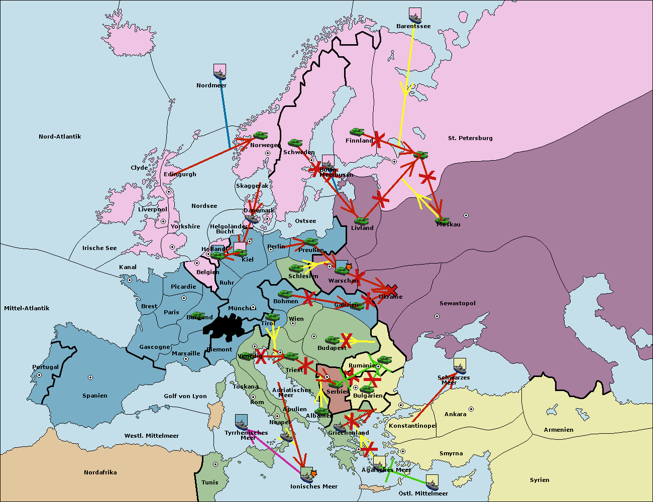 • Die Flotte in Bulgarien (Südküste) move nach Griechenland.