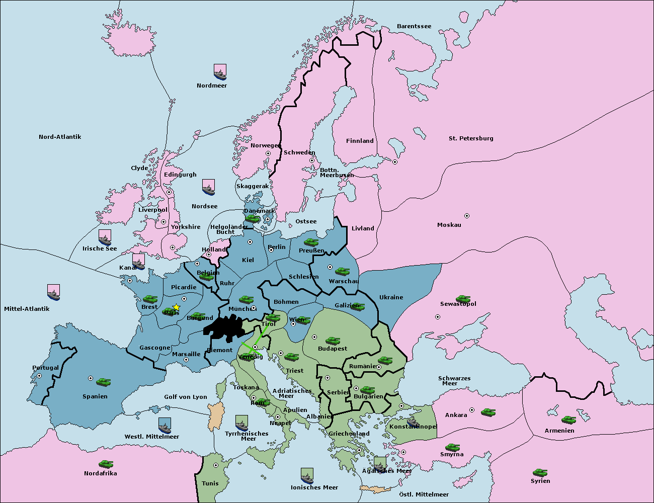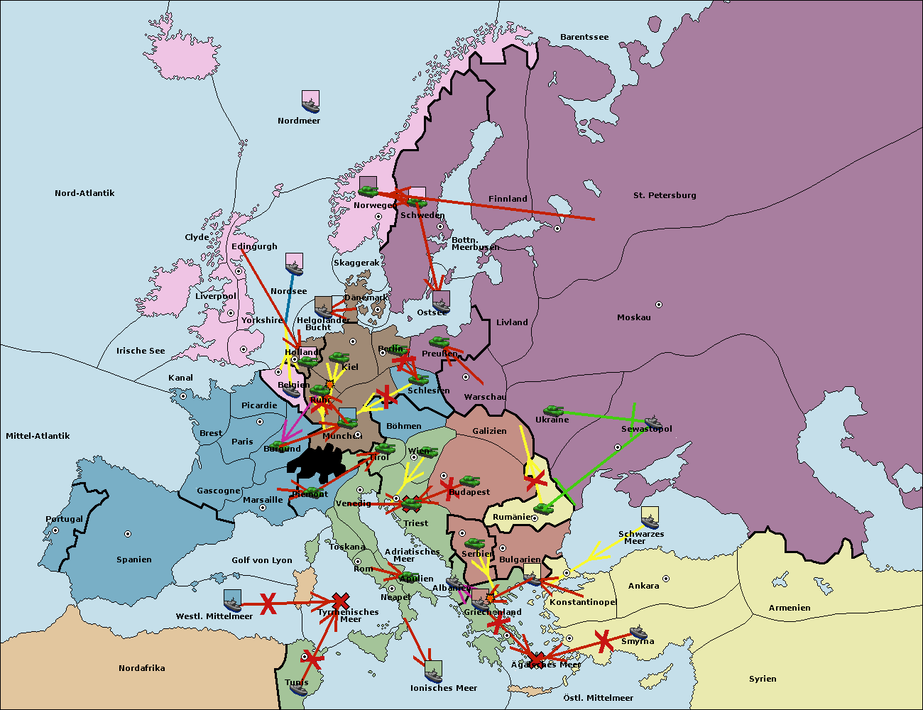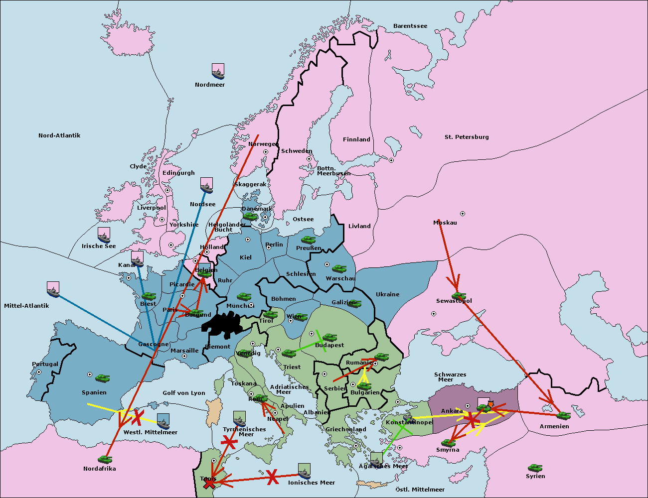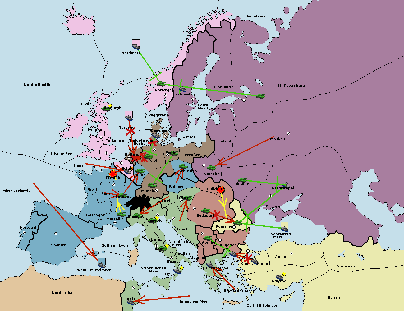 • Die Flotte in Bulgarien (Südküste) move nach Griechenland.