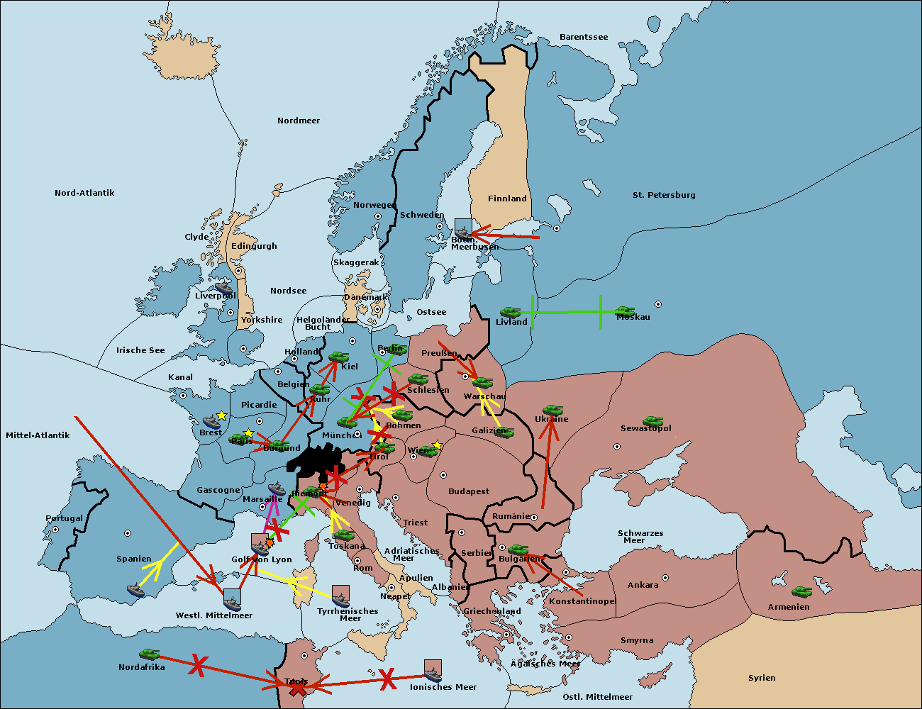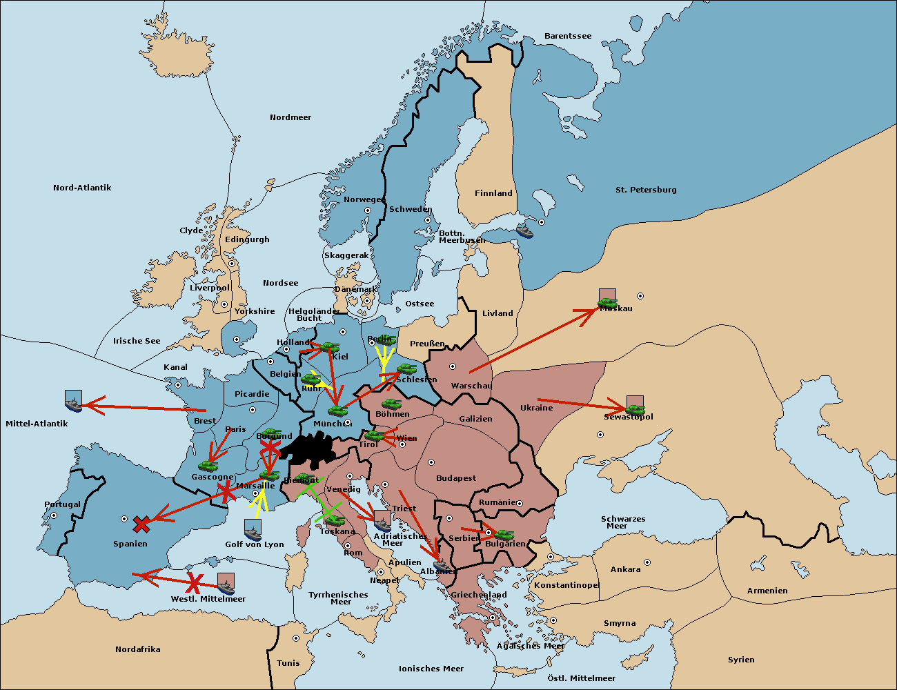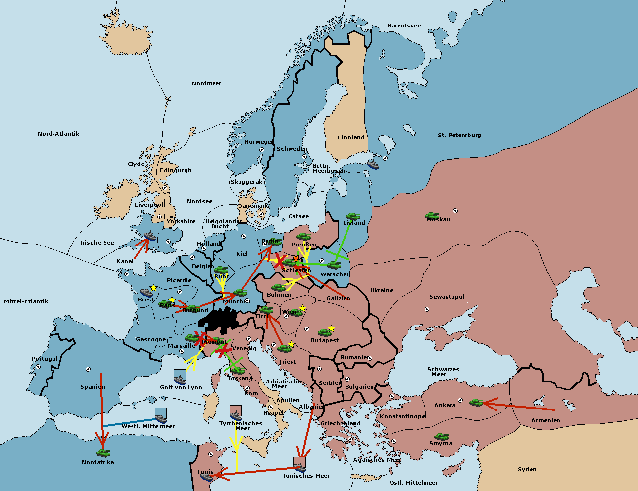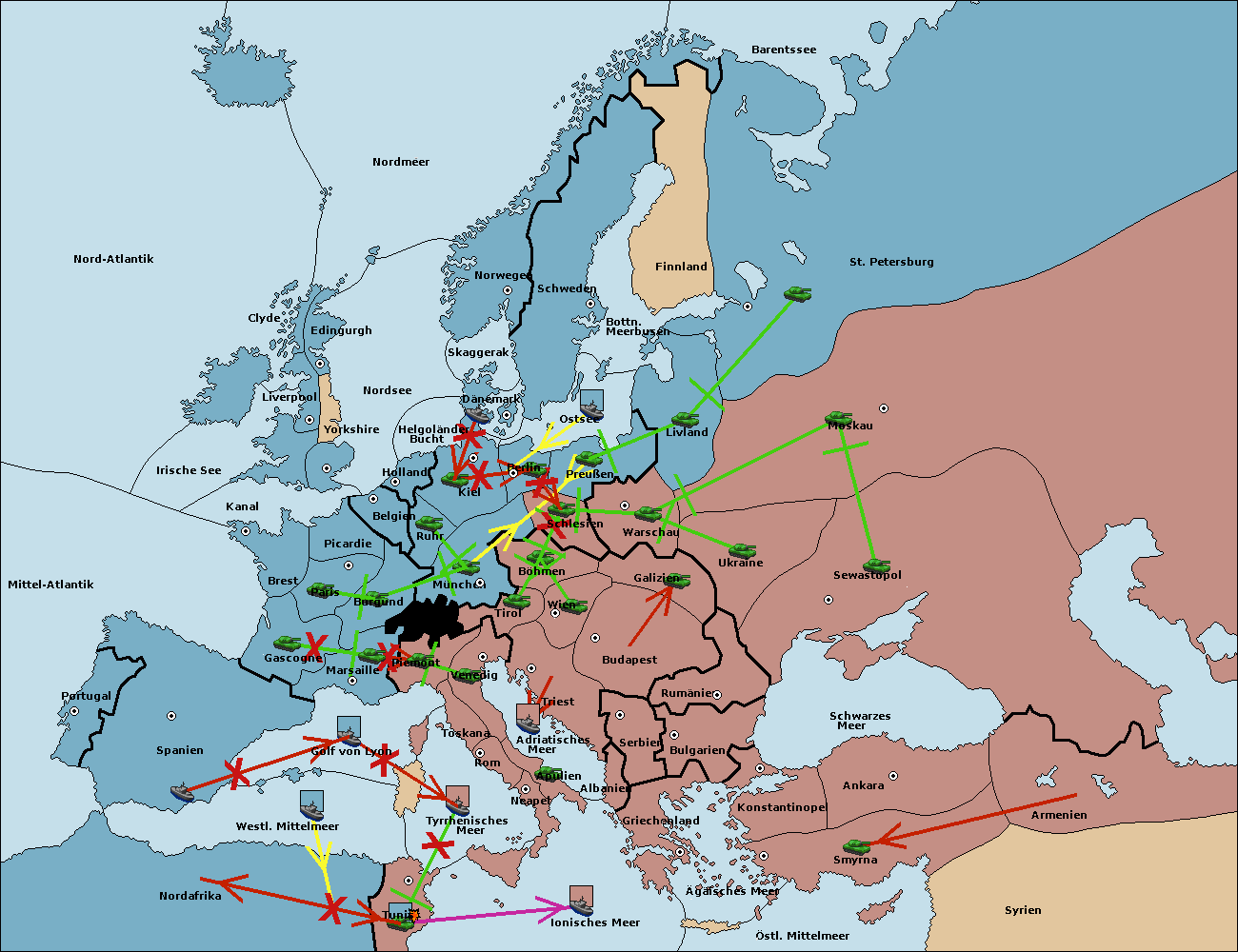 • Die Armee in Nord Afrika move nach Tunis. (gescheitert)