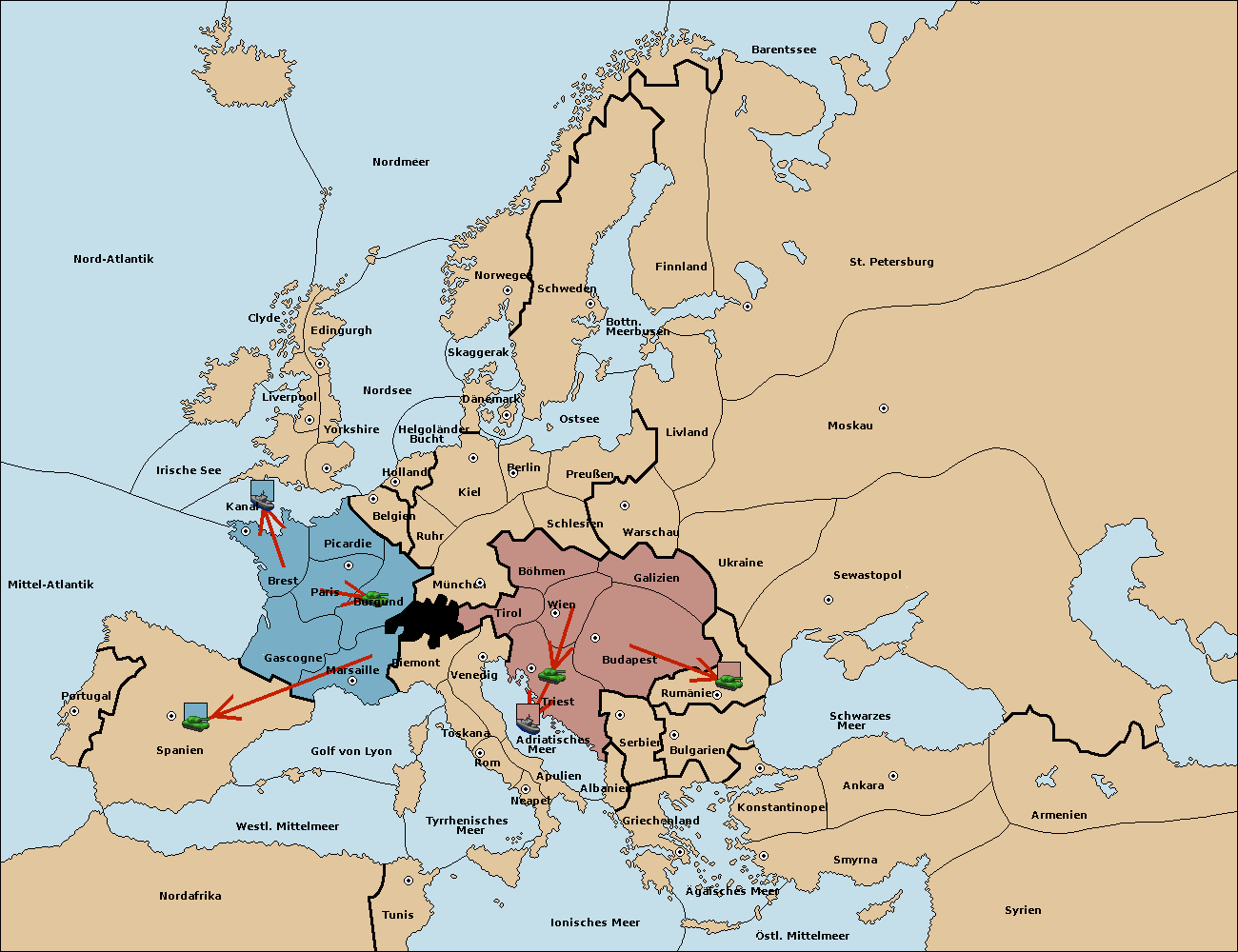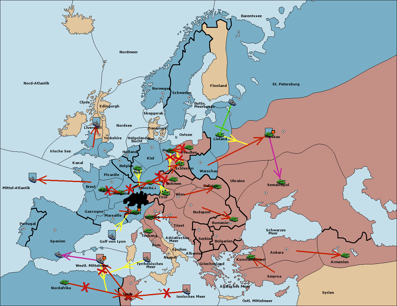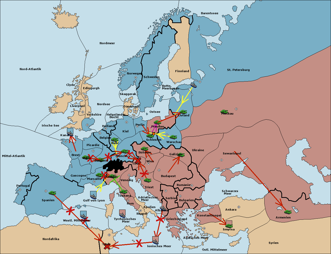 • Die Armee in Nord Afrika move nach Tunis. (gescheitert)