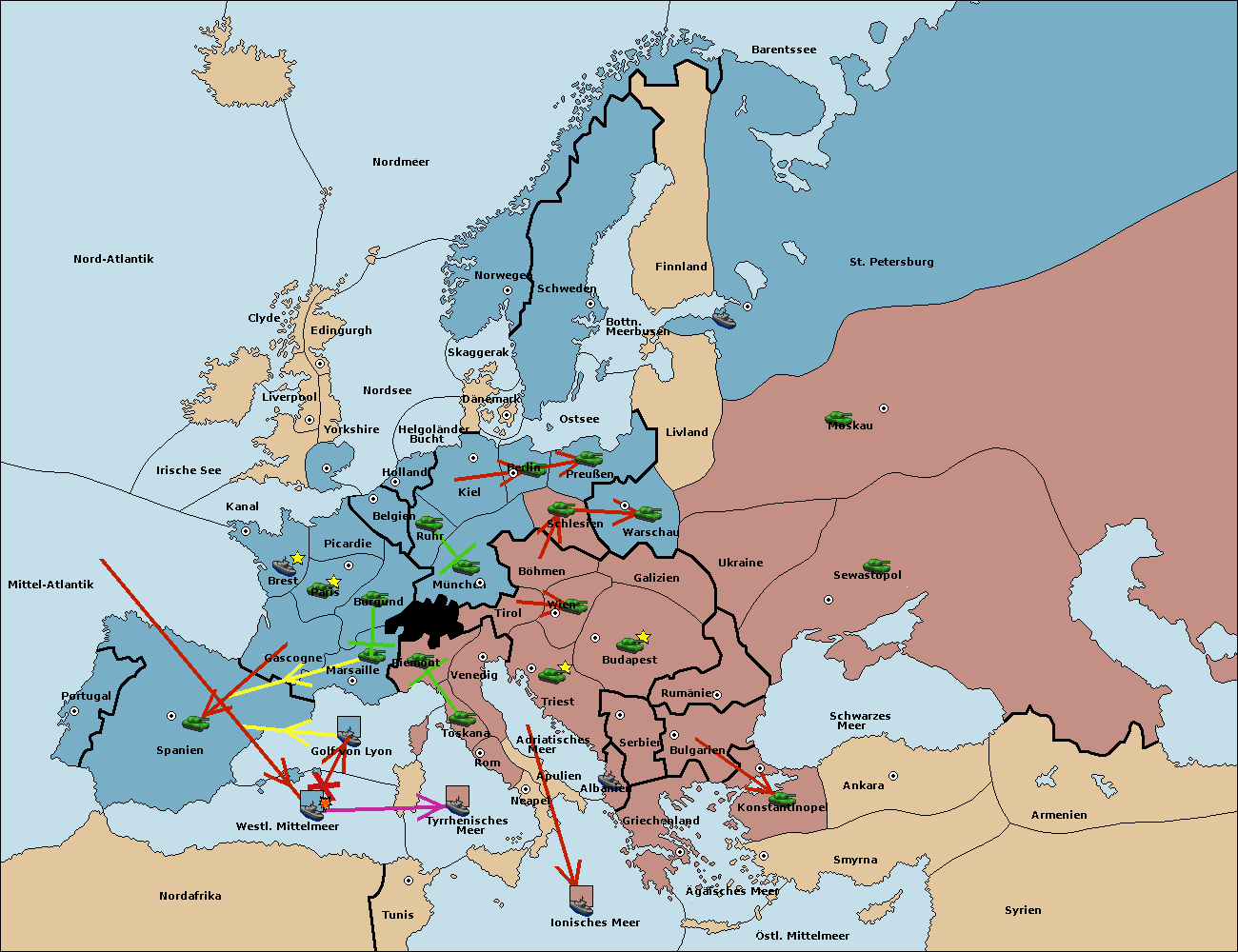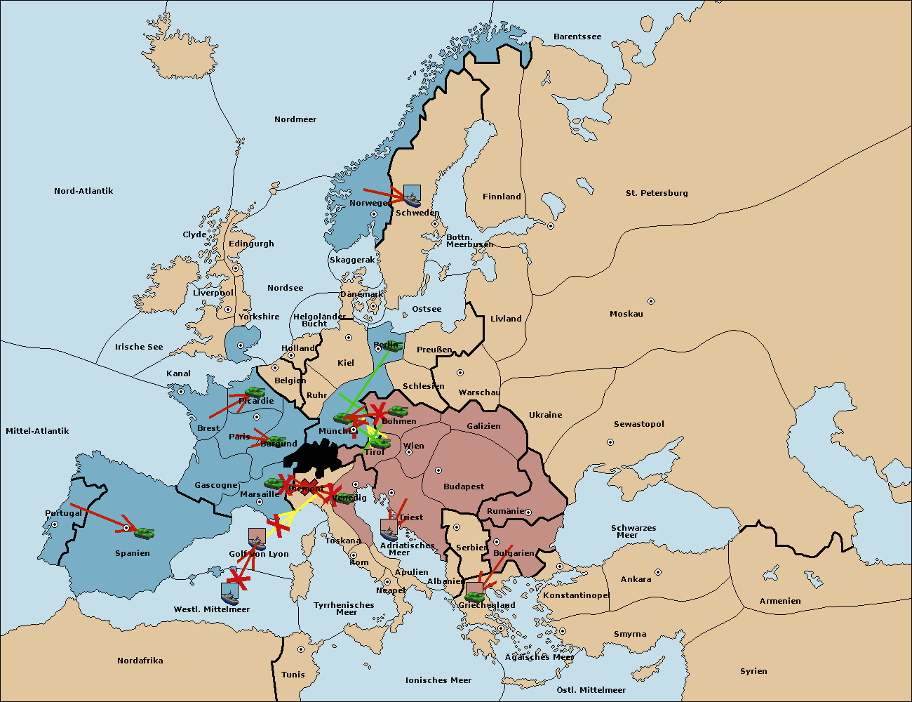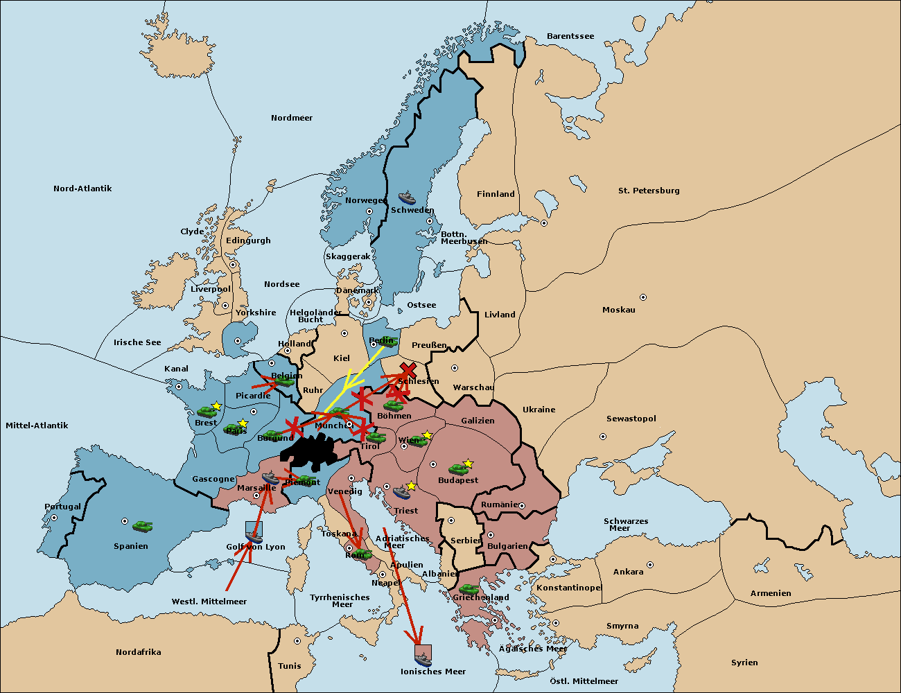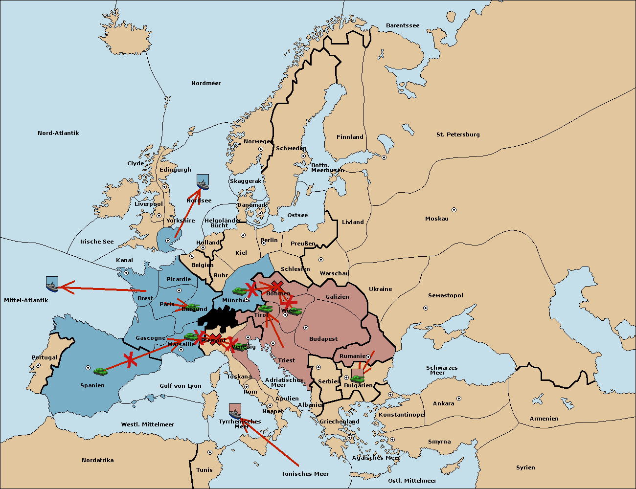 • Die Armee in Nord Afrika move nach Tunis. (gescheitert)