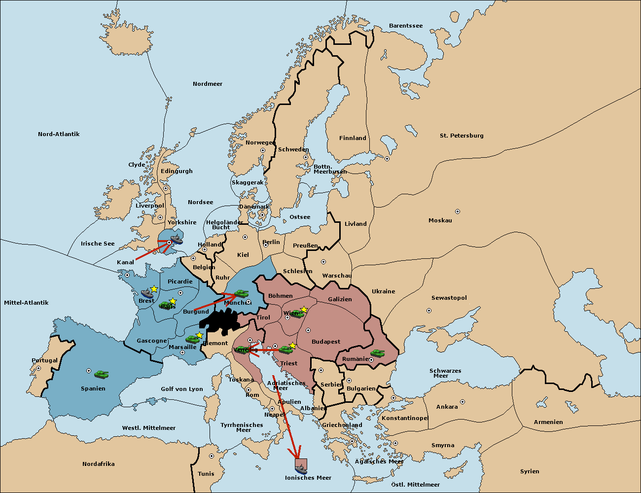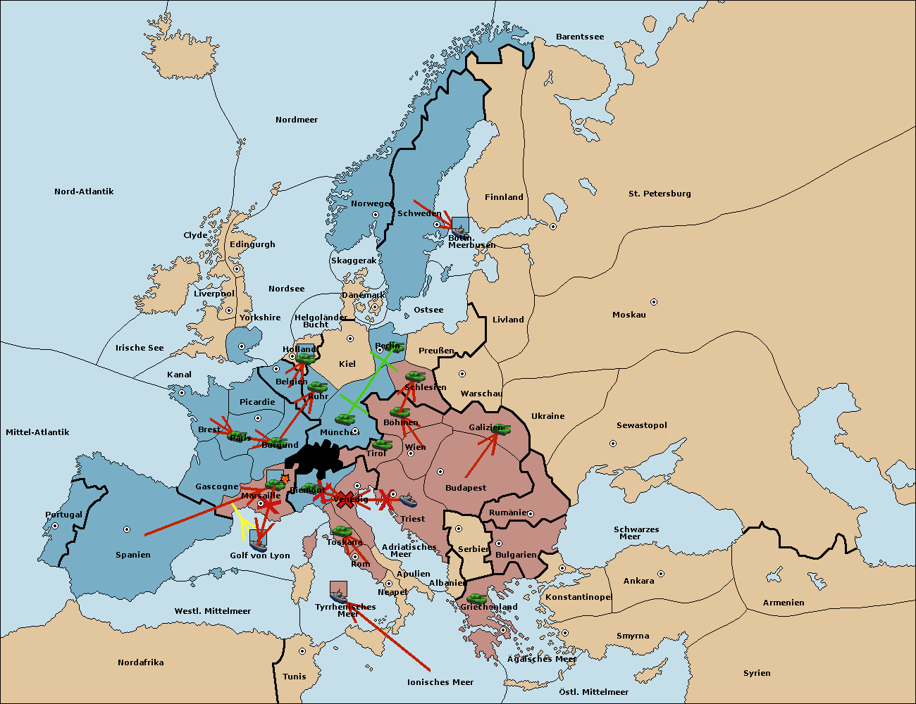 • Die Flotte in Golf von Lyon support move nach Piemont von Venedig. (gescheitert)