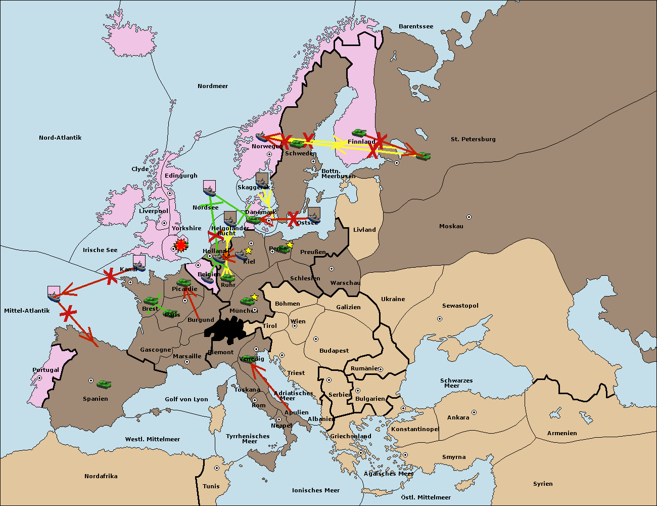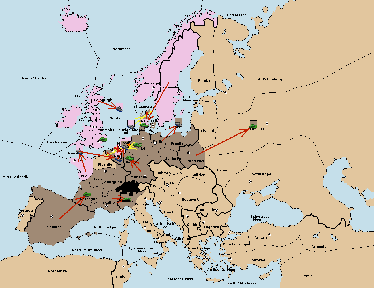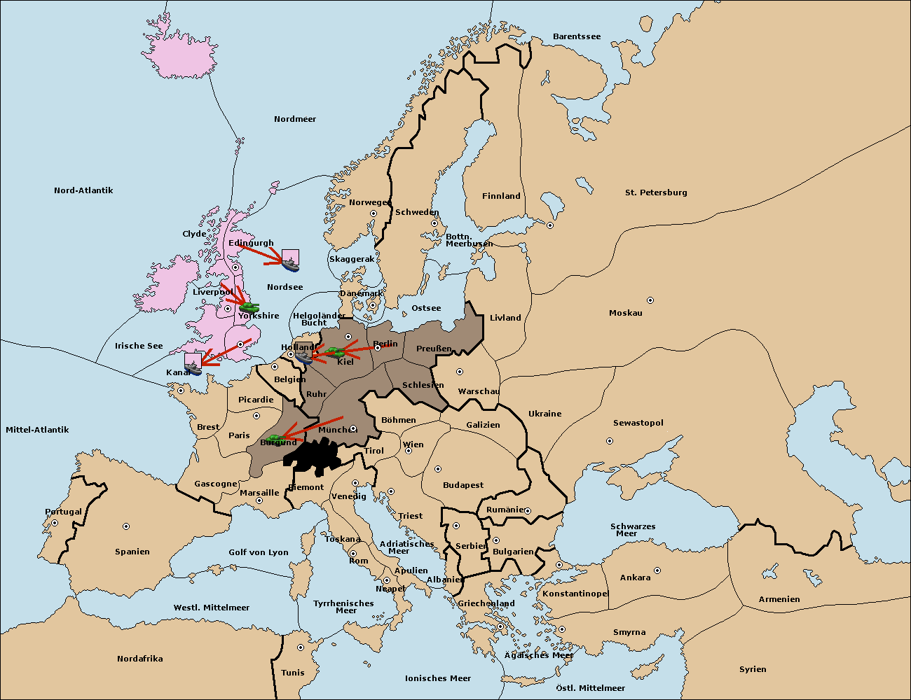 • Die Flotte in Kiel support move nach Dänemark von Ostsee. (gescheitert)