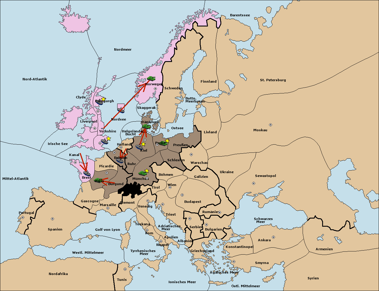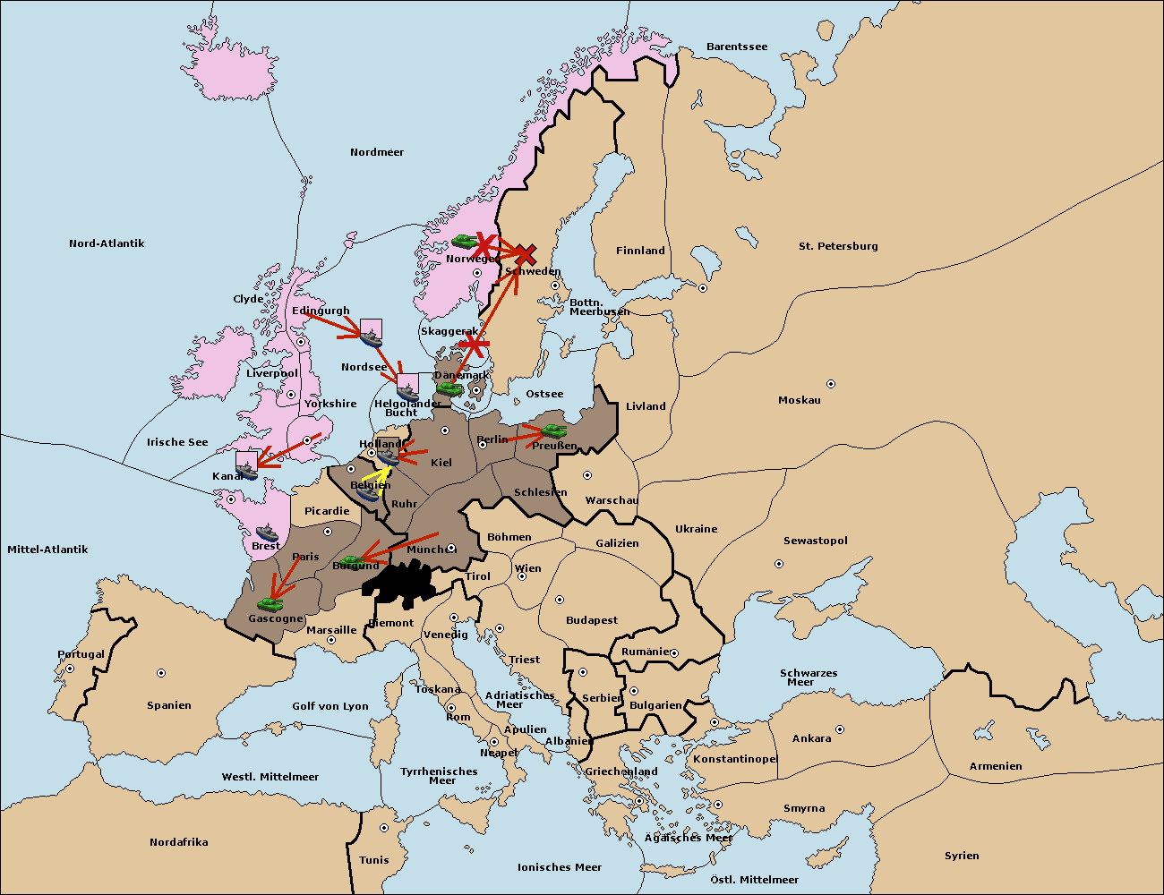 • Die Armee in London move nach Brest via Concoy. (gescheitert)
