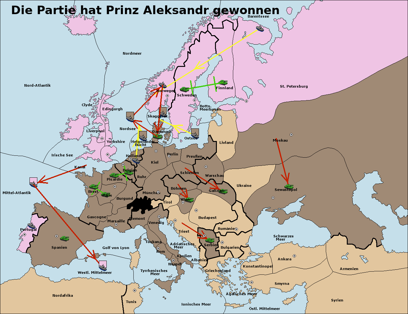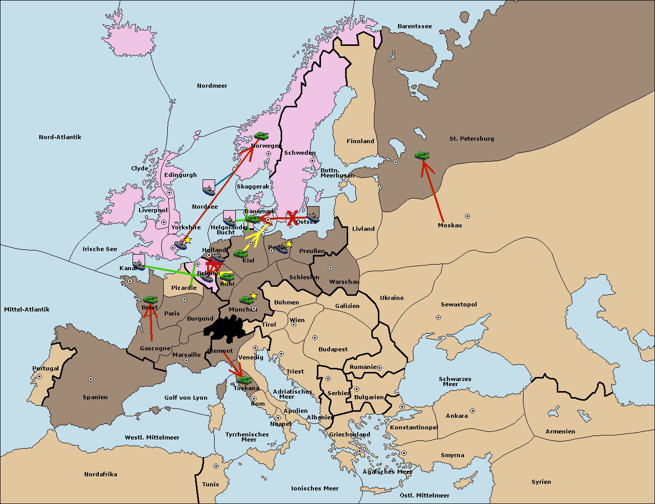 • Die Flotte in St. Petersburg (Nordküste) support move nach Norwegen von Nordsee.