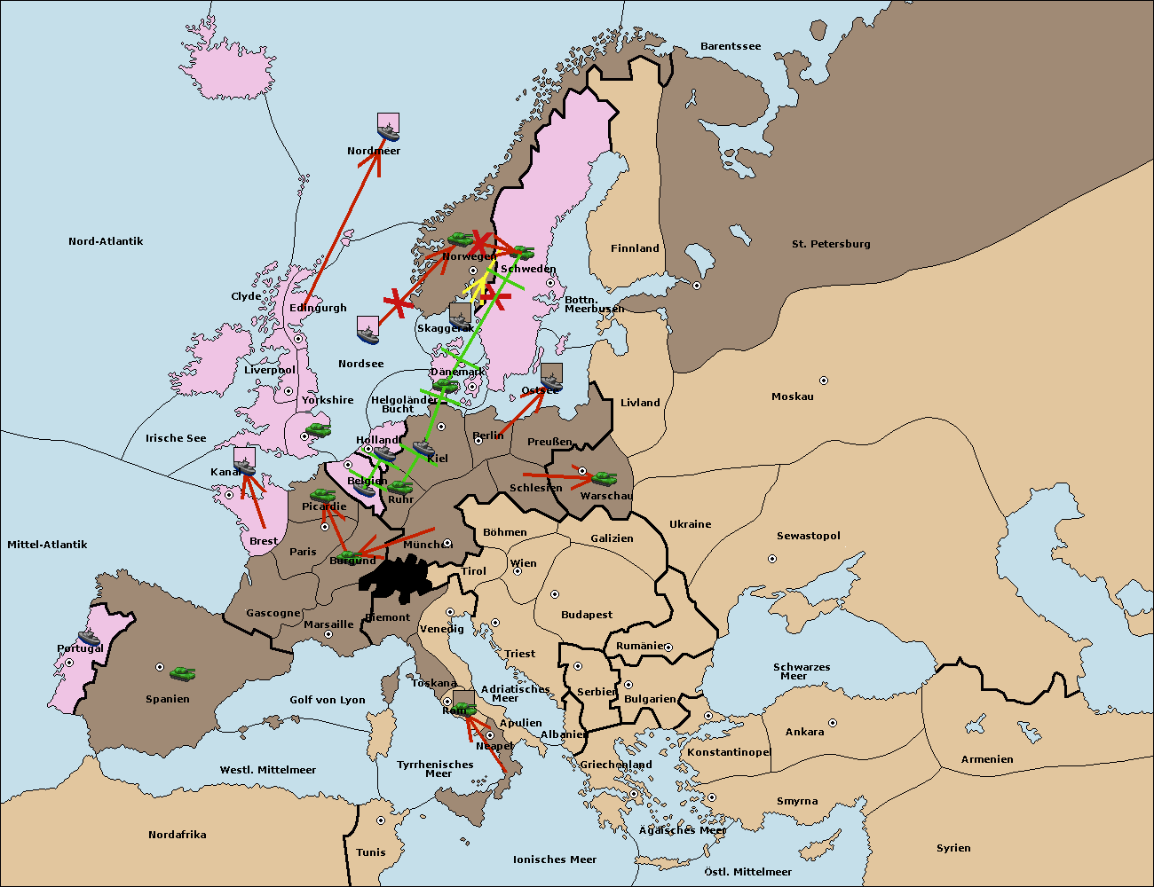 • Die Flotte in Holland move nach Belgien. (gescheitert)