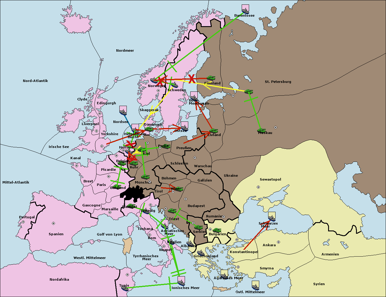 • Die Flotte in Norwegen support move nach St. Petersburg von Livland. (gescheitert)