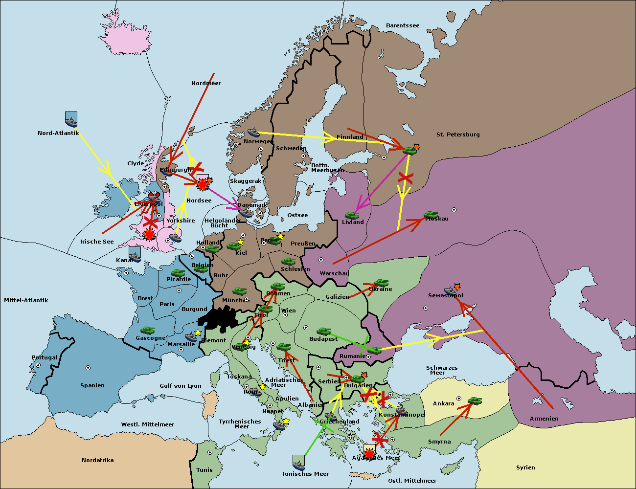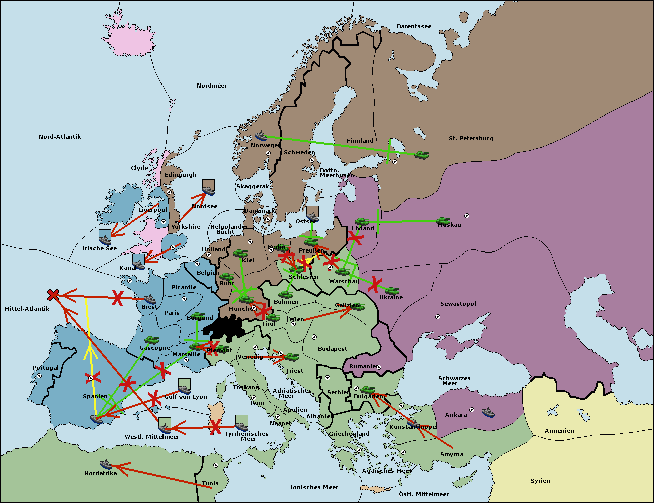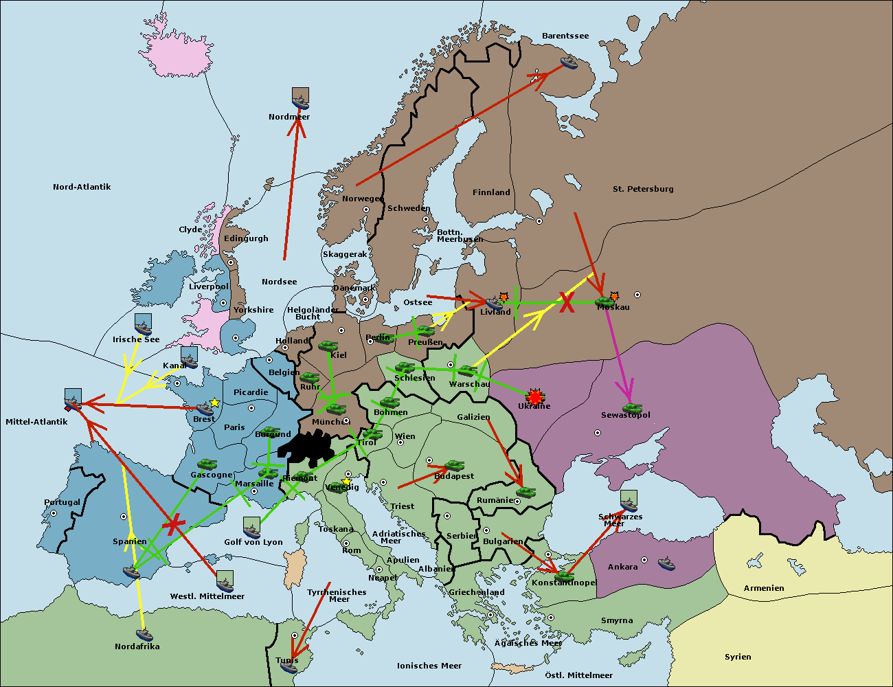 • Die Flotte in Spanien (Südküste) support move nach Marseille von Piemont. (gescheitert)