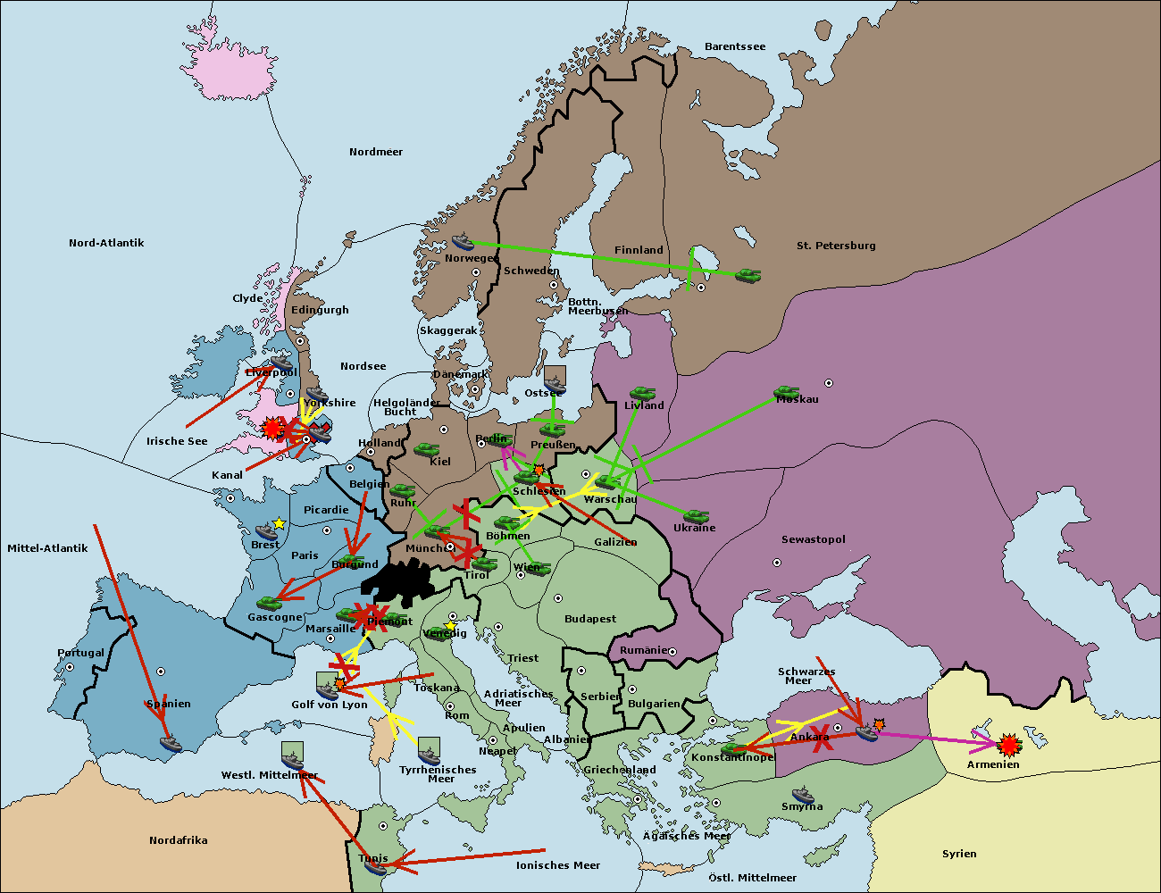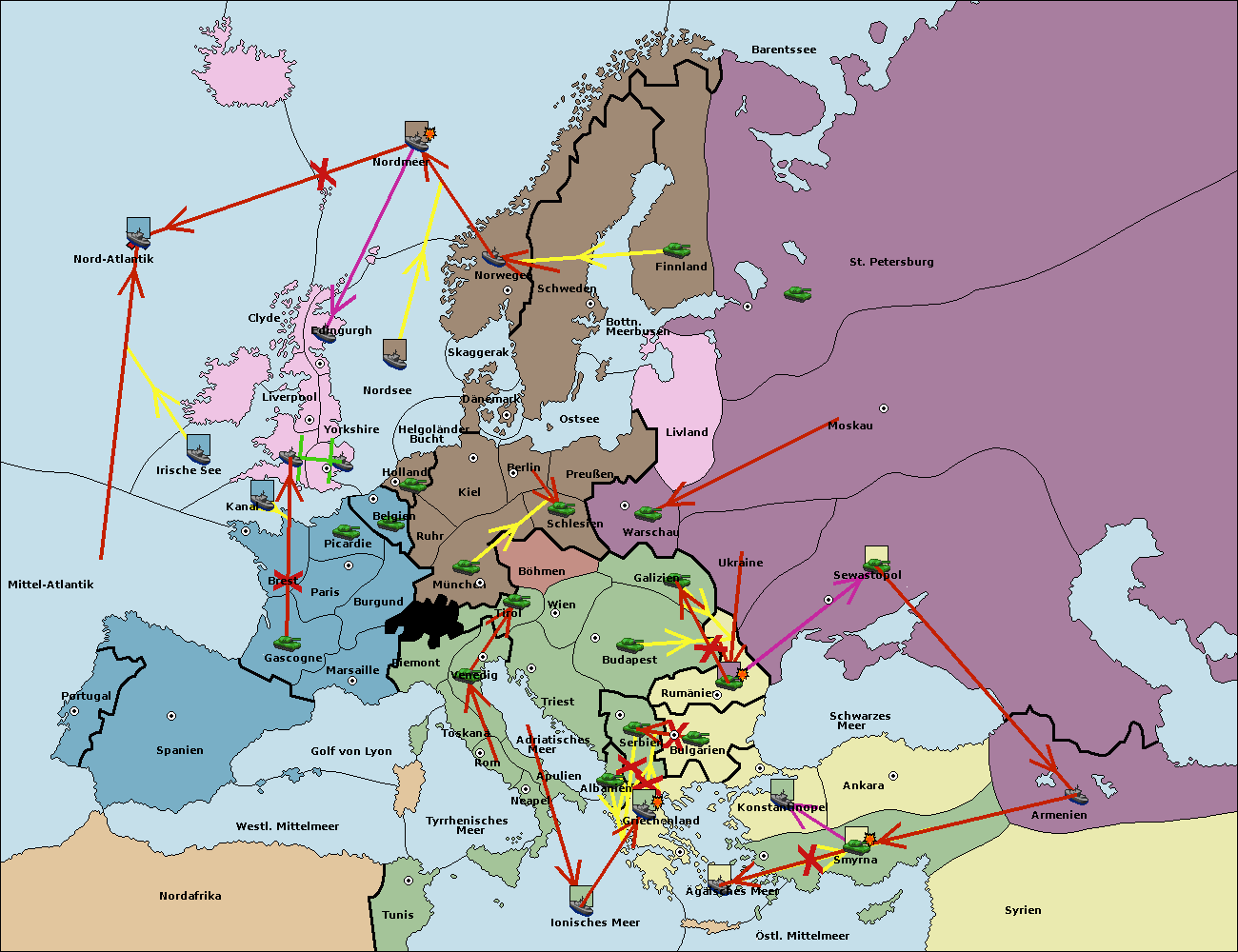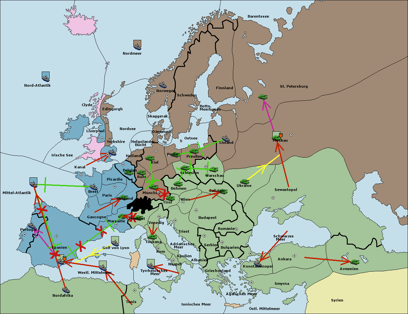 • Die Flotte in Spanien (Südküste) support move nach Marseille von Piemont. (gescheitert)