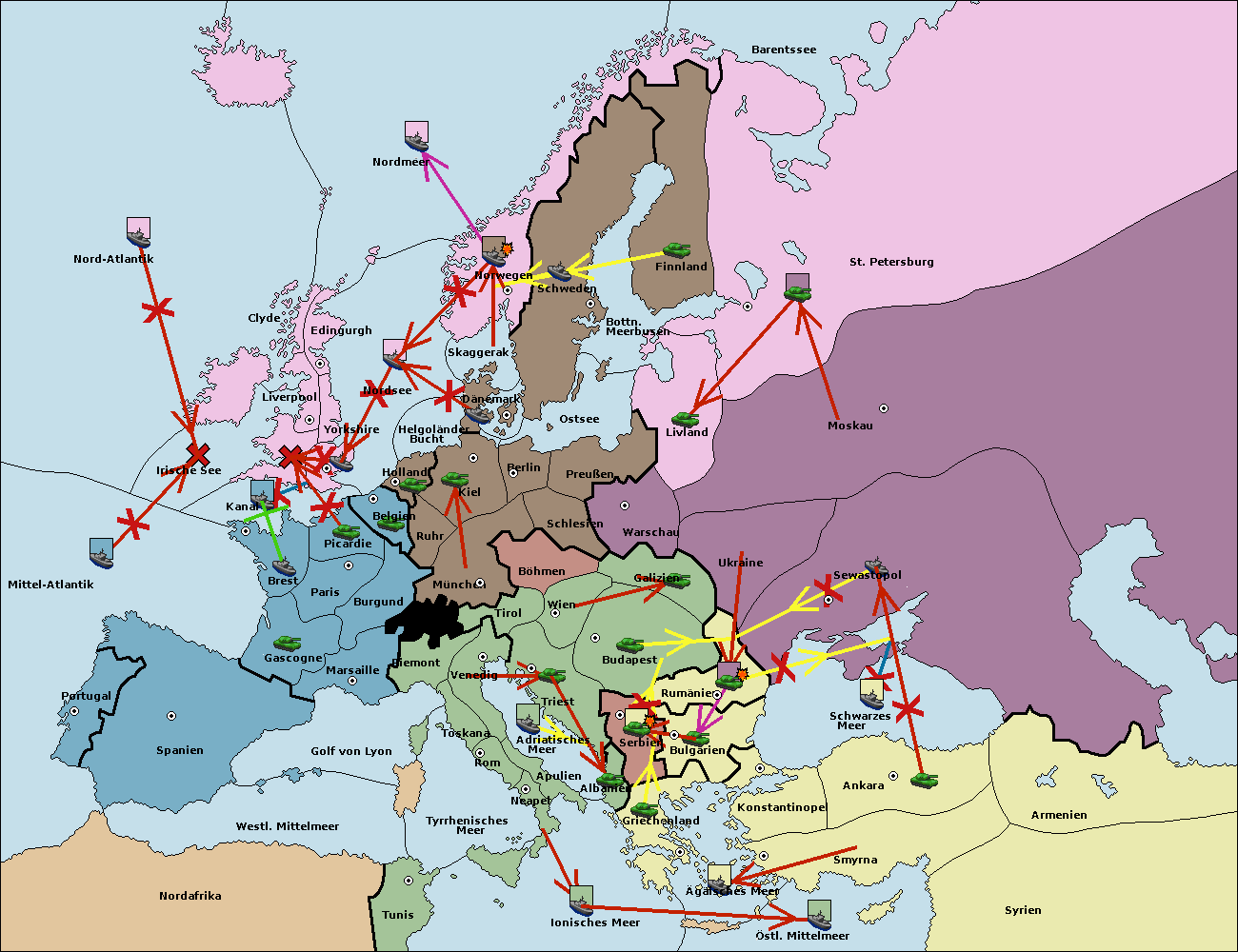 • Die Flotte in St. Petersburg (Nordküste) move nach Norwegen.