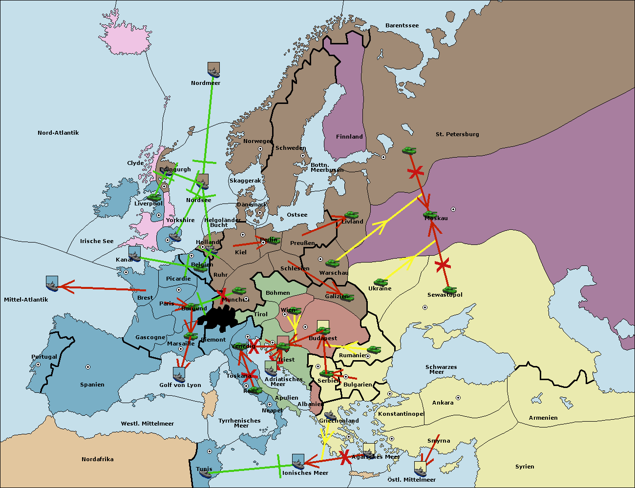 • Die Flotte in Albanien support hold nach Triest. (gescheitert)