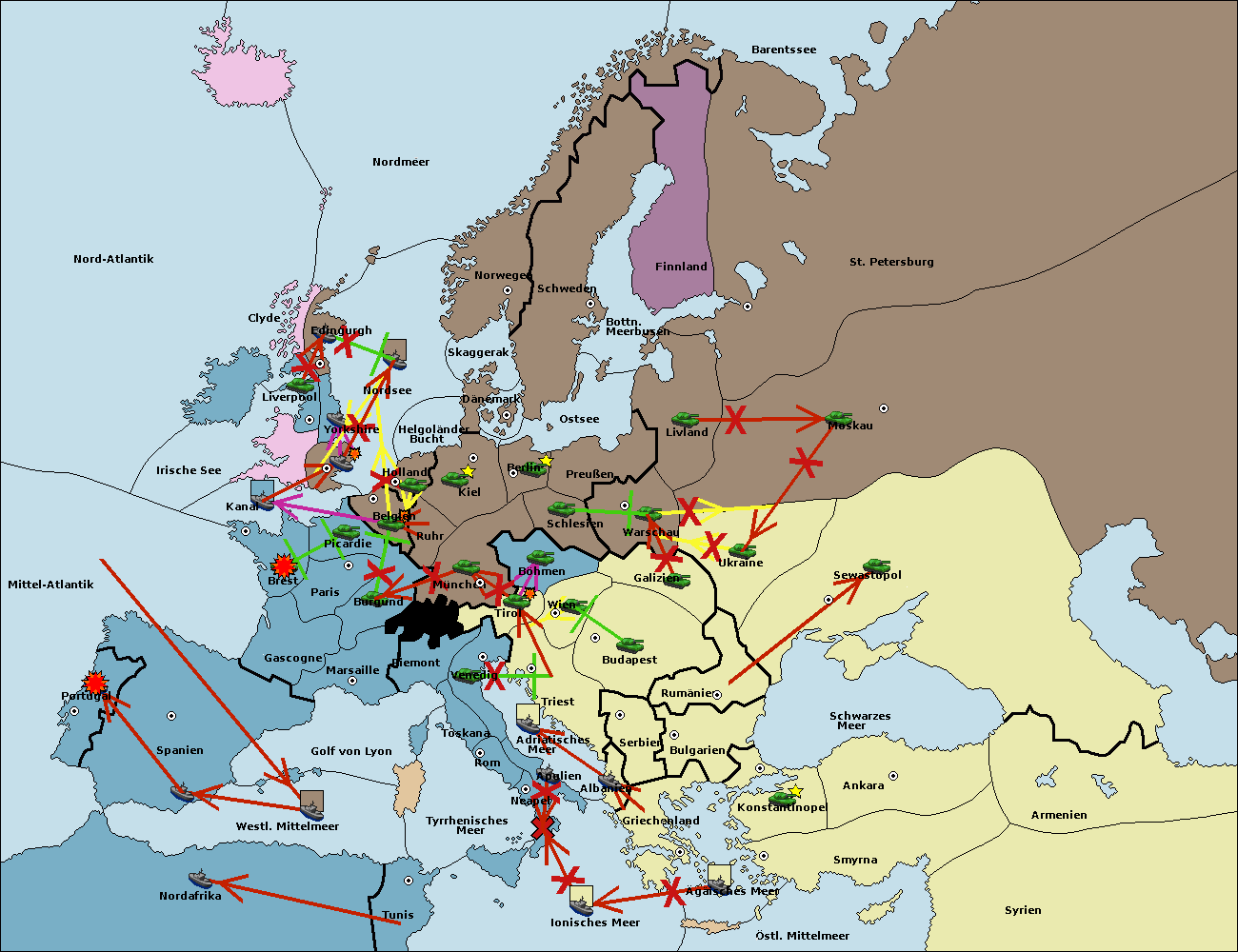 • Die Flotte in Spanien (Südküste) move nach westl. Mittelmeer.