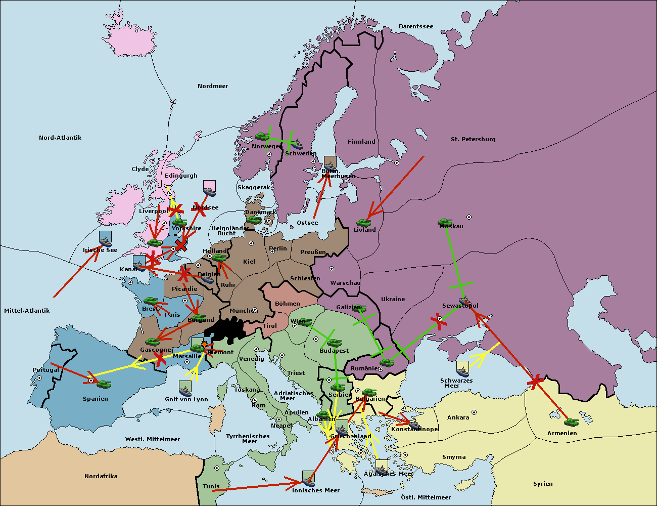 • Die Flotte in Spanien (Südküste) support move nach Marseille von Piemont.