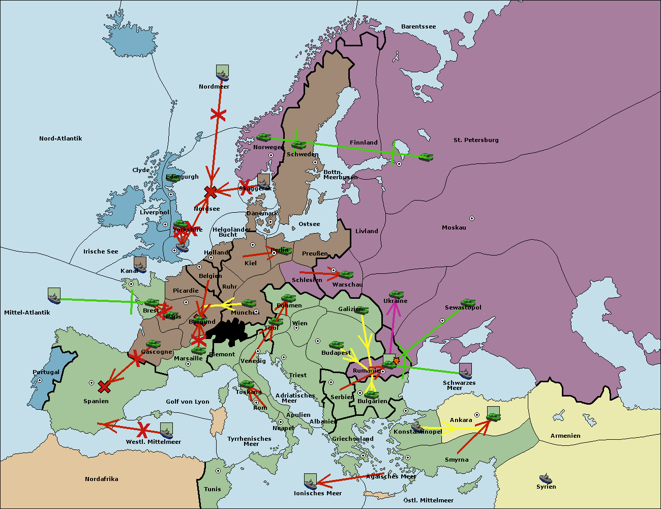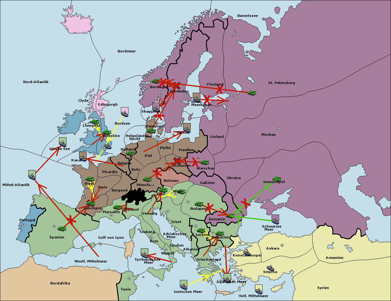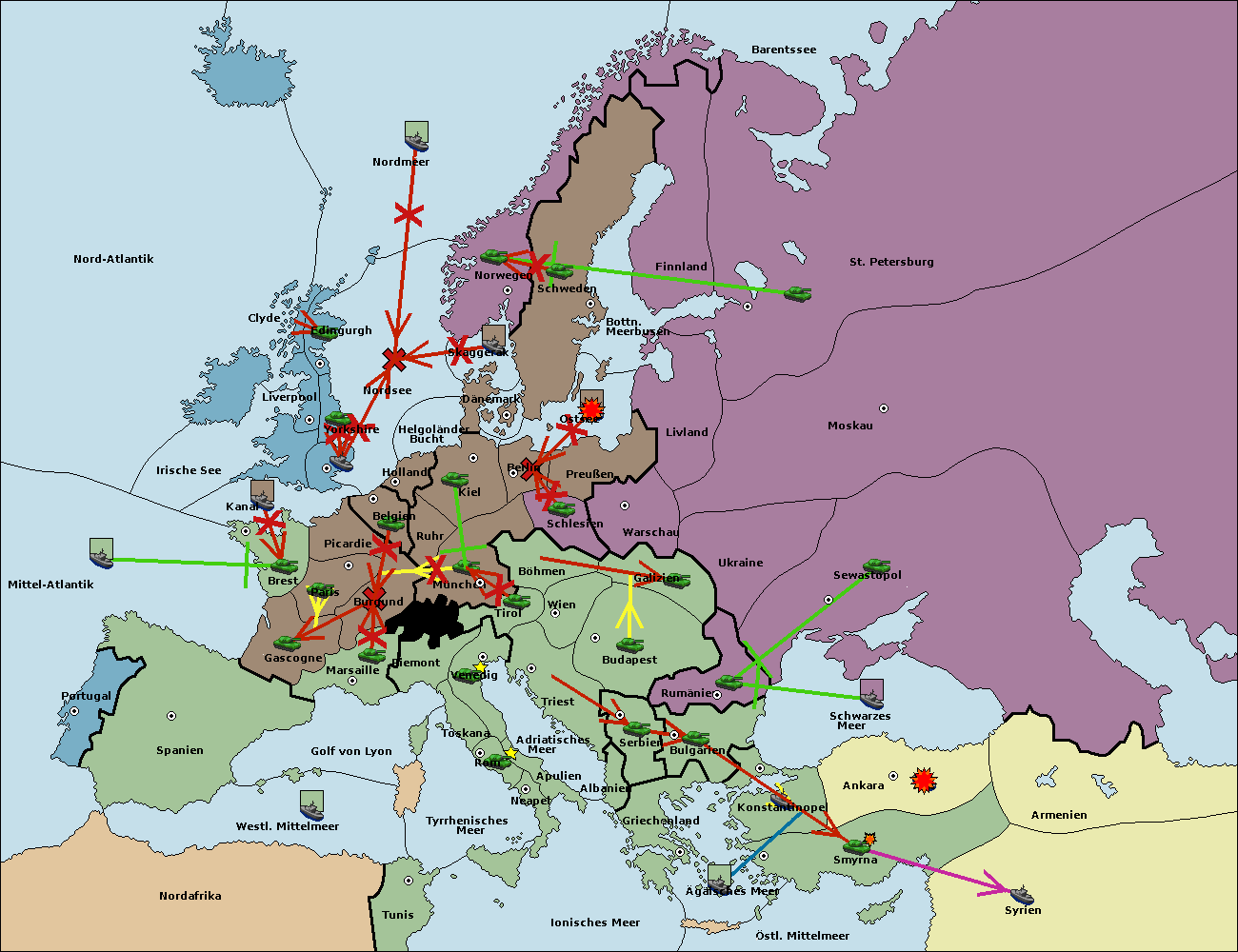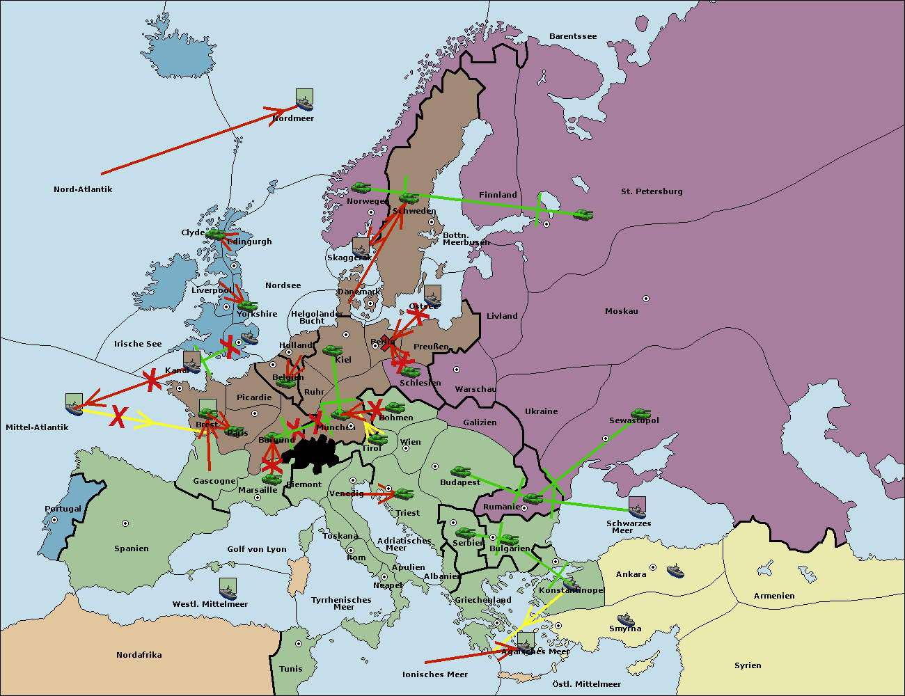 • Die Flotte in Griechenland support hold nach Bulgarien. (gescheitert)