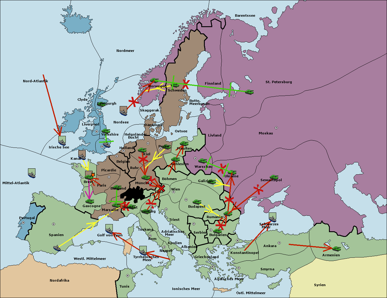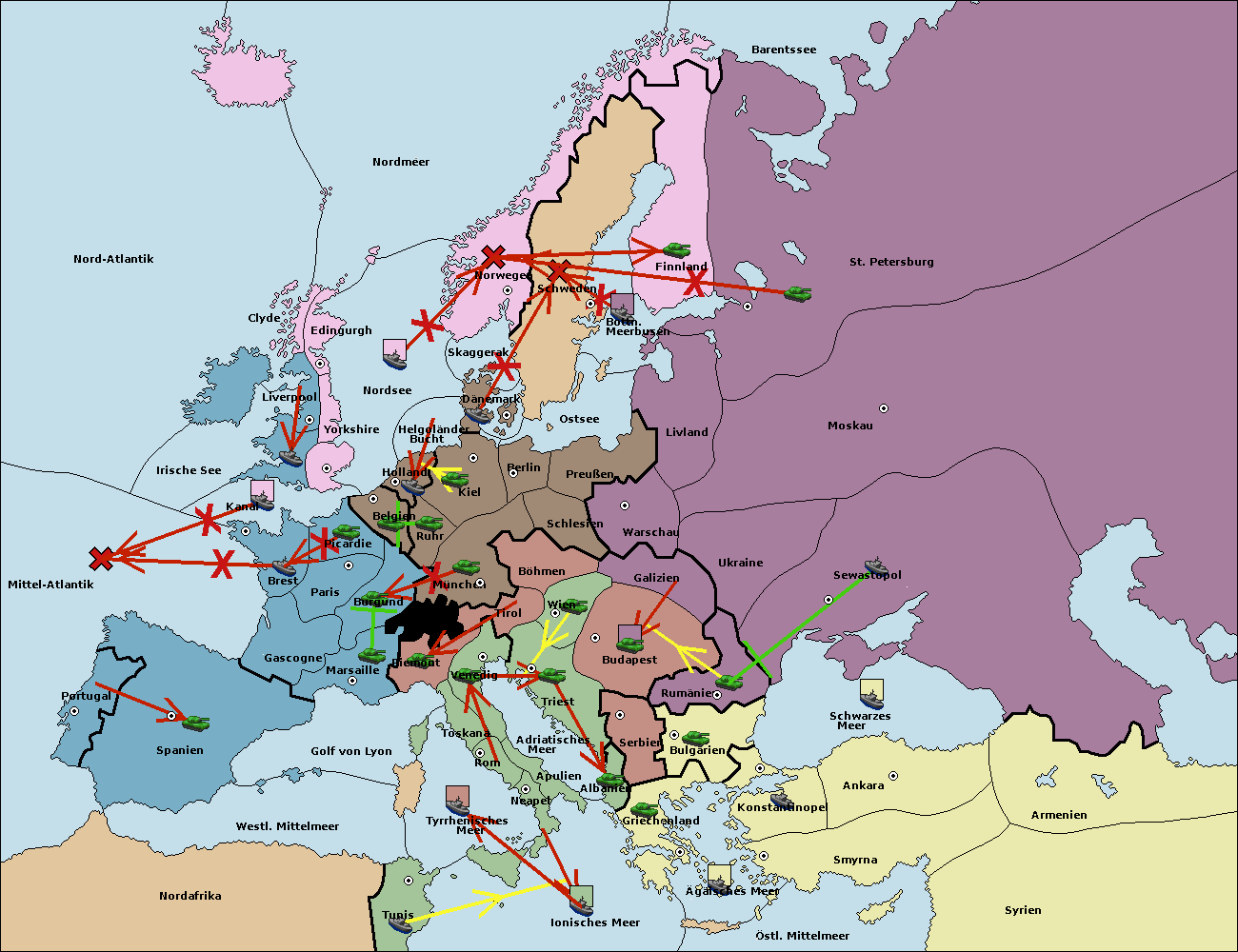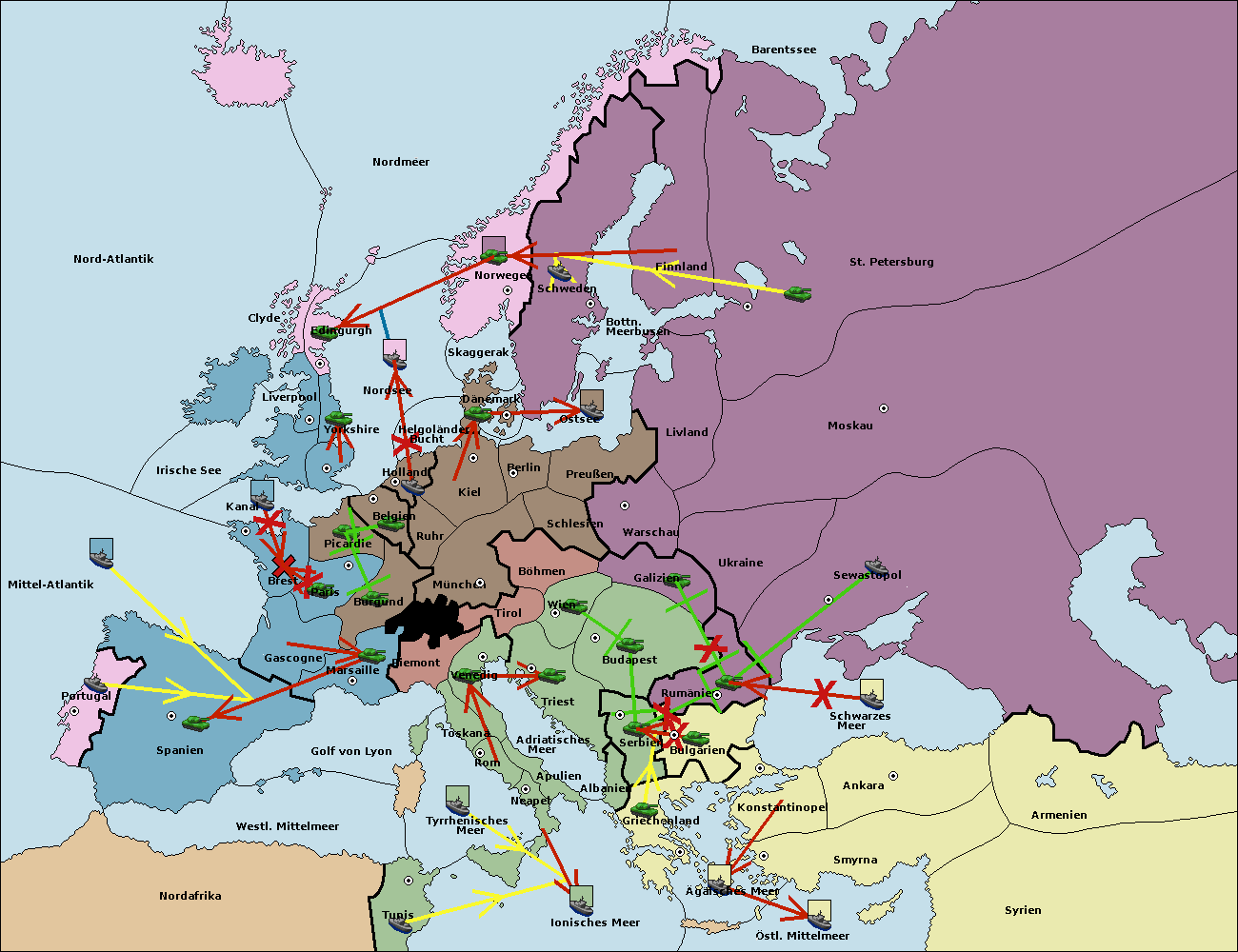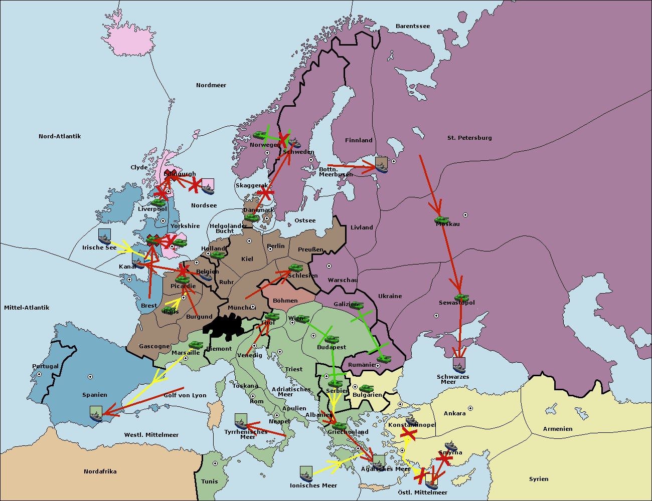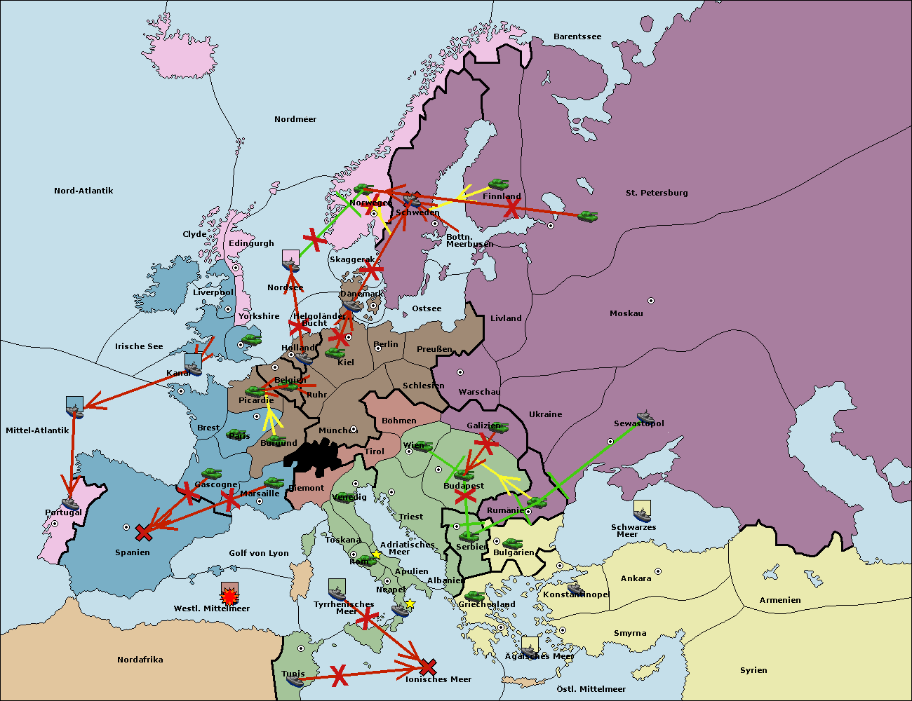 • Die Flotte in Griechenland support hold nach Bulgarien. (gescheitert)