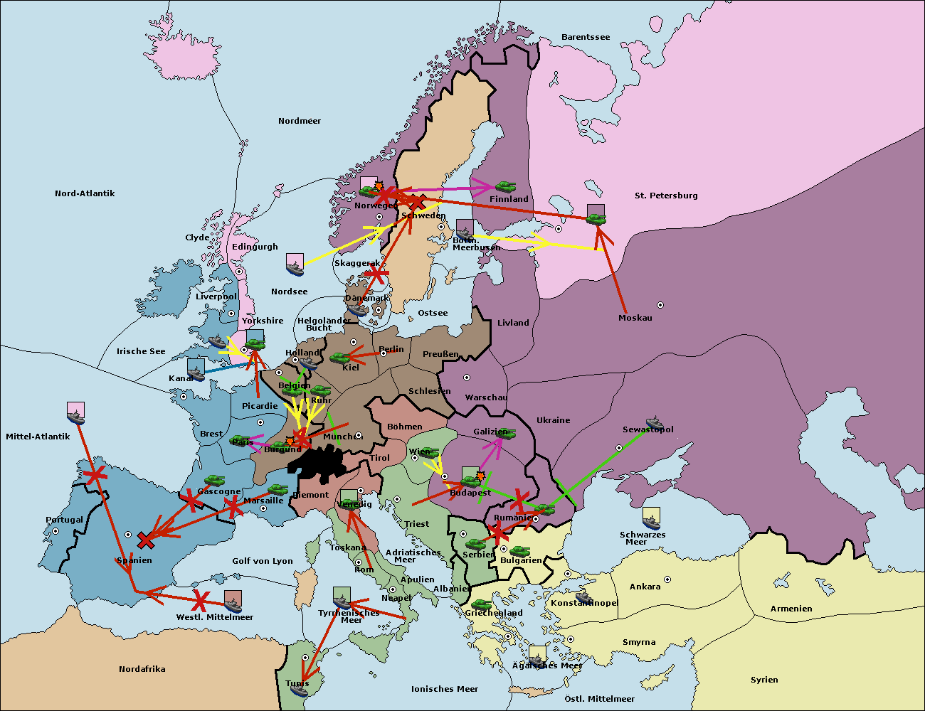 • Die Armee in Norwegen support hold nach St. Petersburg. (gescheitert)