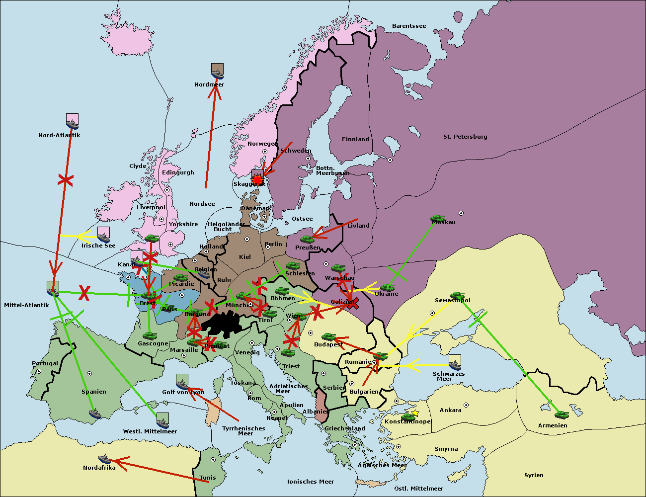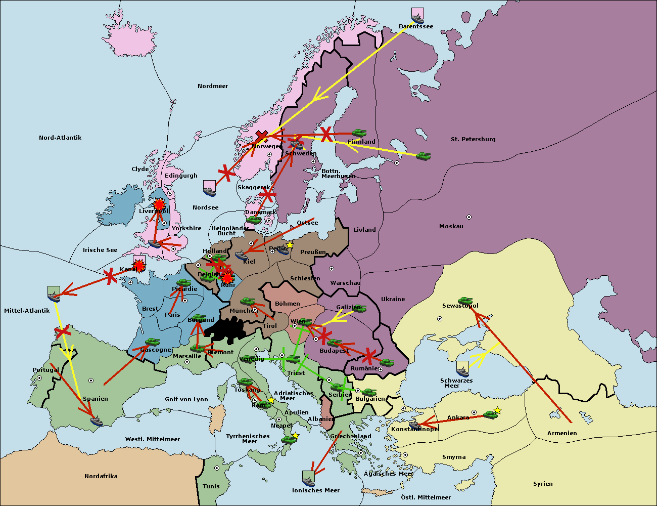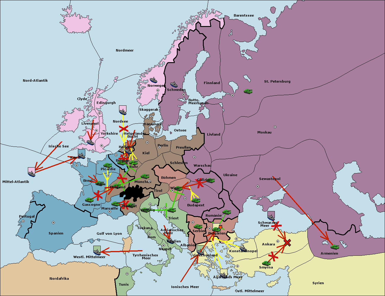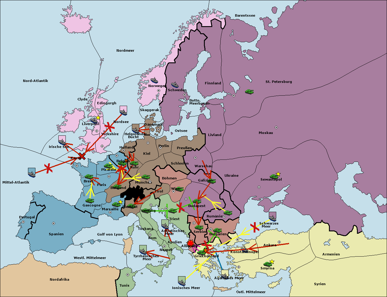 • Die Armee in Bulgarien wird zerstörtFlotte in Bulgarien gebaut.