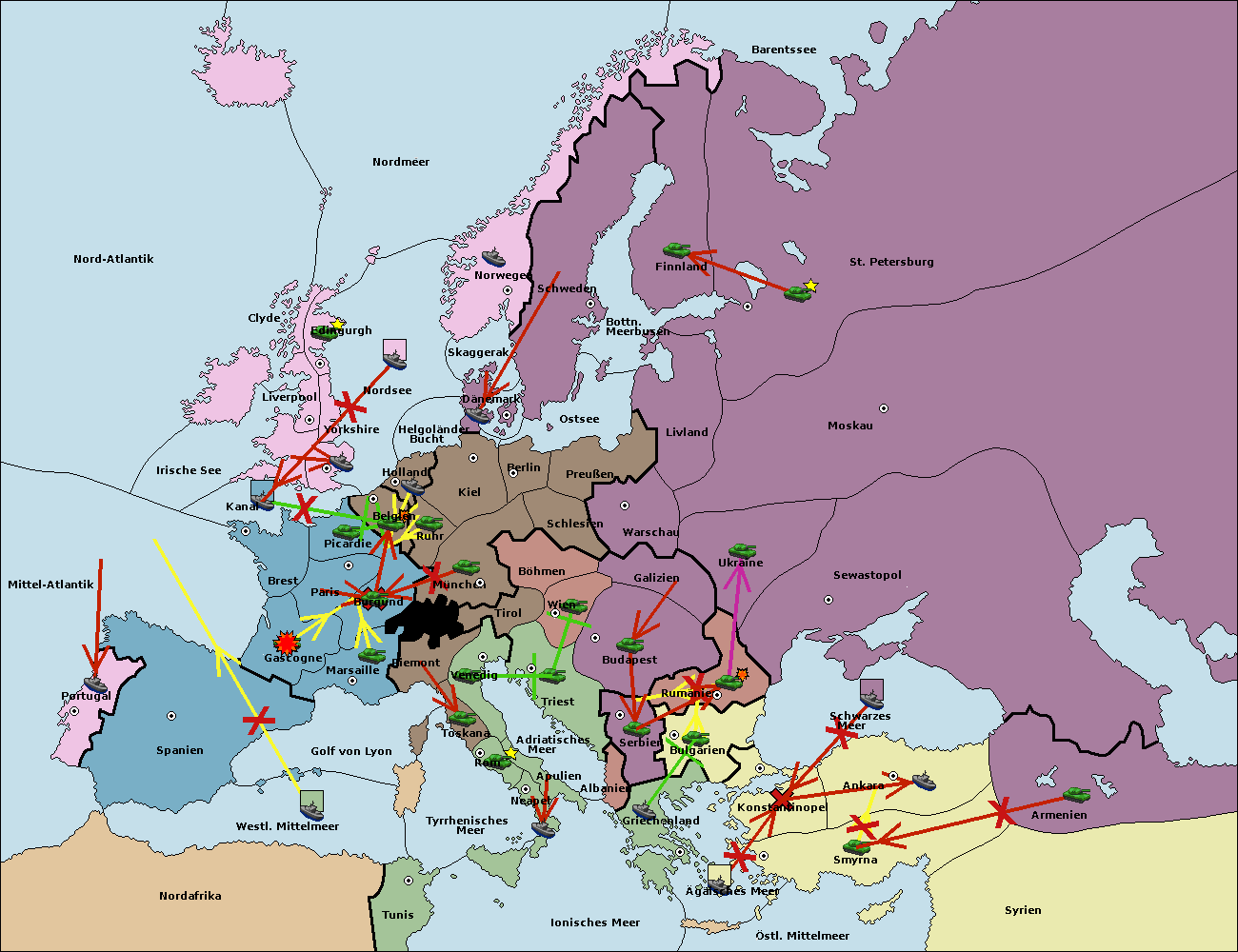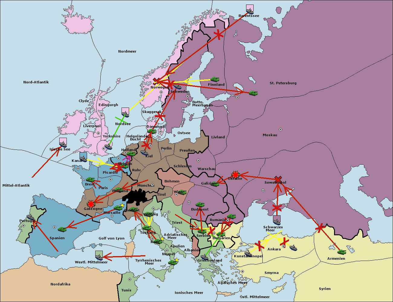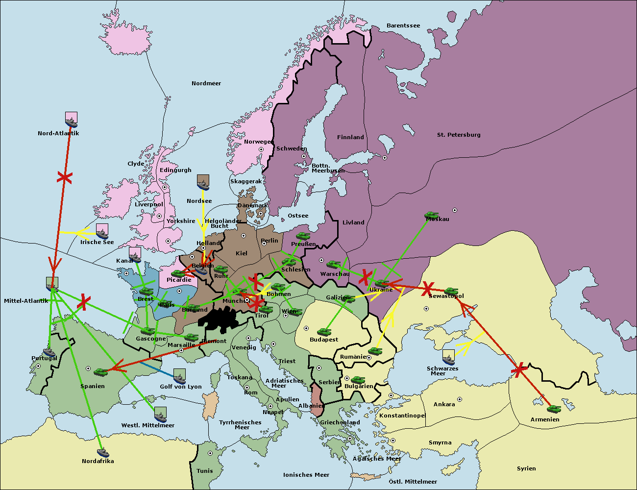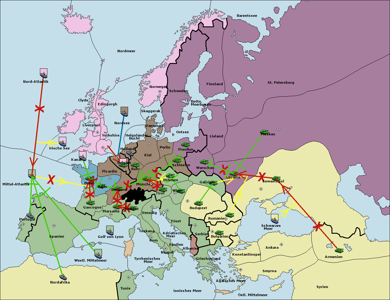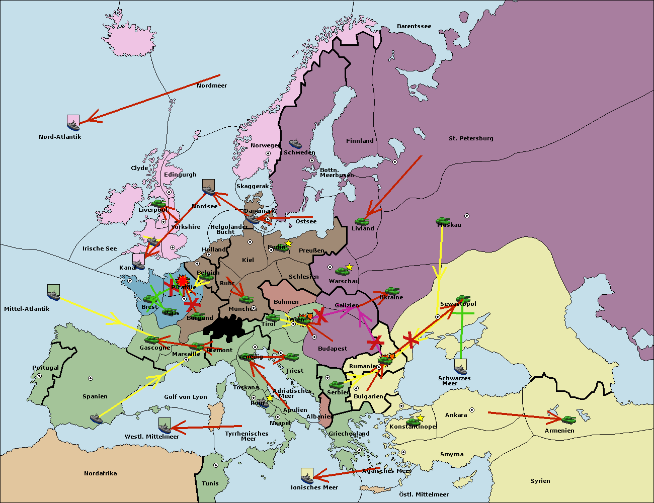 • Die Armee in Bulgarien wird zerstörtFlotte in Bulgarien gebaut.