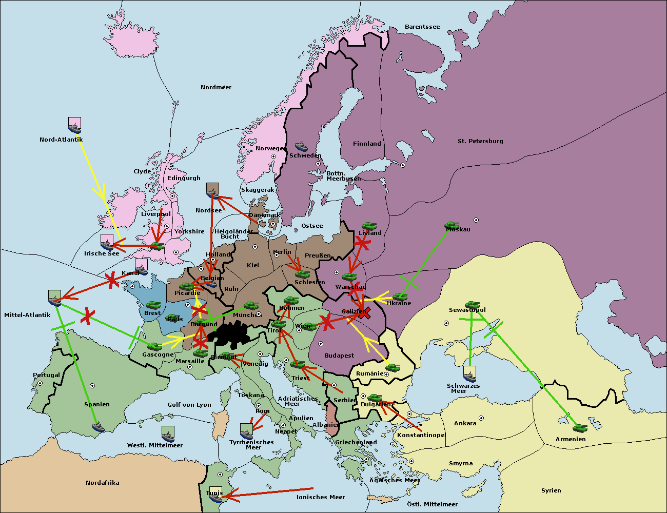 • Die Armee in Budapest support move nach Galizien von Wien.