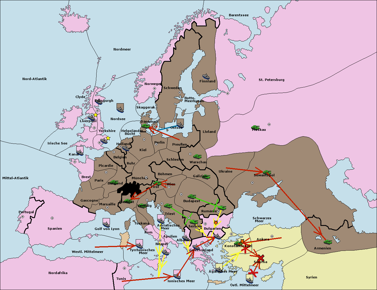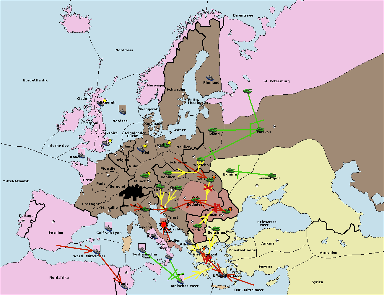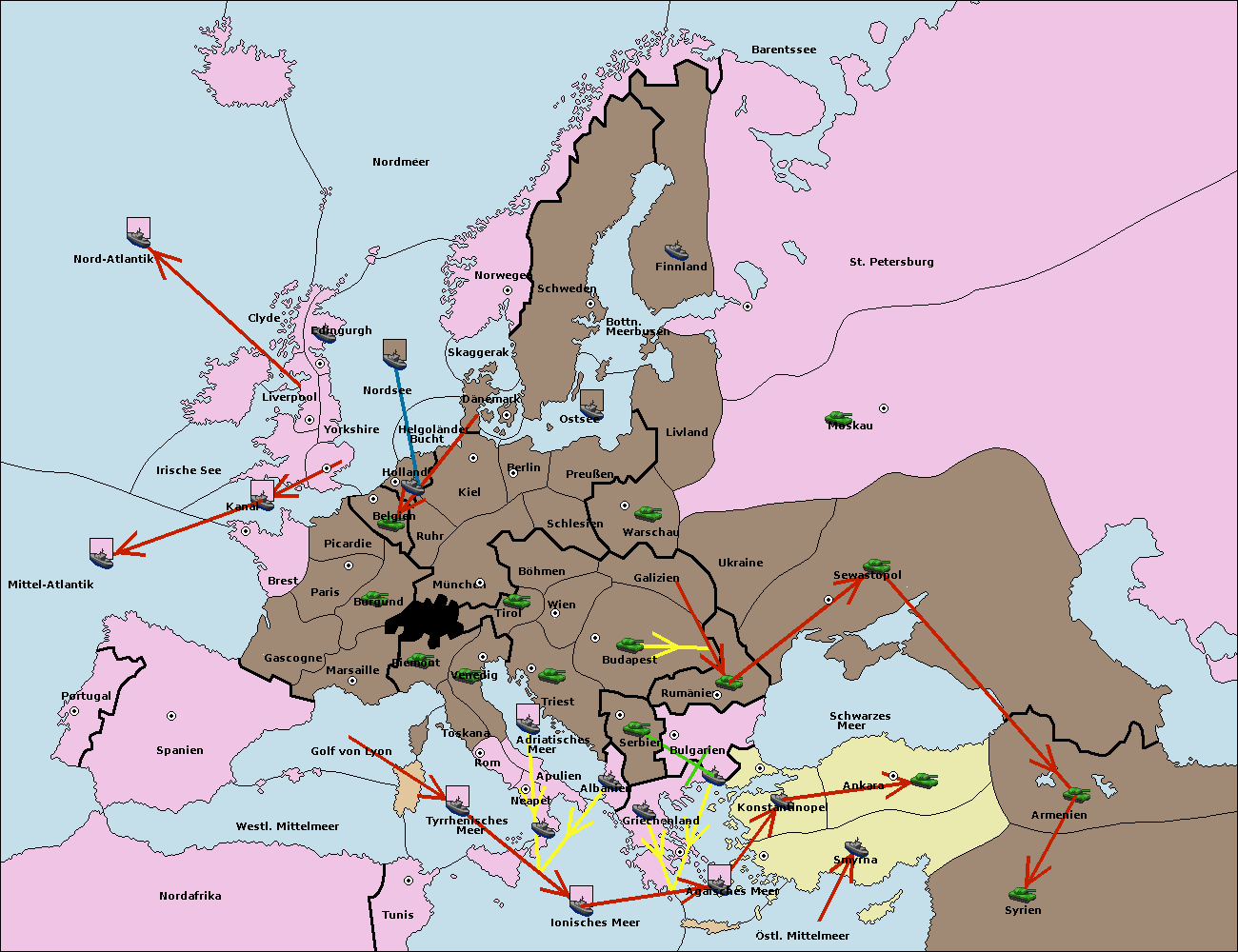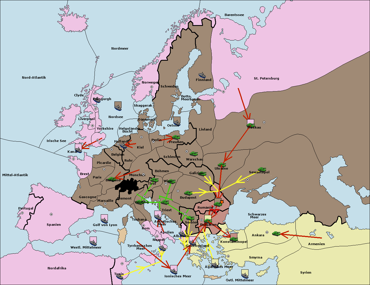 • Die Flotte in Bulgarien (Südküste) move nach Konstantinopel. (gescheitert)