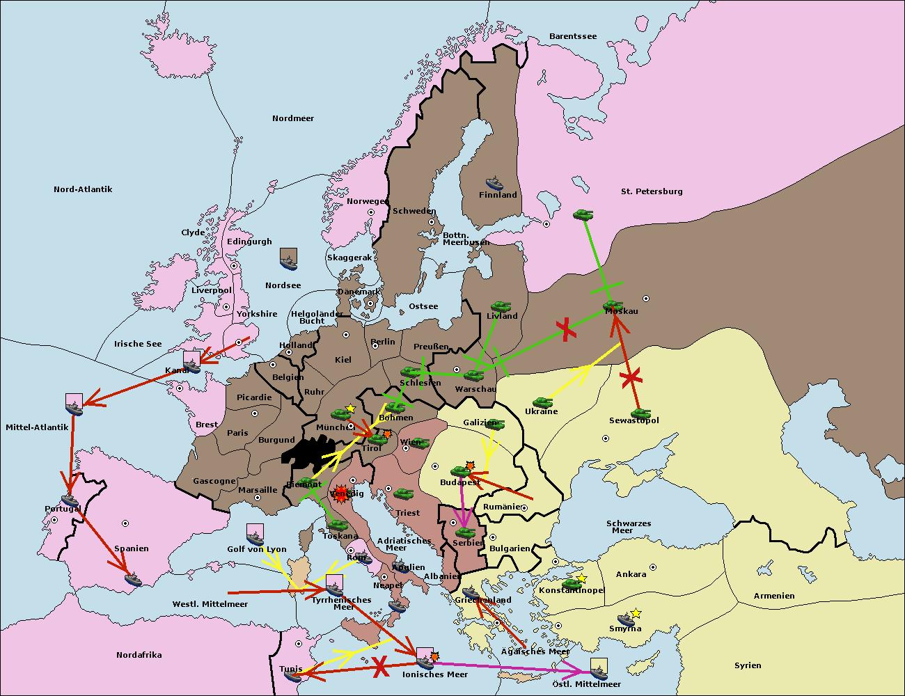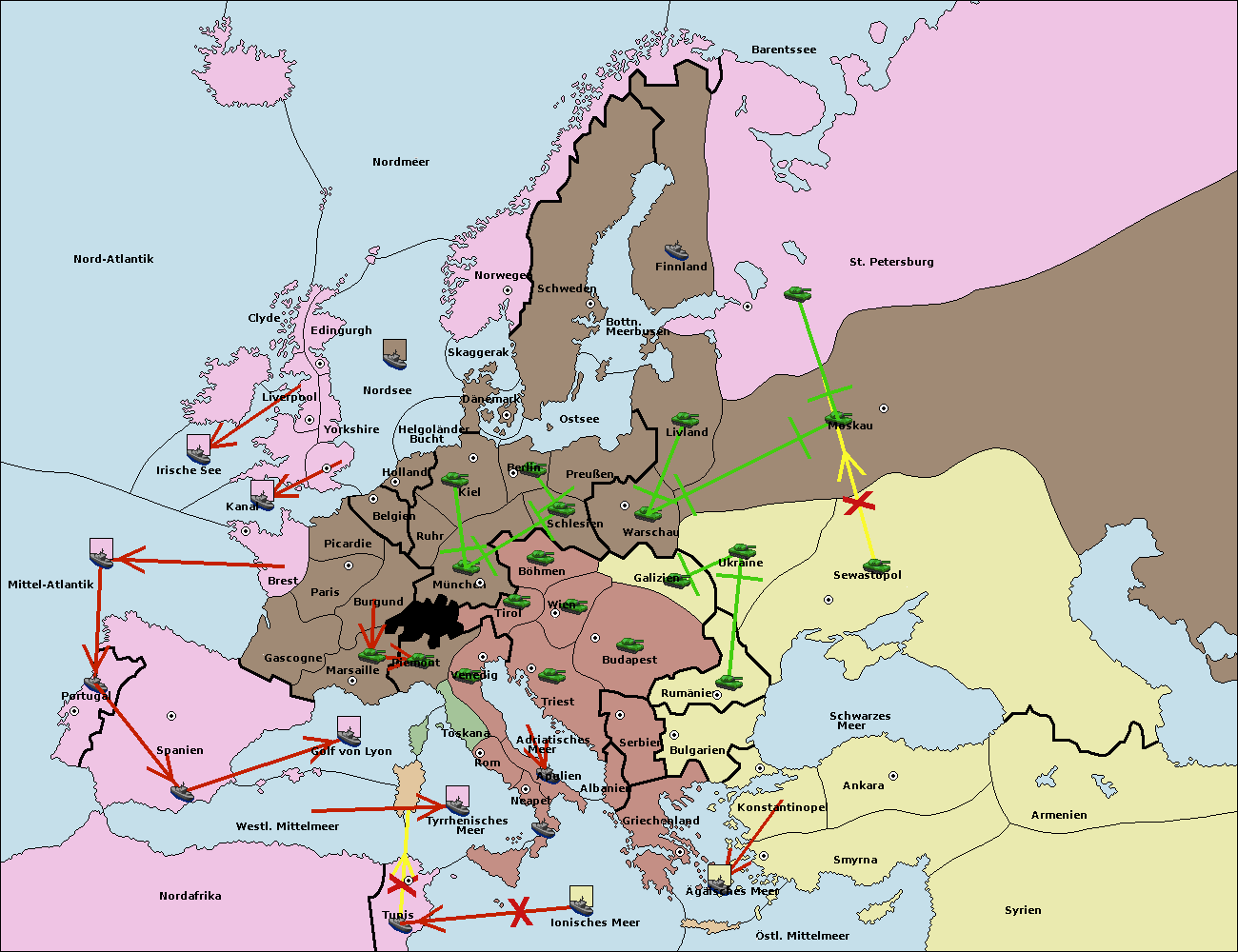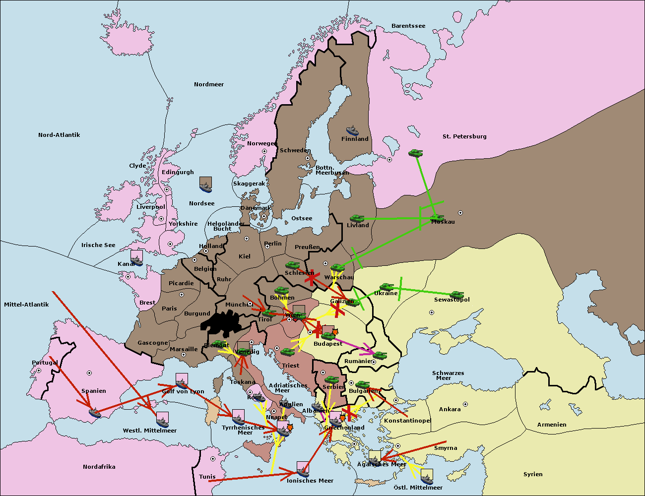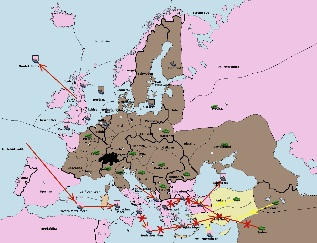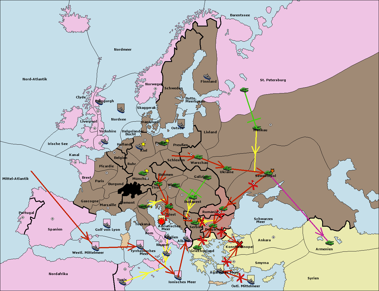 • Die Flotte in Bulgarien (Südküste) move nach Konstantinopel. (gescheitert)