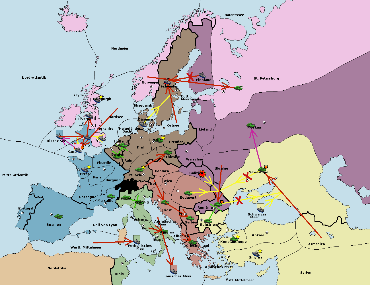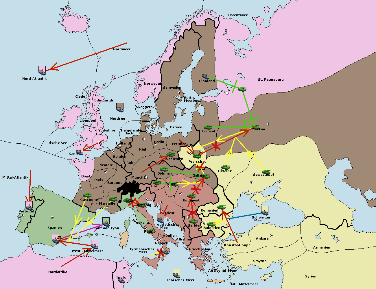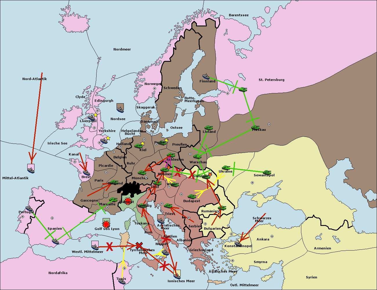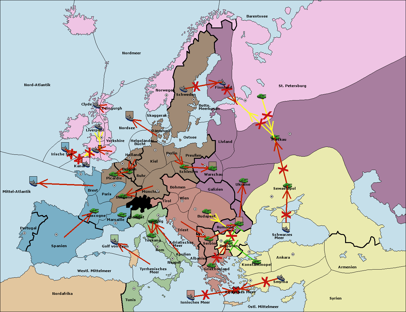 • Die Flotte in Bulgarien (Südküste) move nach Konstantinopel. (gescheitert)