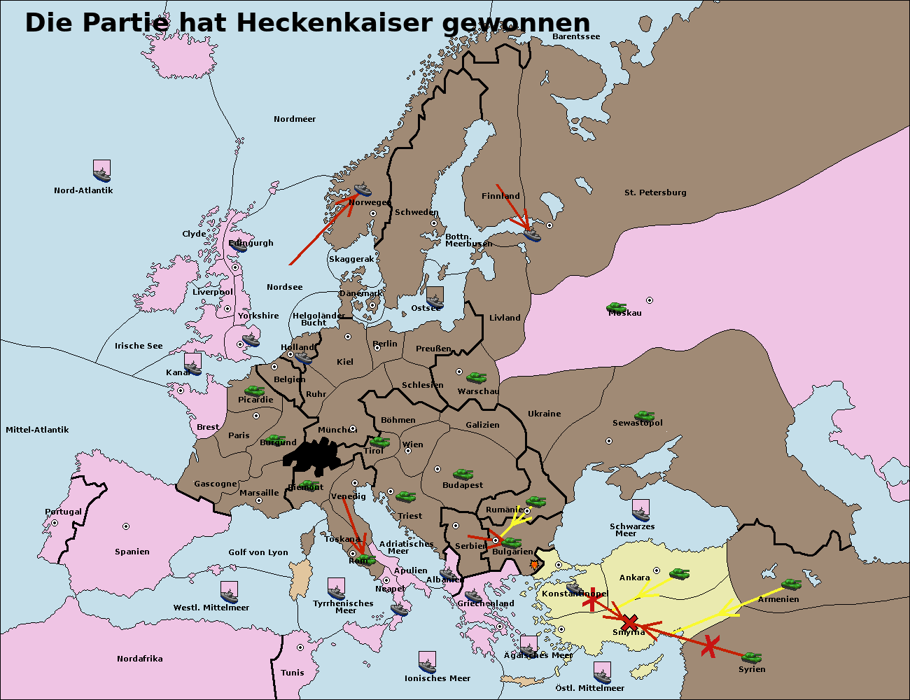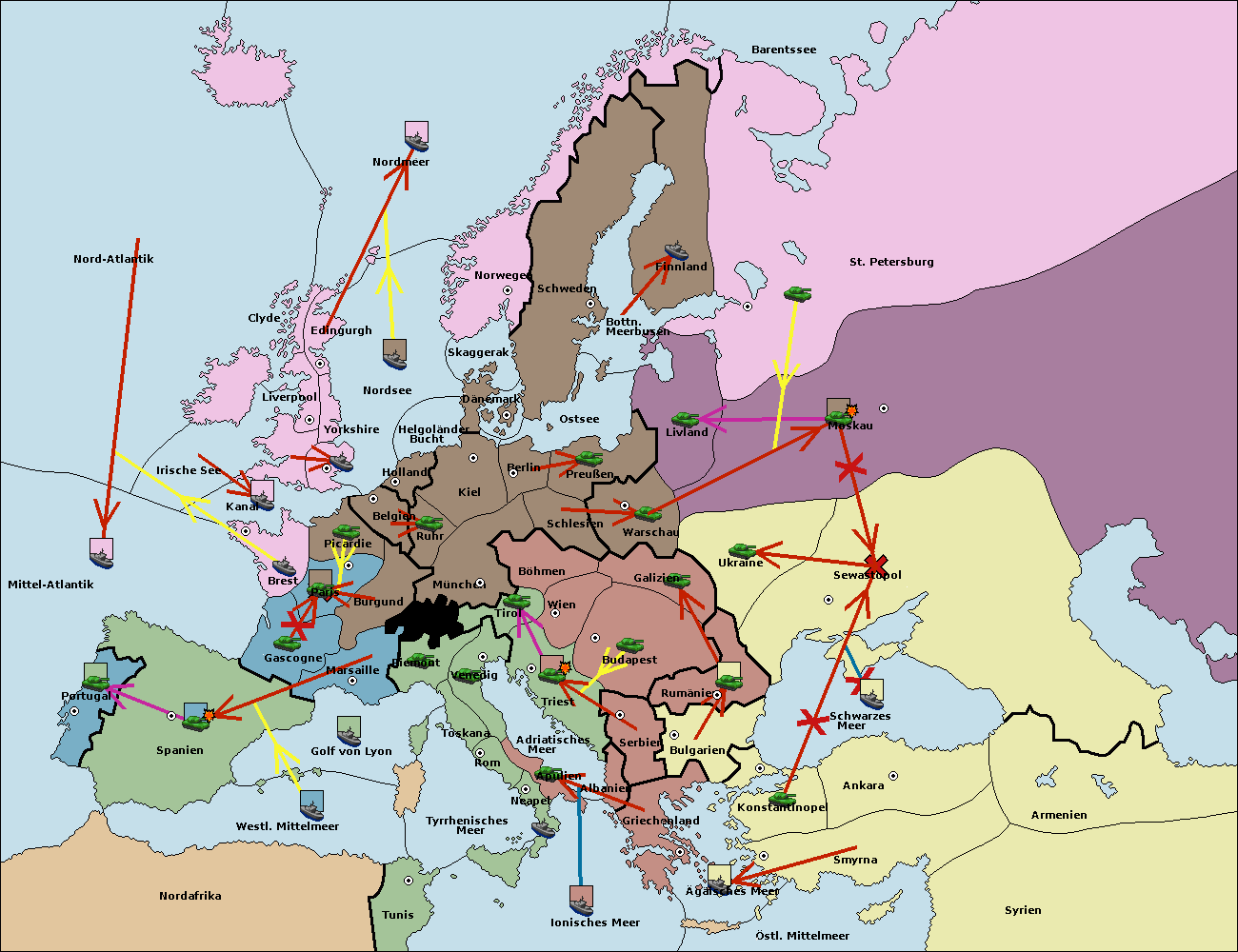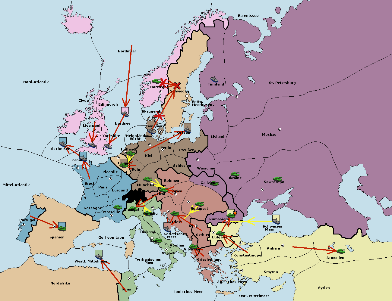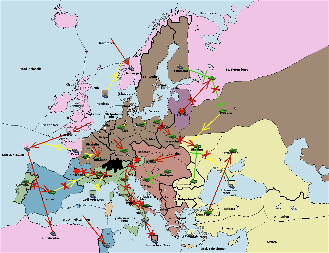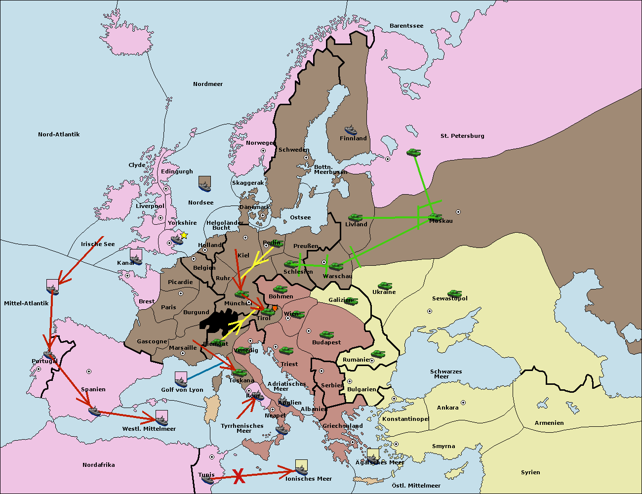 • Die Flotte in Bulgarien (Südküste) move nach Konstantinopel. (gescheitert)