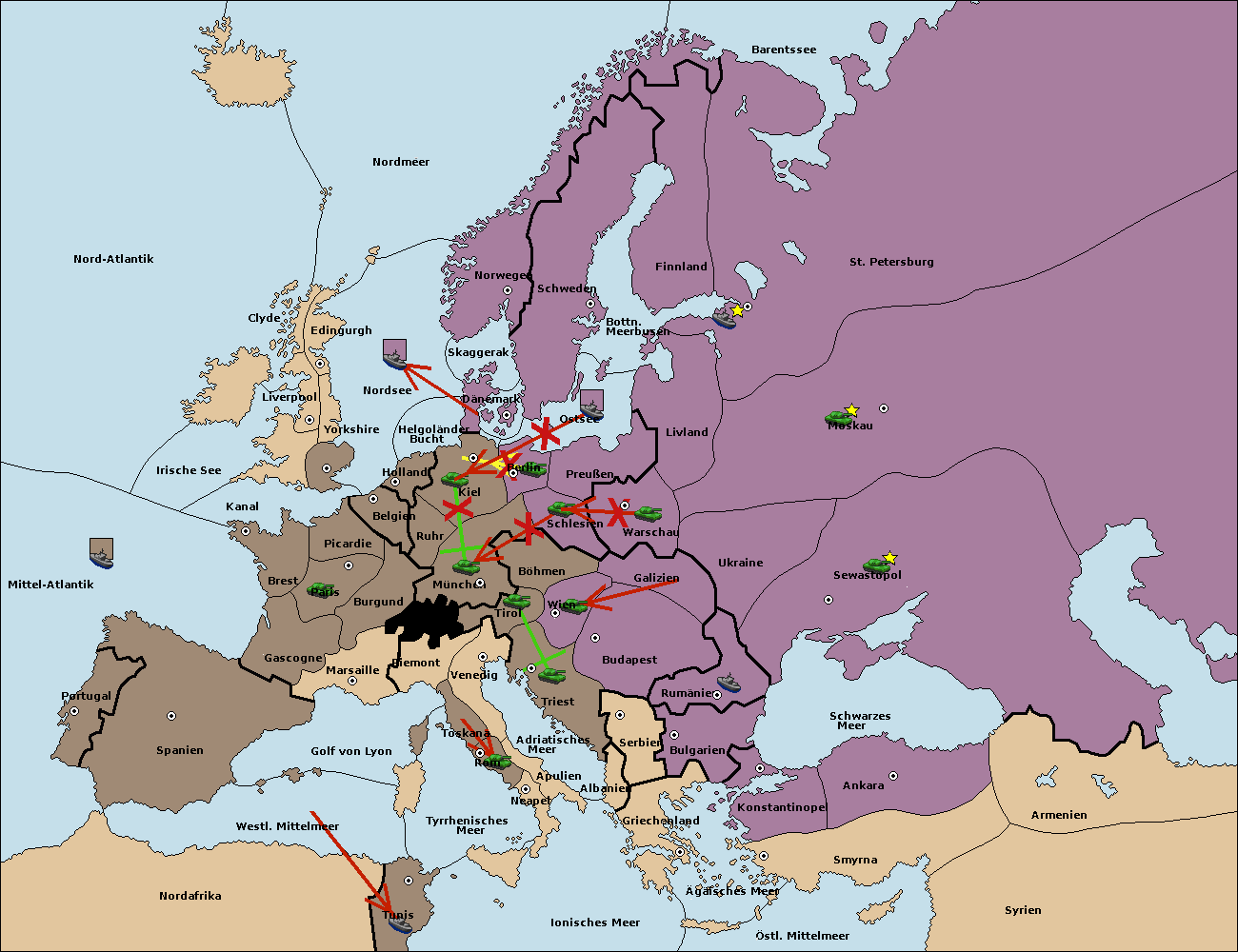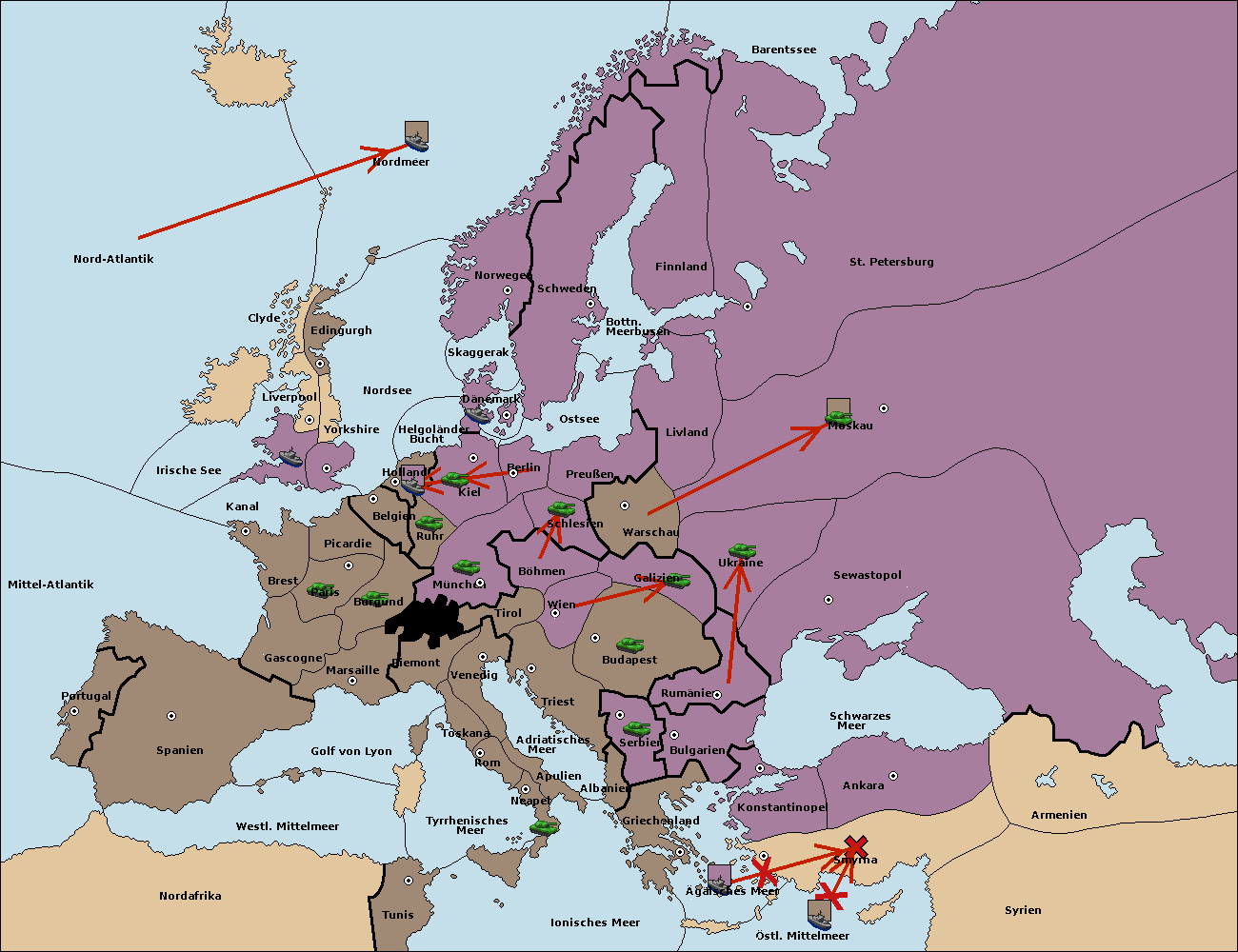 • Die Armee in Galizien move nach Wien. (gescheitert)