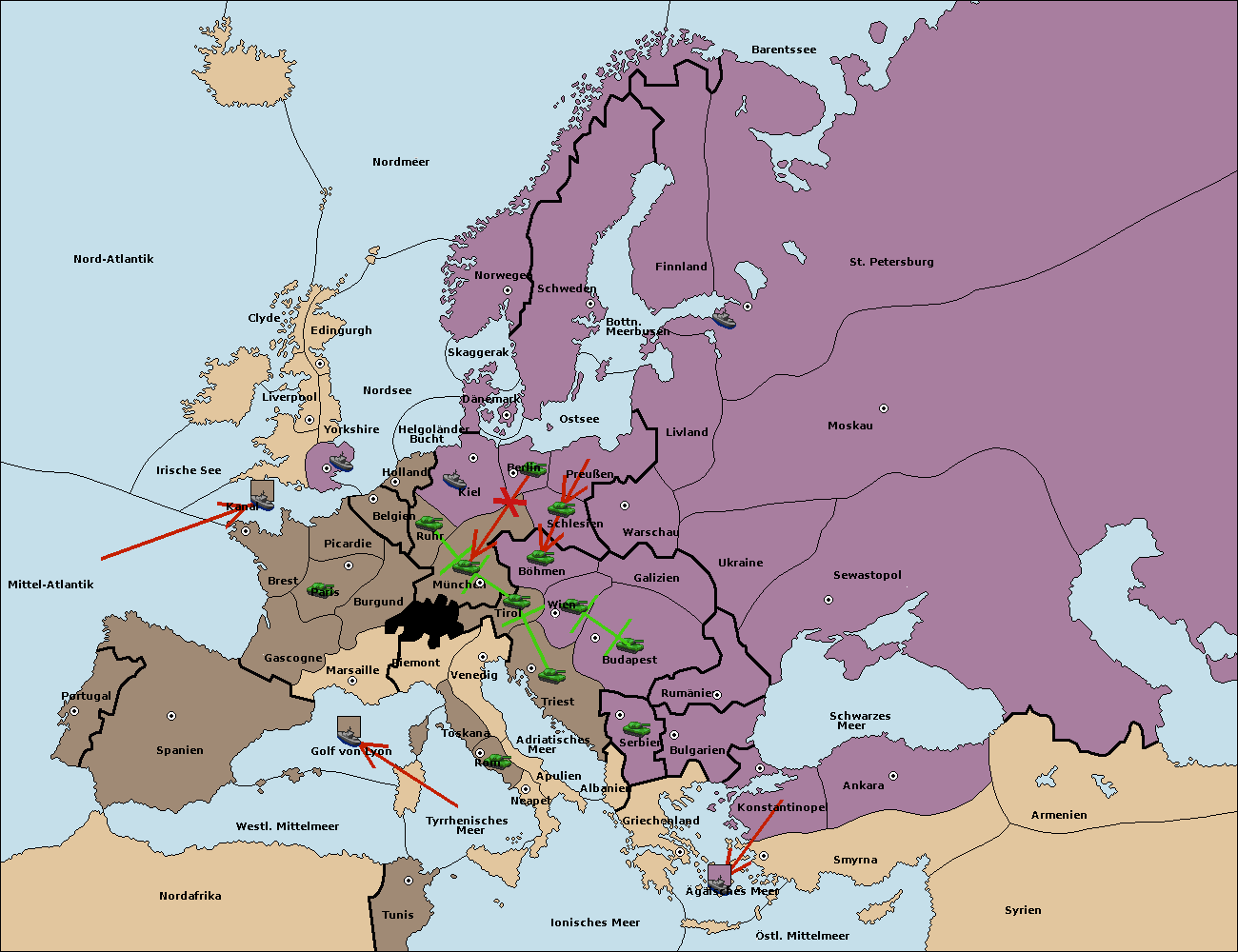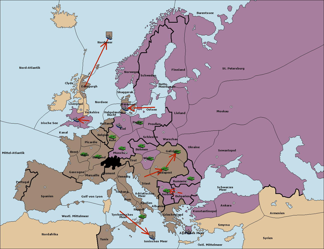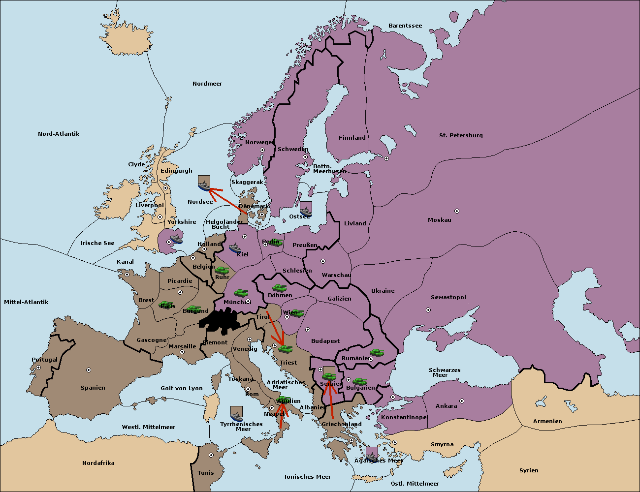 • Die Armee in Triest support move nach Budapest von Serbien.