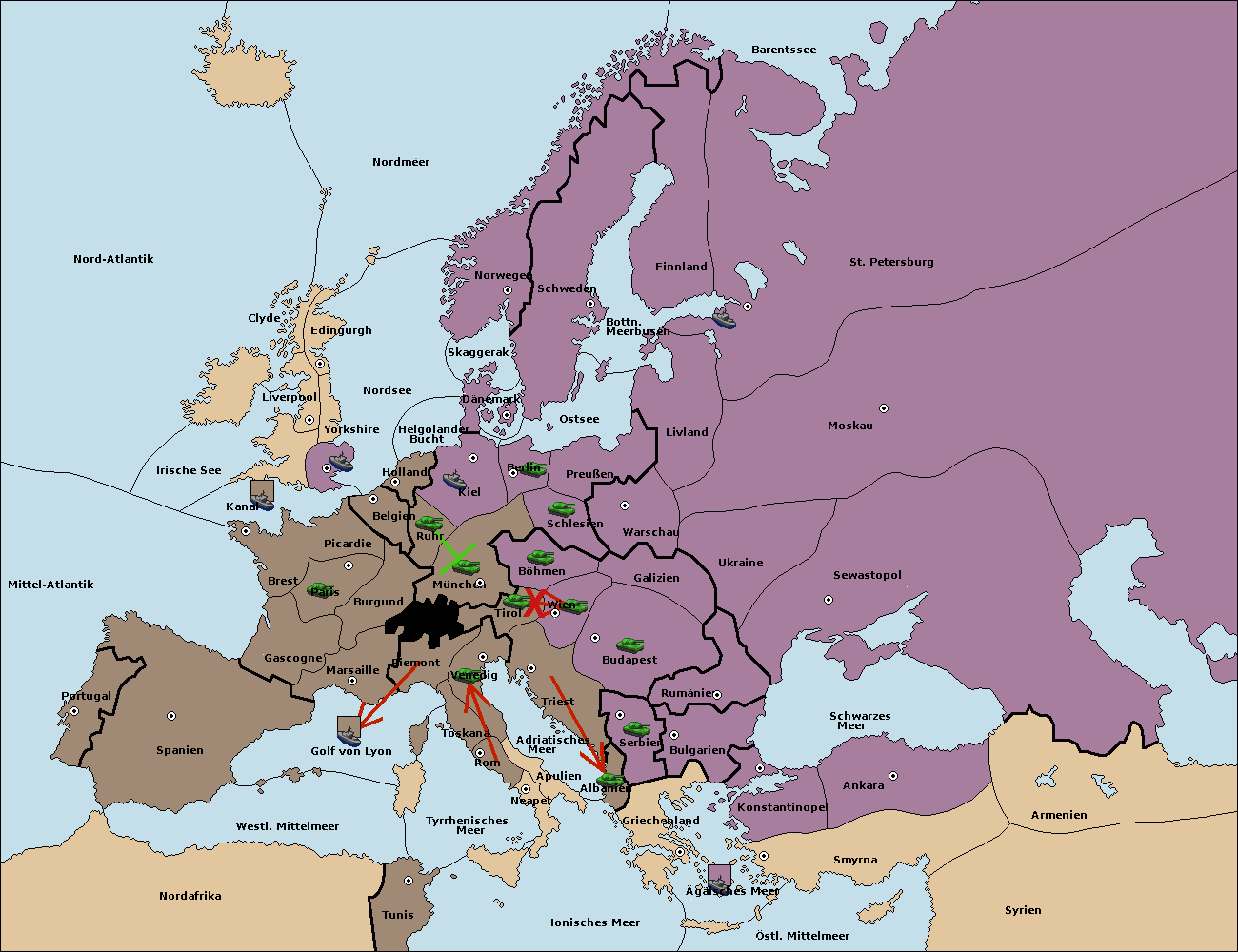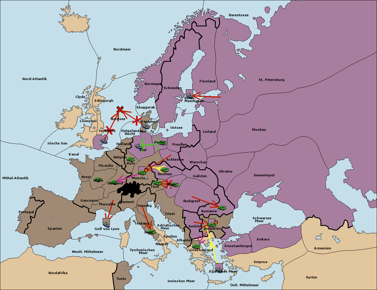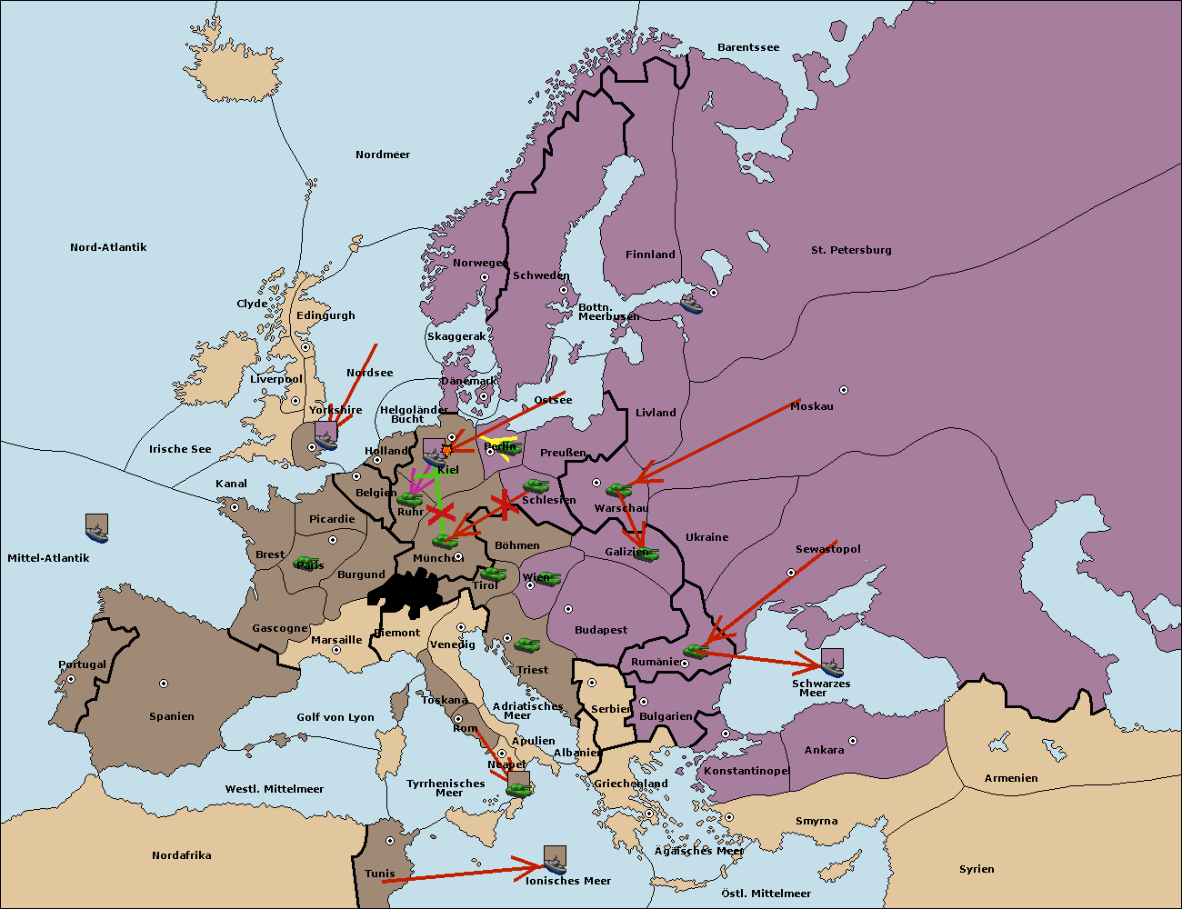 • Die Armee in Triest support move nach Budapest von Serbien.