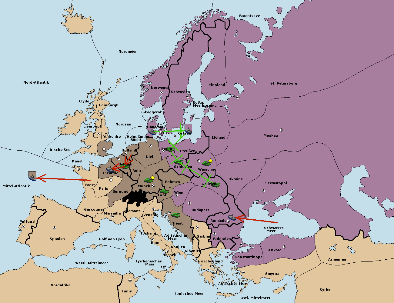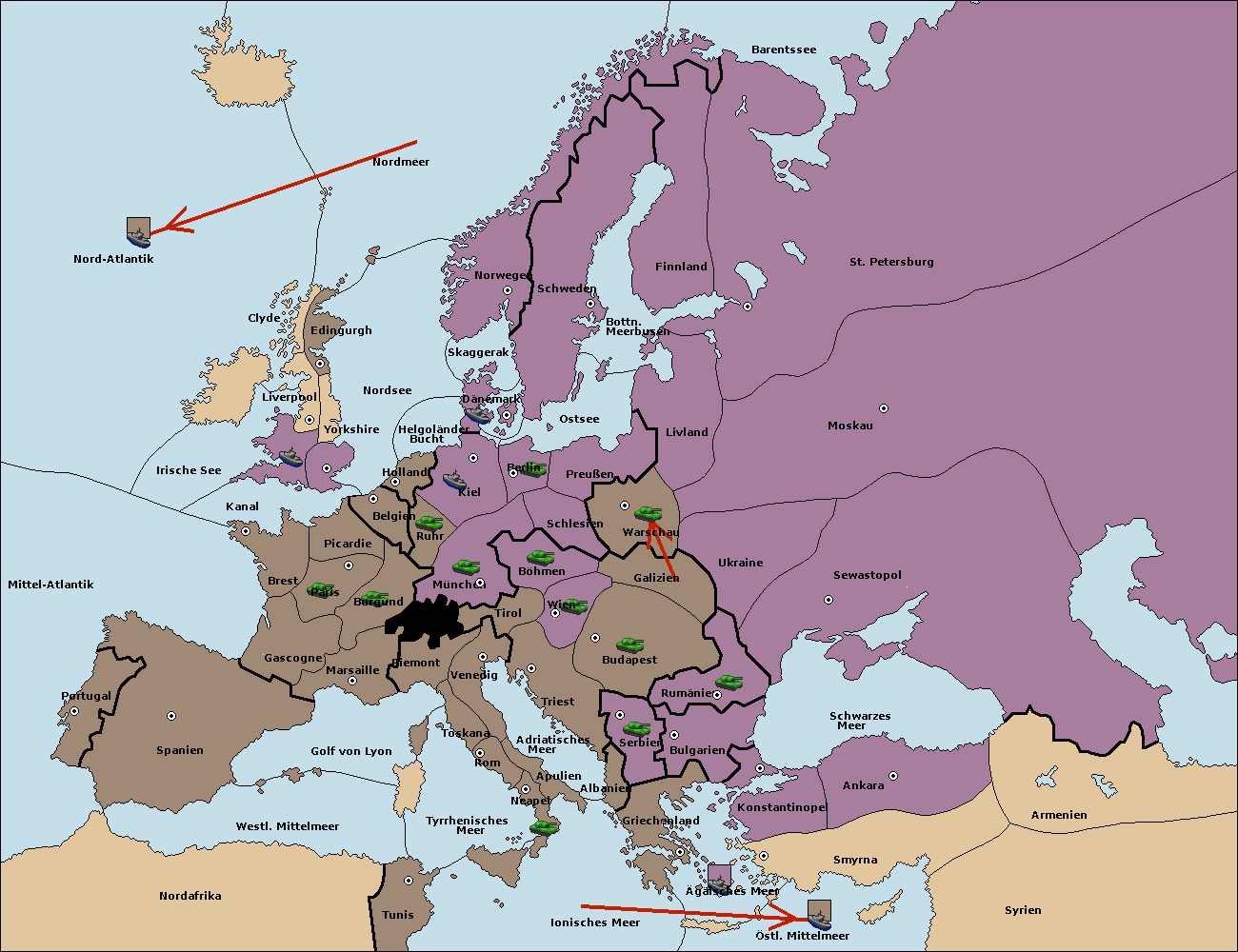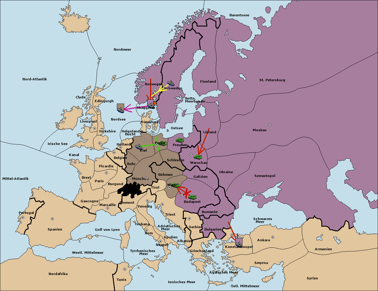 • Die Flotte in Bulgarien (Nordküste) move nach Konstantinopel.