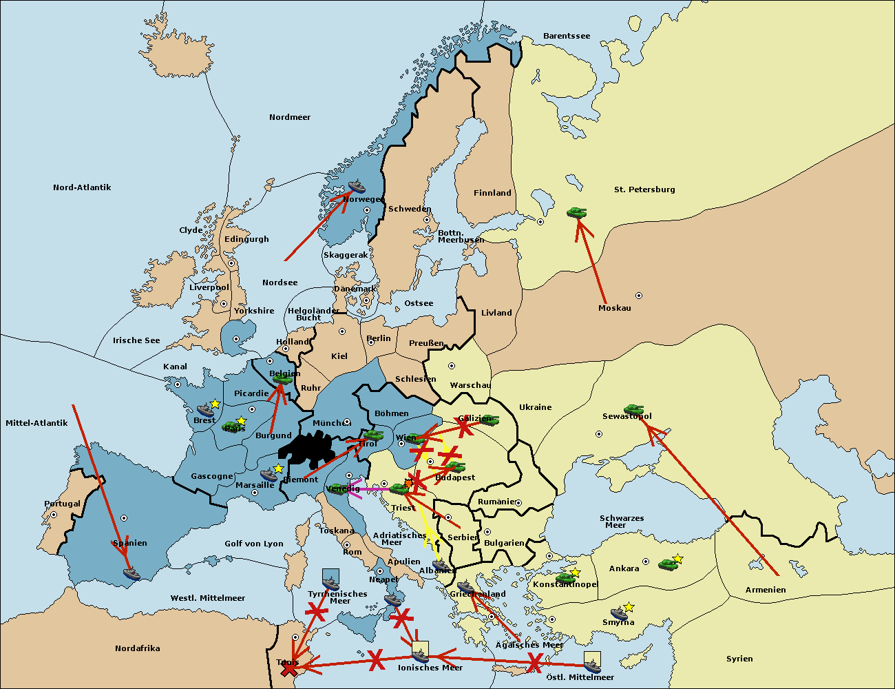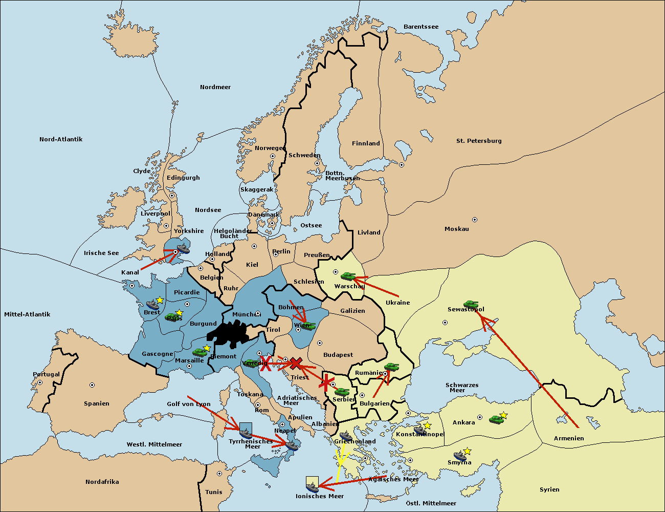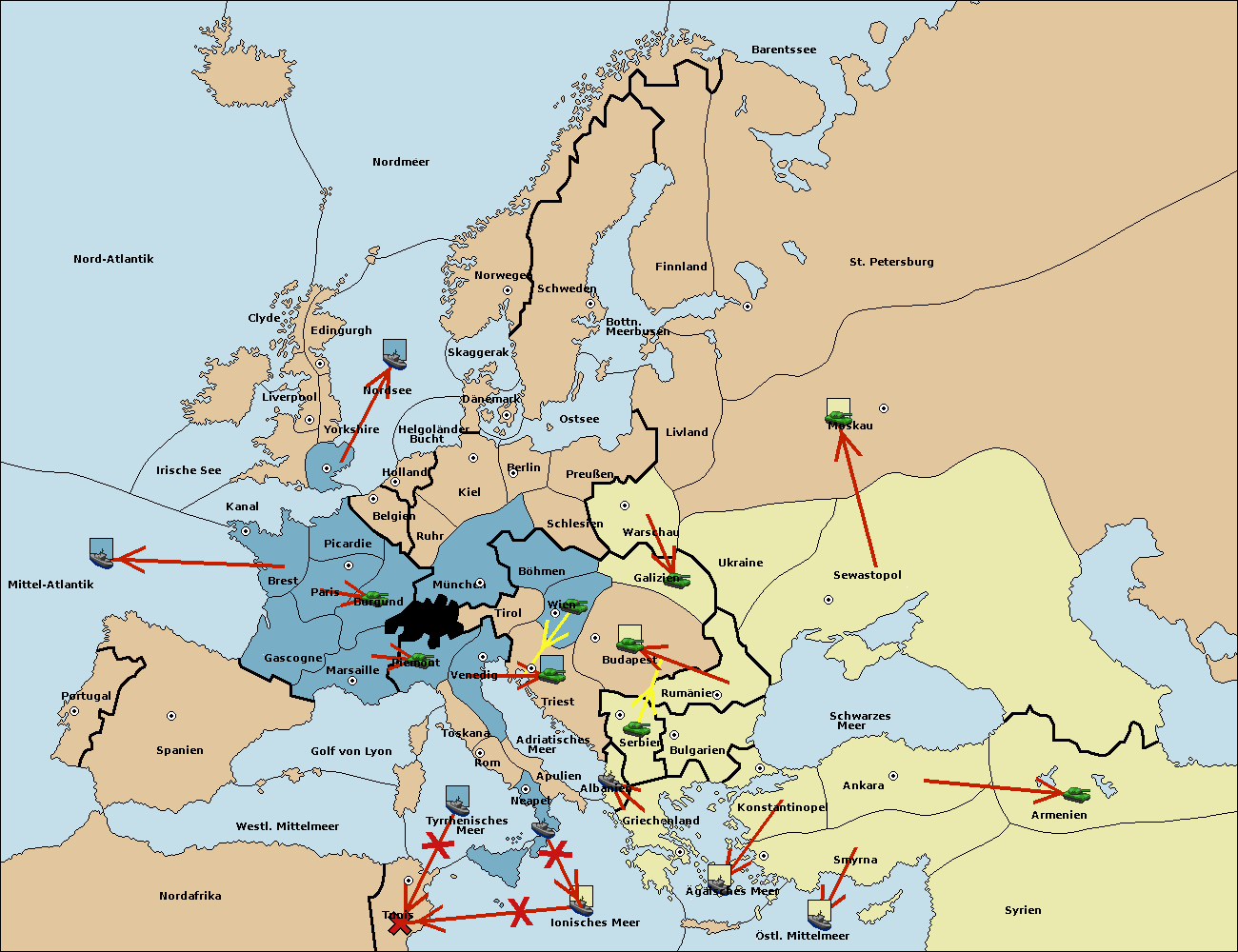 • Die Armee in Triest support move nach Wien von Budapest. (gescheitert)