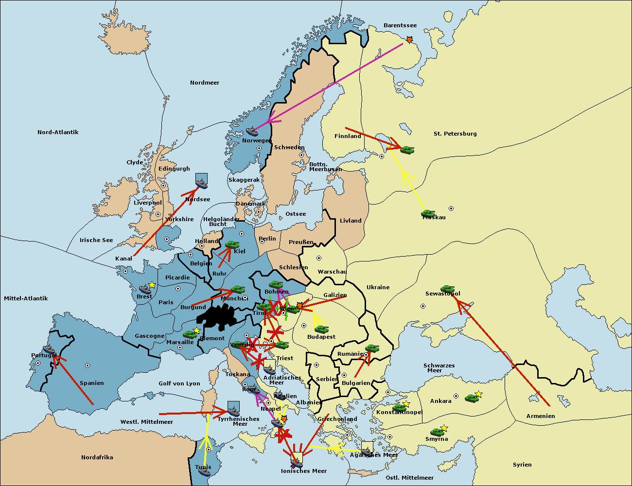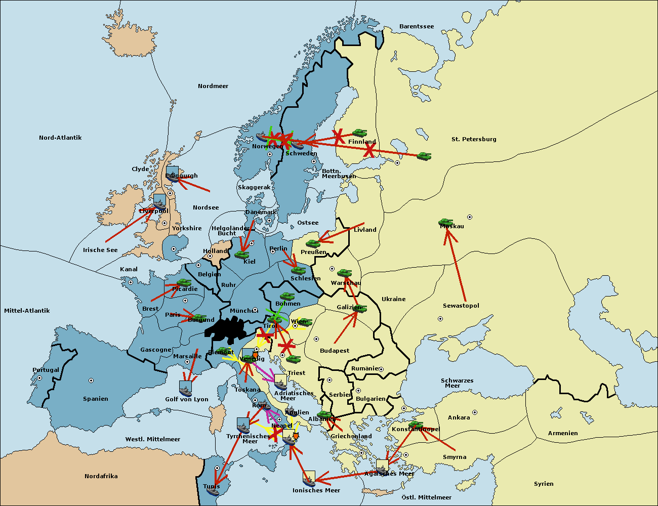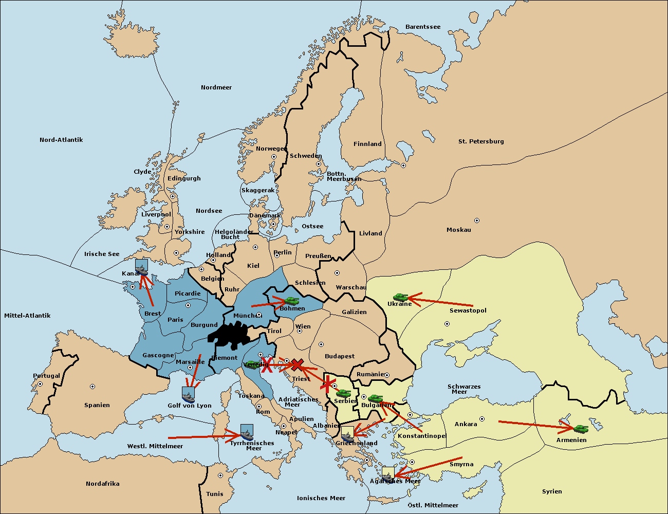 • Die Armee in Triest support move nach Wien von Budapest. (gescheitert)