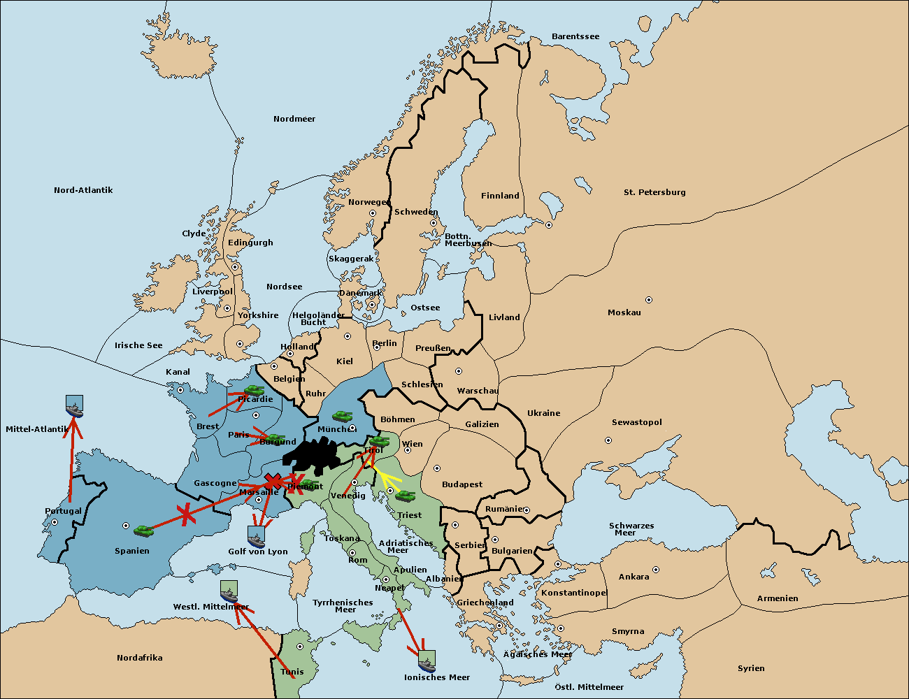 • Die Armee in Wien support move nach Böhmen von Tirol.