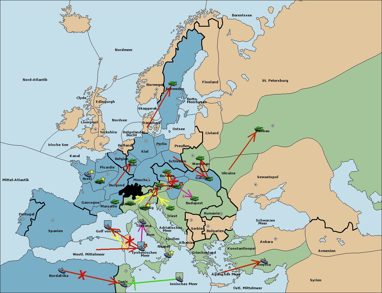 • Die Flotte in Nord Afrika move nach Tunis. (gescheitert)