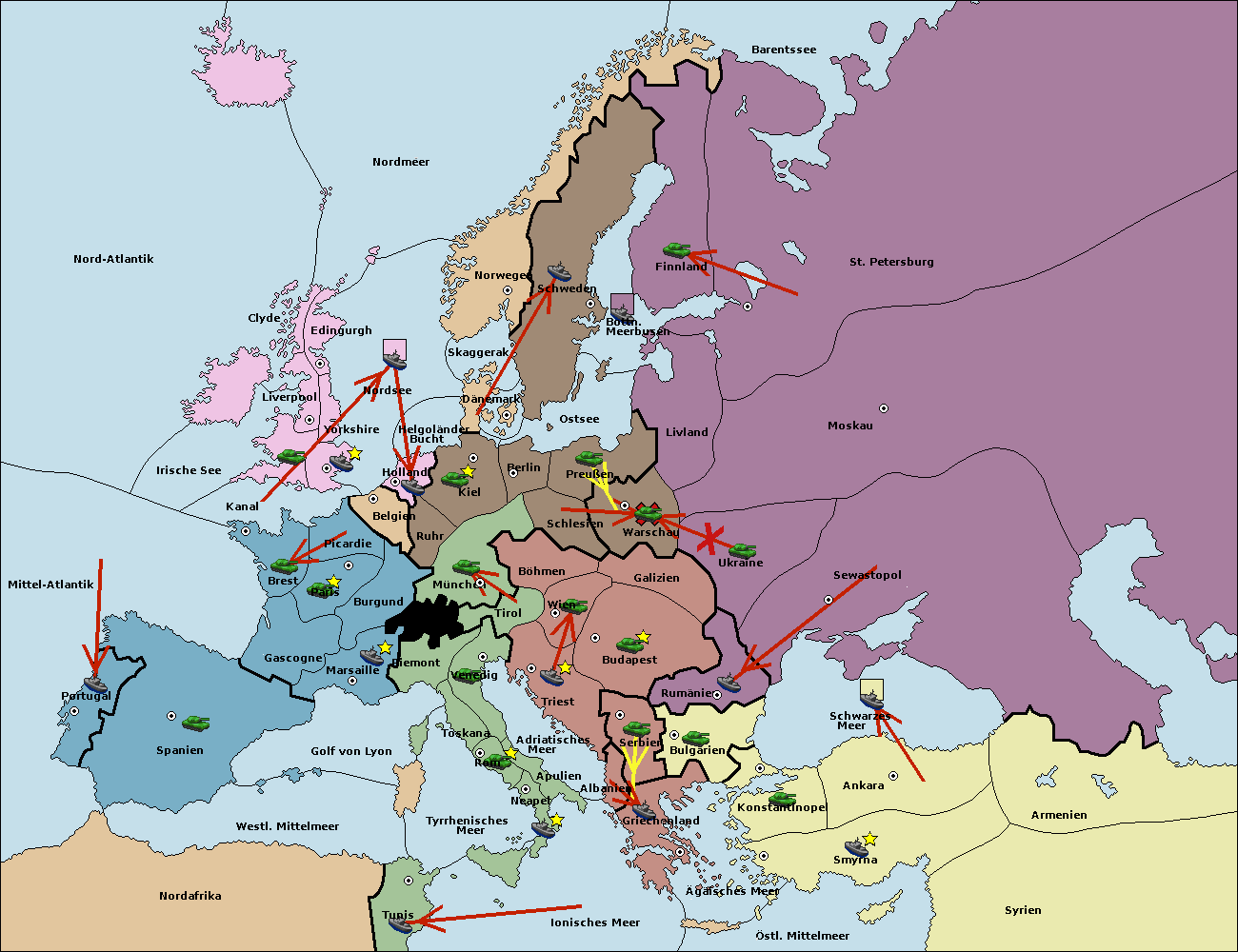 • Die Flotte in Nord Afrika support move nach Tunis von westl. Mittelmeer. (gescheitert)