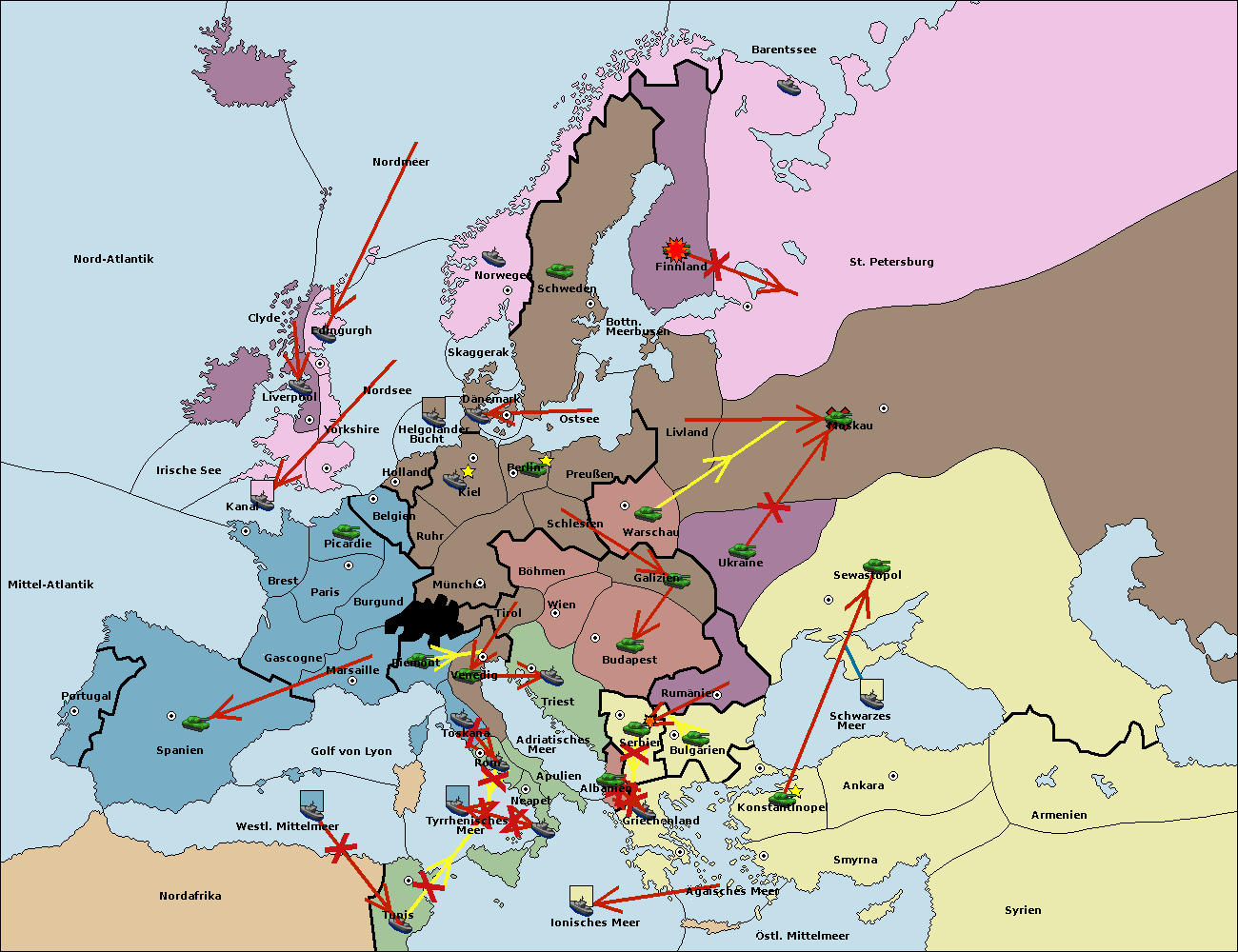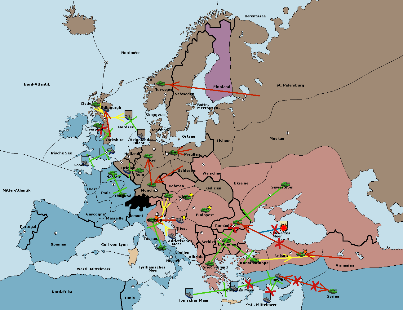 • Die Flotte in Griechenland support hold nach Bulgarien. (gescheitert)