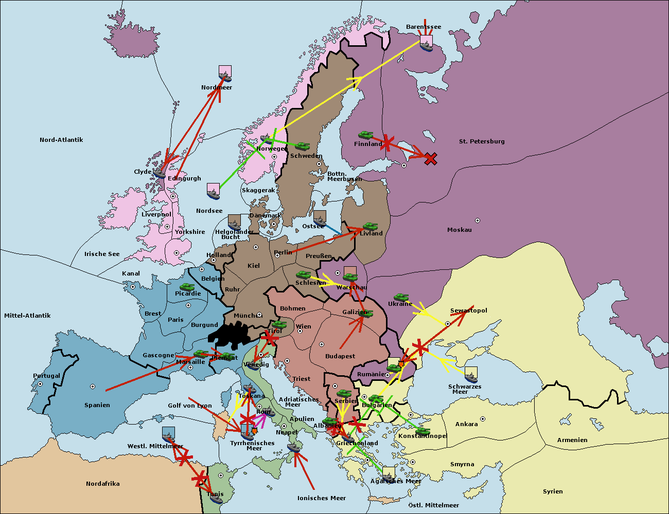 • Die Flotte in St. Petersburg (Nordküste) move nach Norwegen.