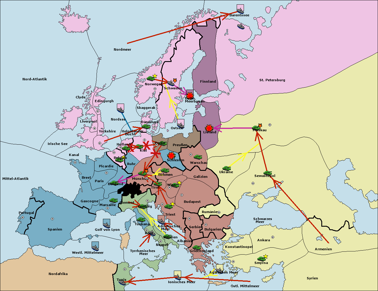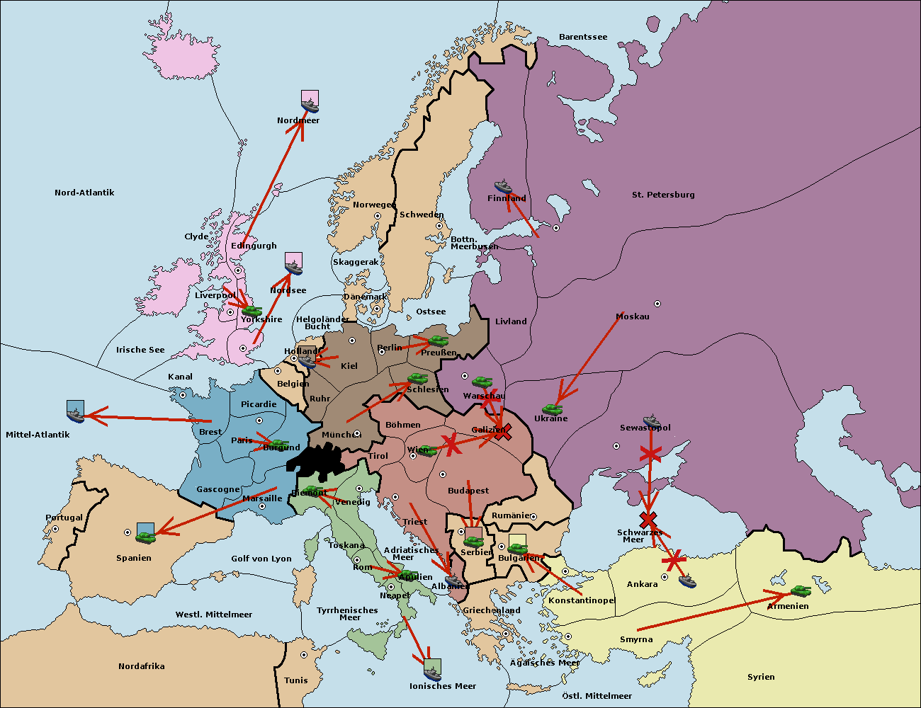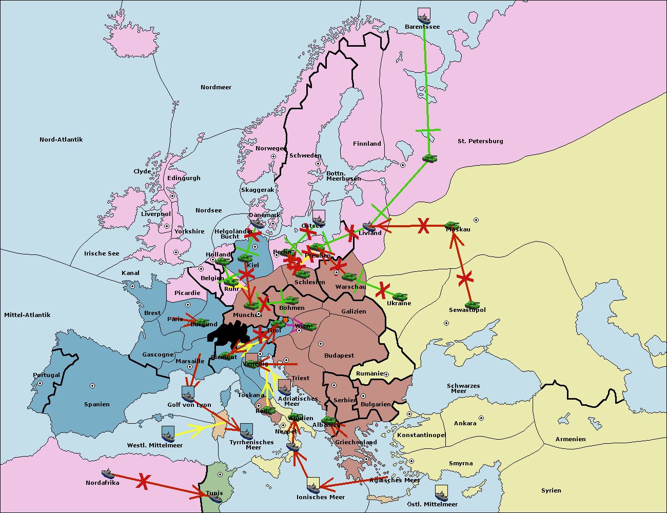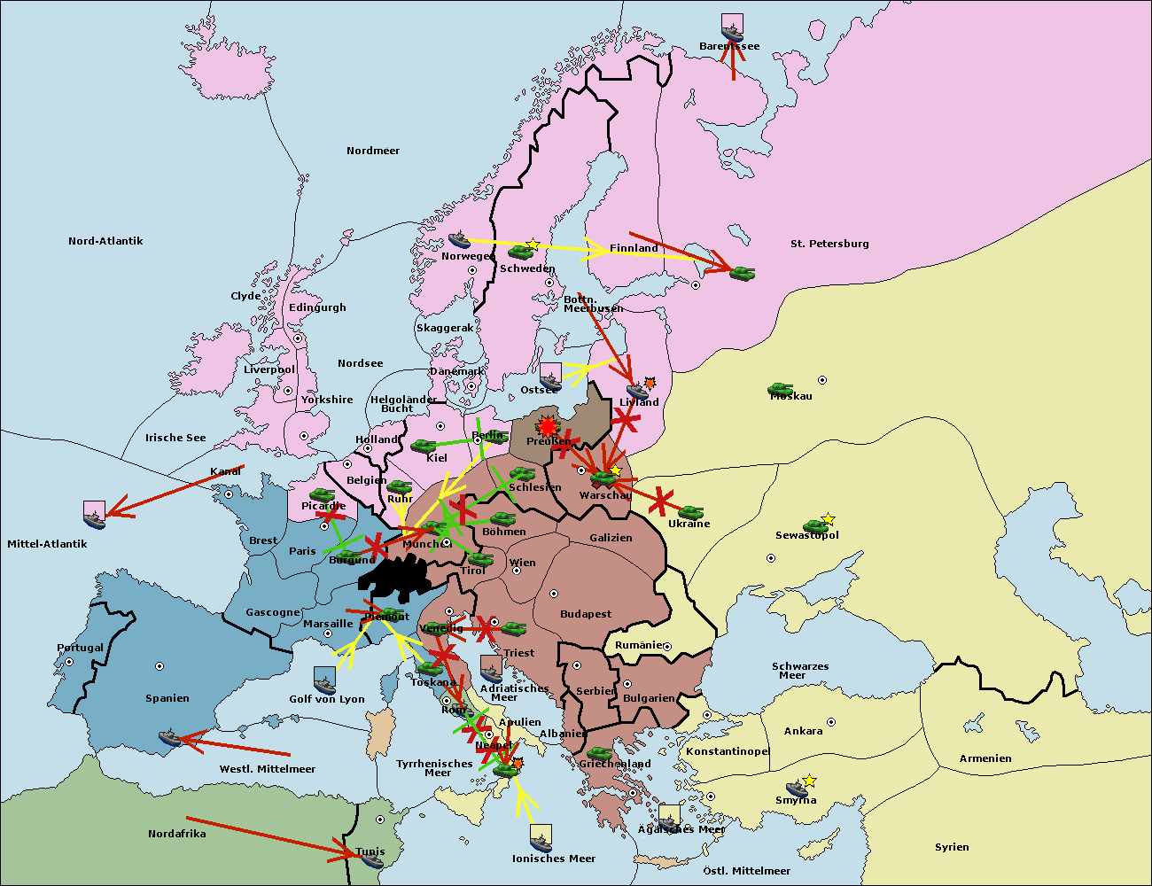 • Die Flotte in Nord Afrika move nach Tunis. (gescheitert)