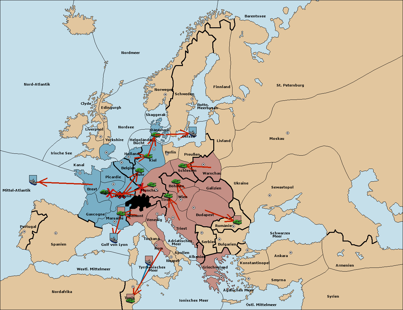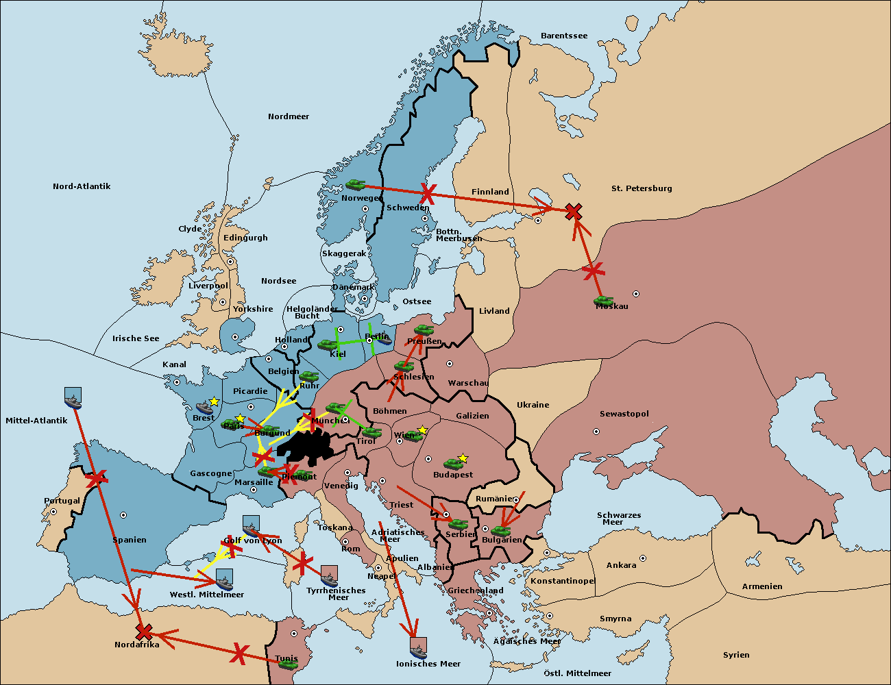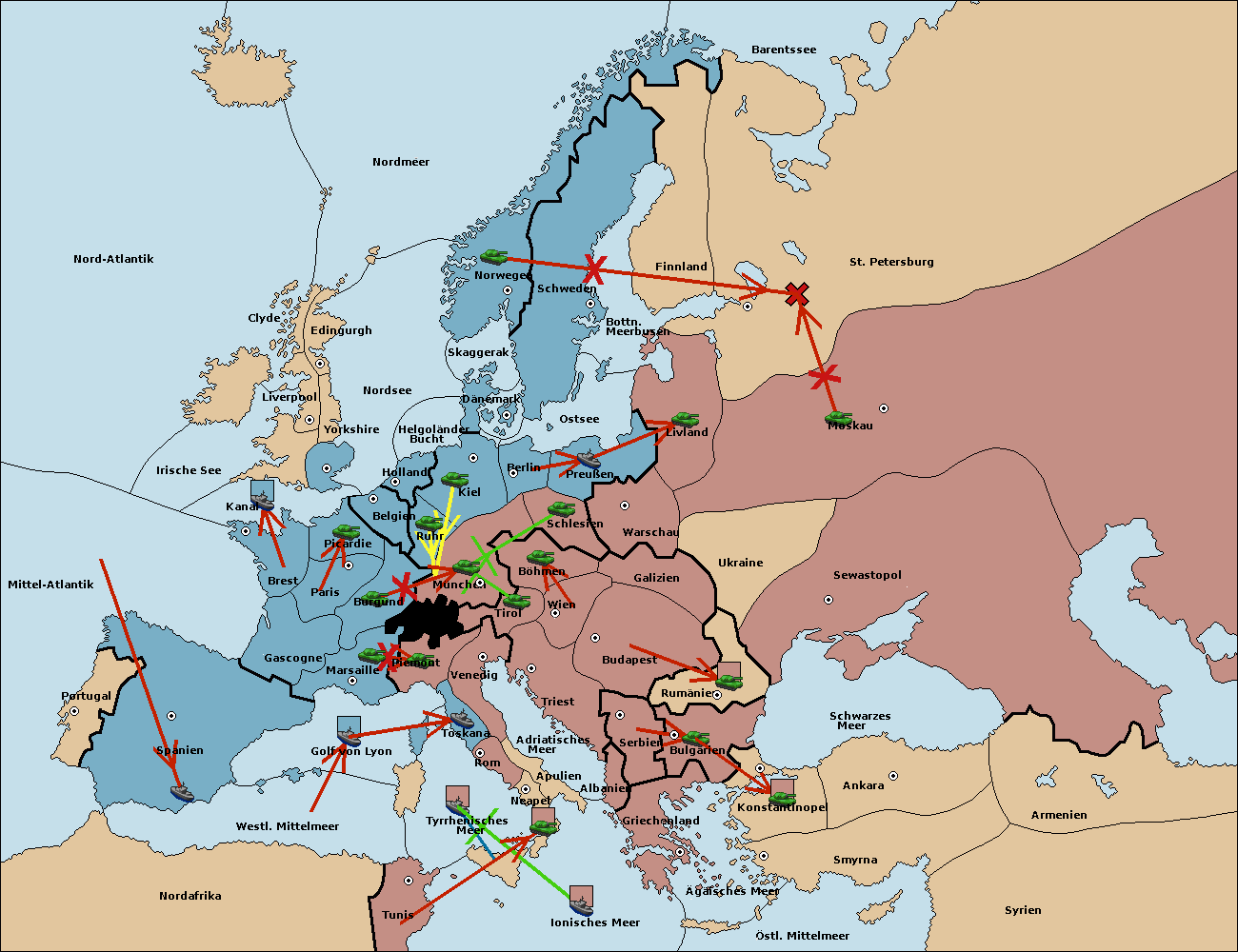 • Die Armee in Tunis move nach Nord Afrika. (gescheitert)