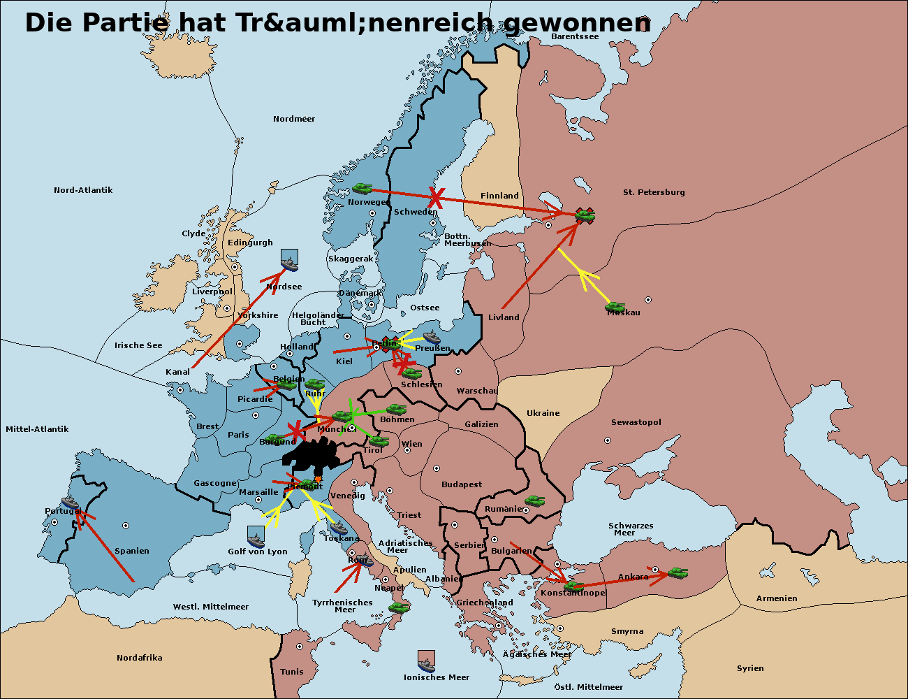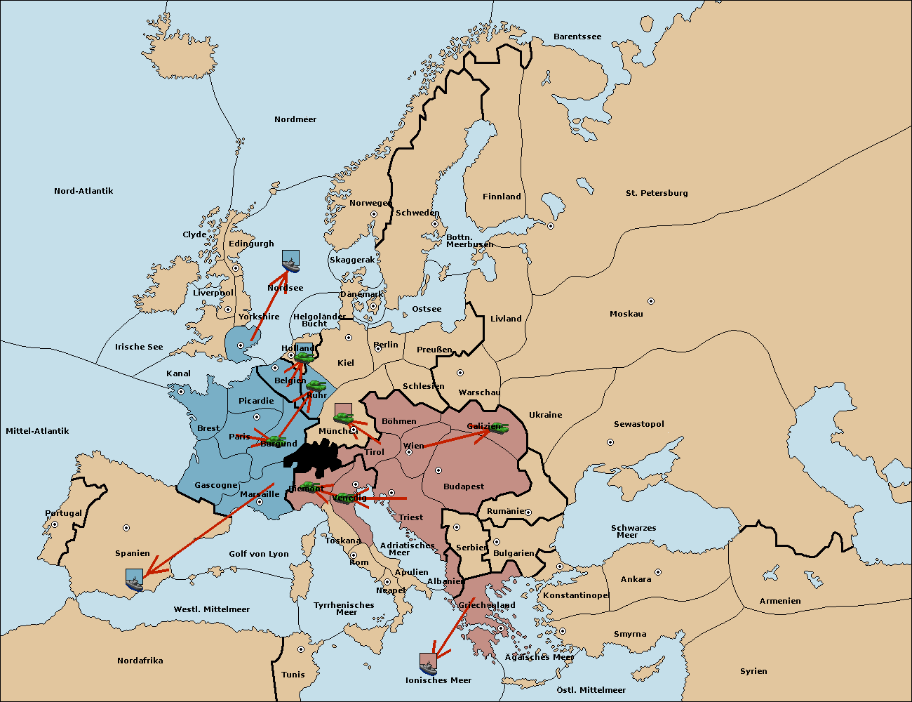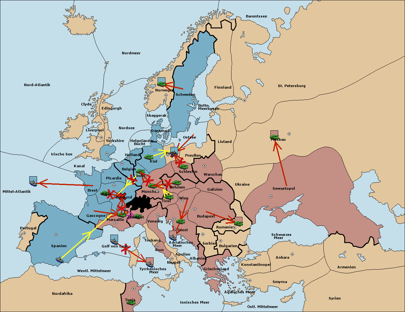 • Die Armee in Tunis move nach Nord Afrika. (gescheitert)