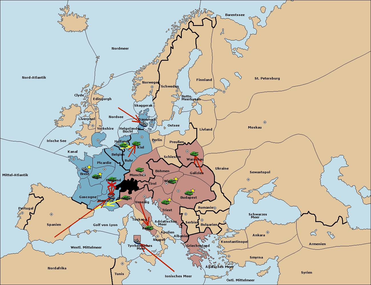 • Die Armee in Kiel support move nach München von Burgund.