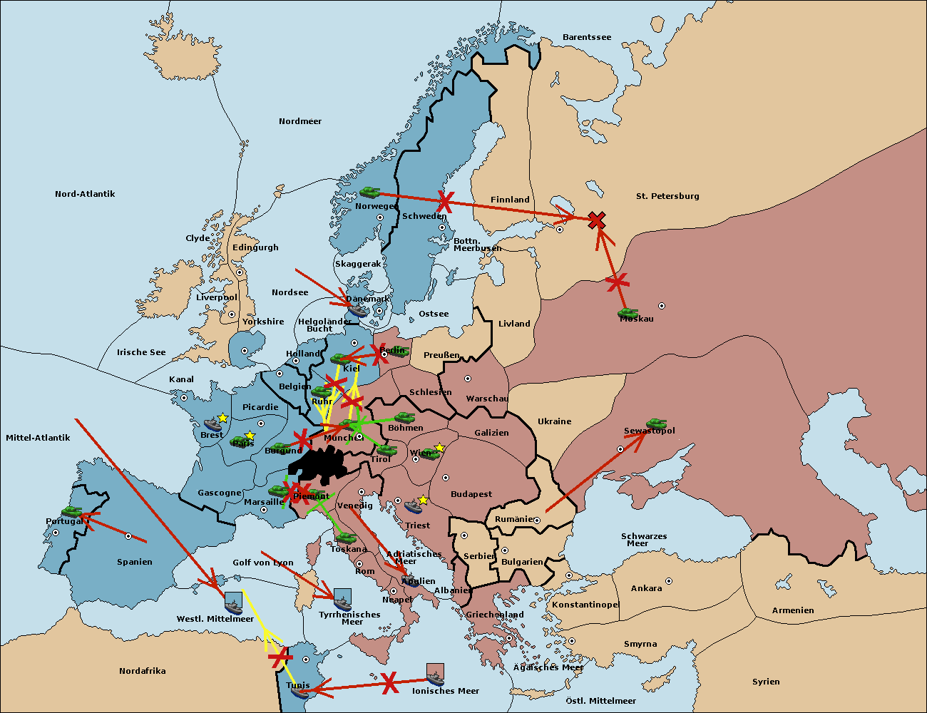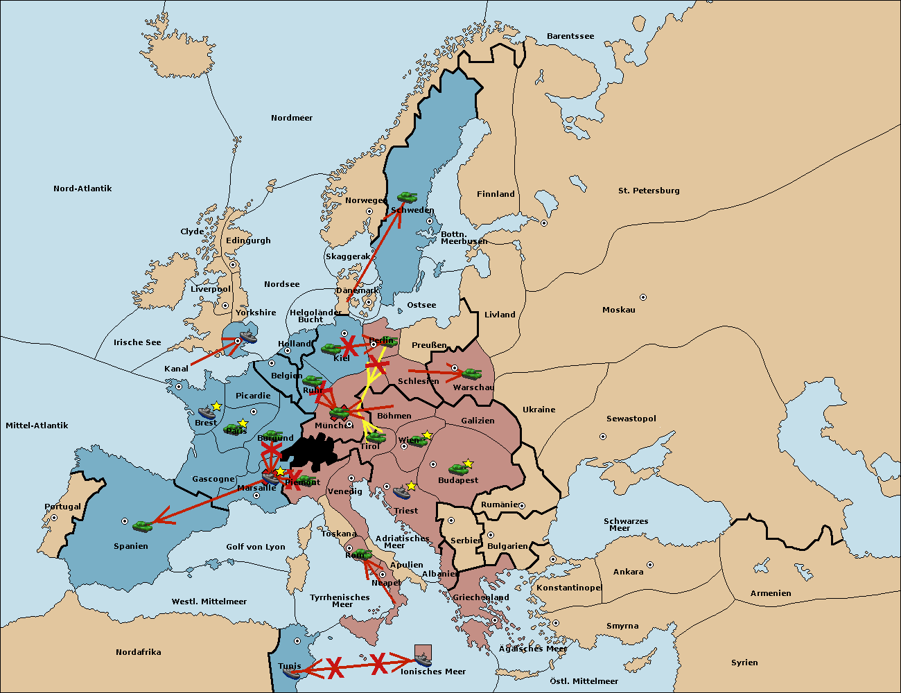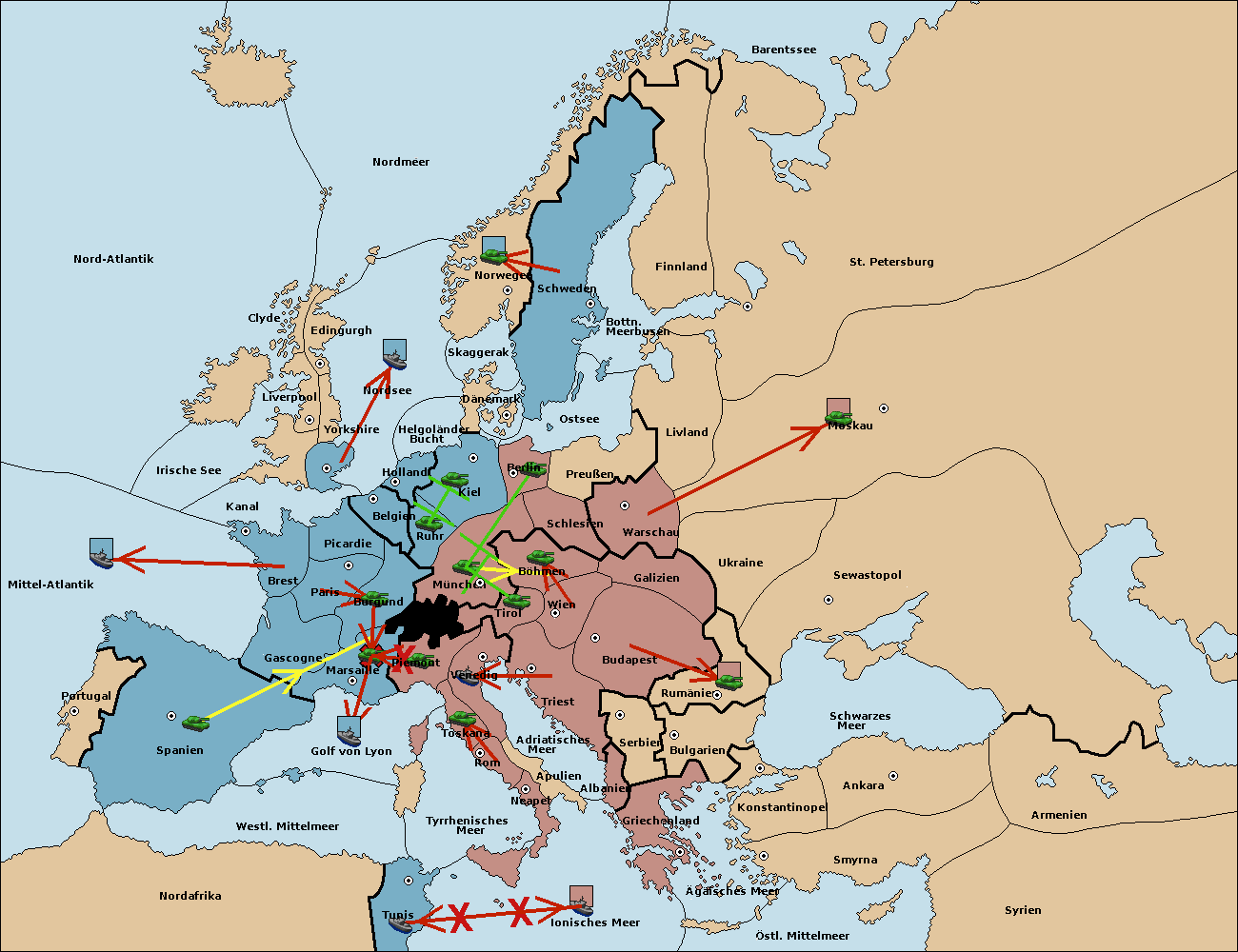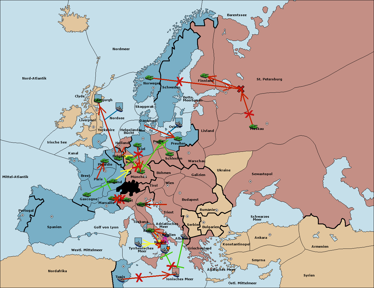 • Die Armee in Kiel support move nach München von Burgund. (gescheitert)