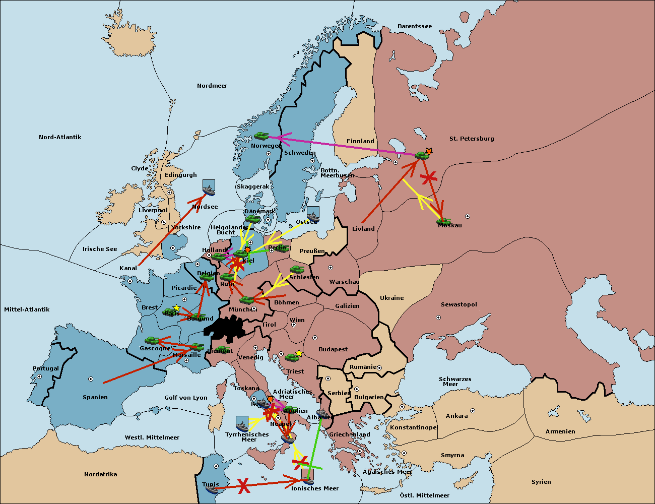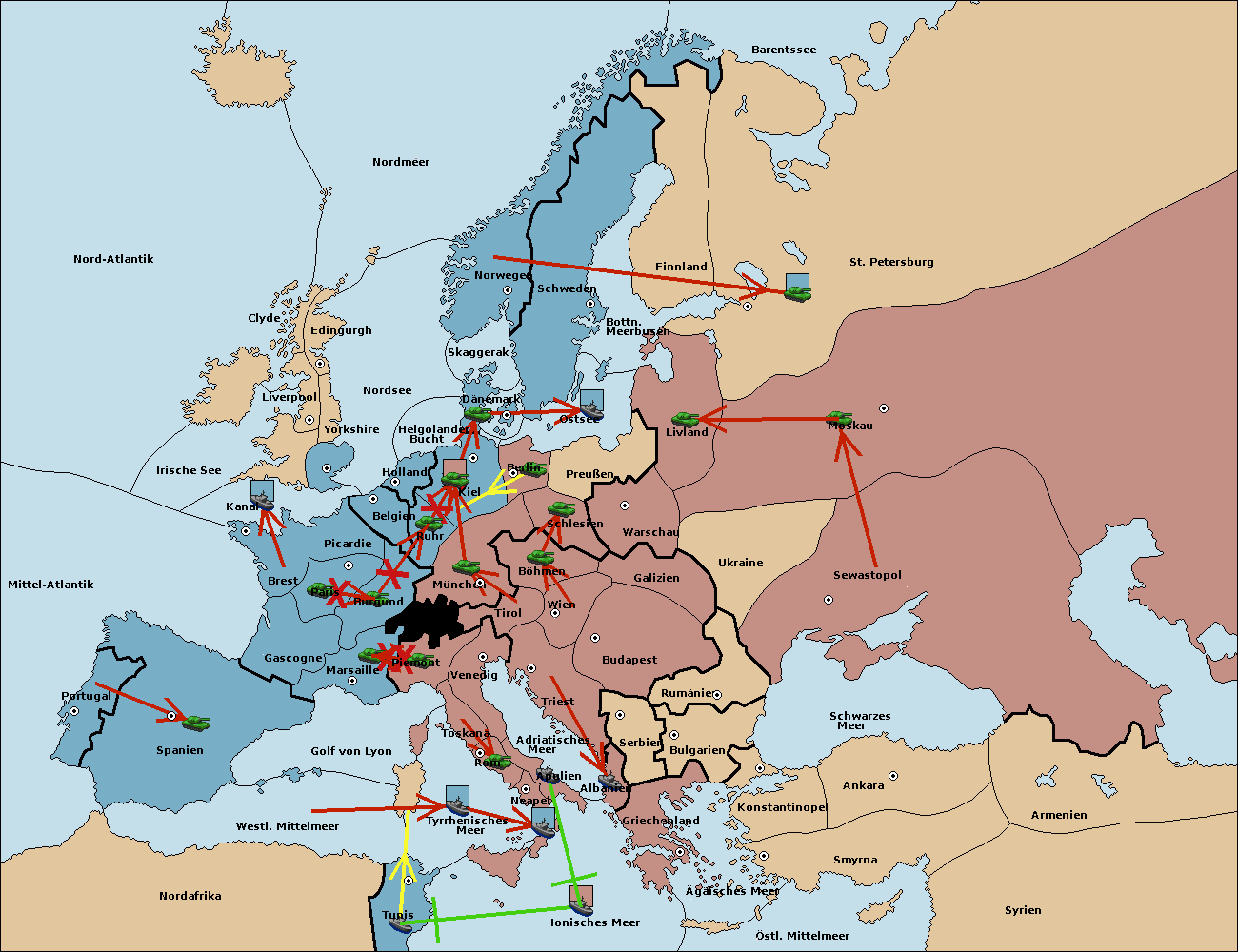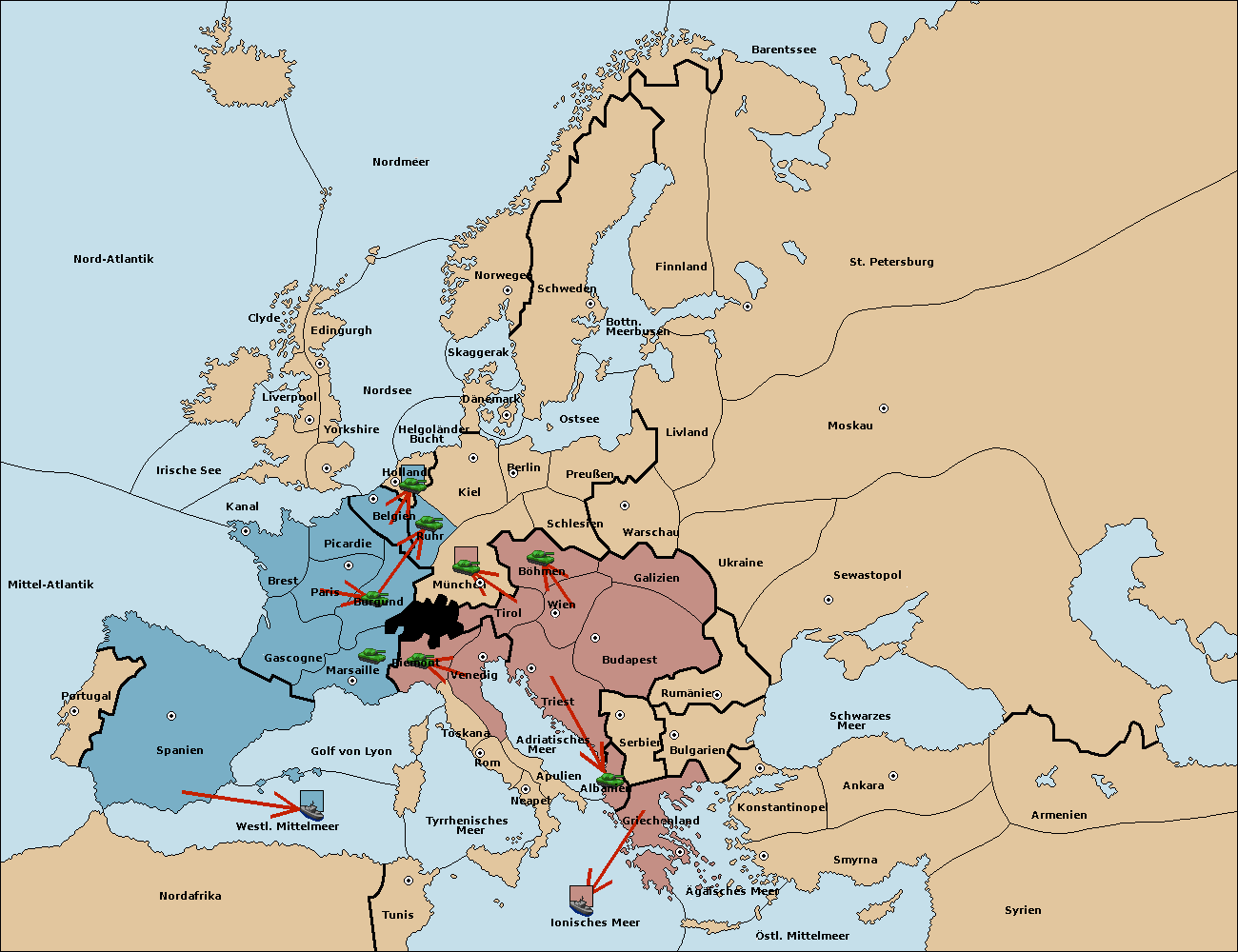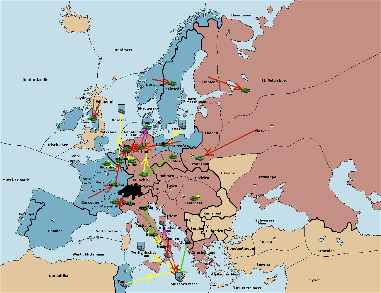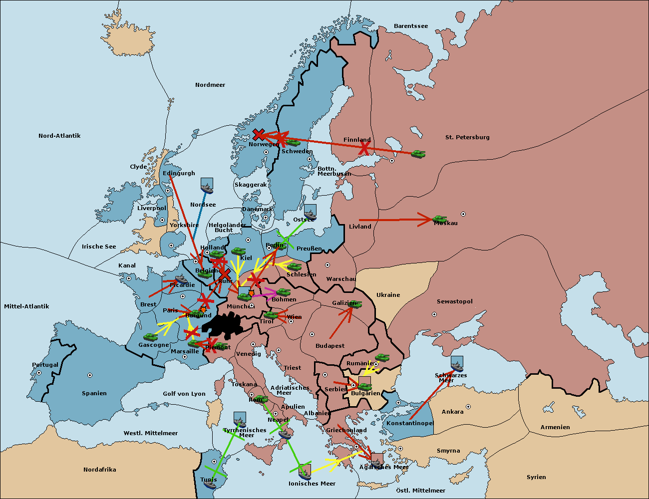 • Die Armee in Kiel support move nach München von Burgund. (gescheitert)