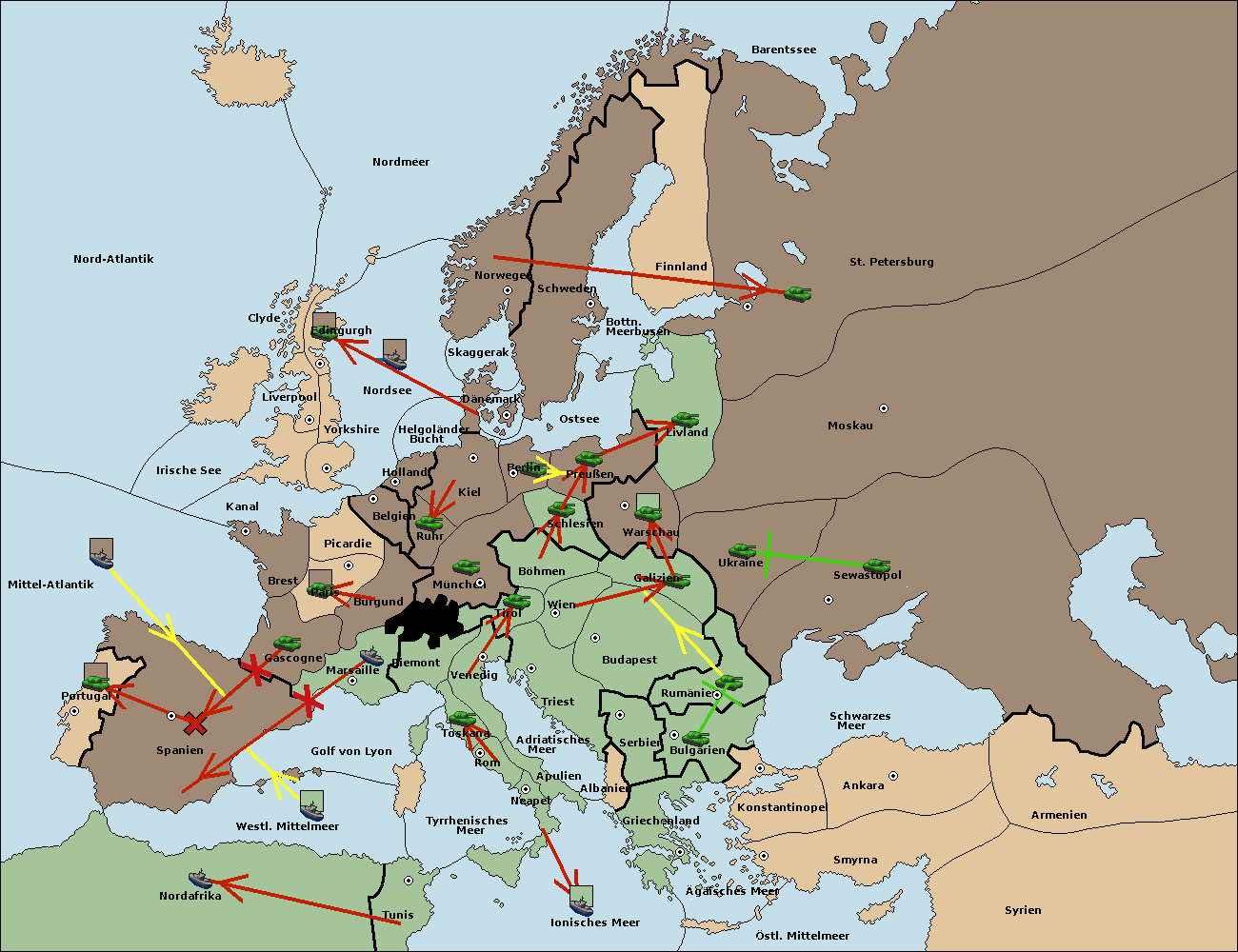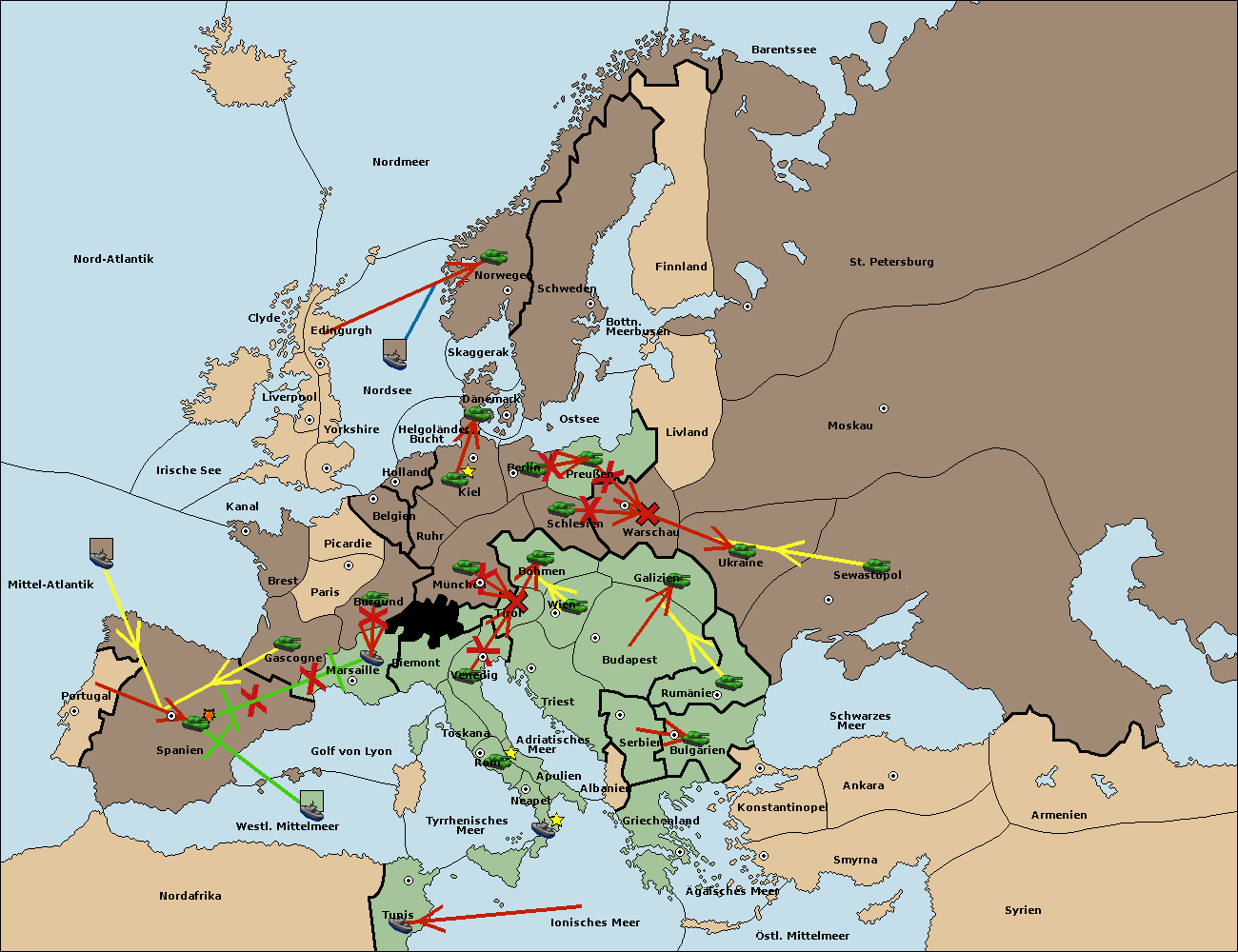 • Die Flotte in westl. Mittelmeer move nach Spanien (Südküste). (gescheitert)