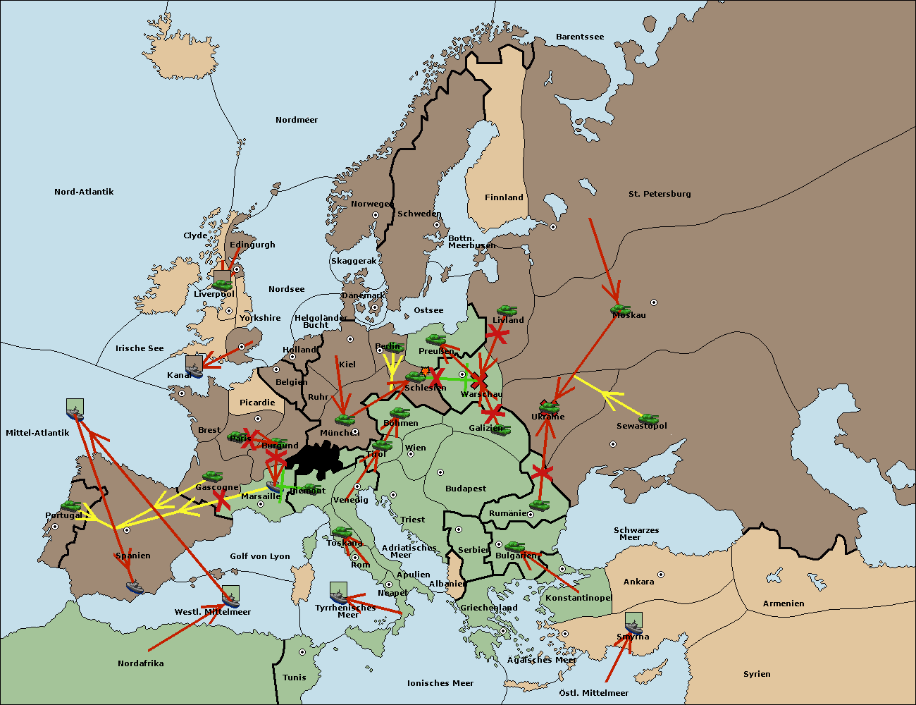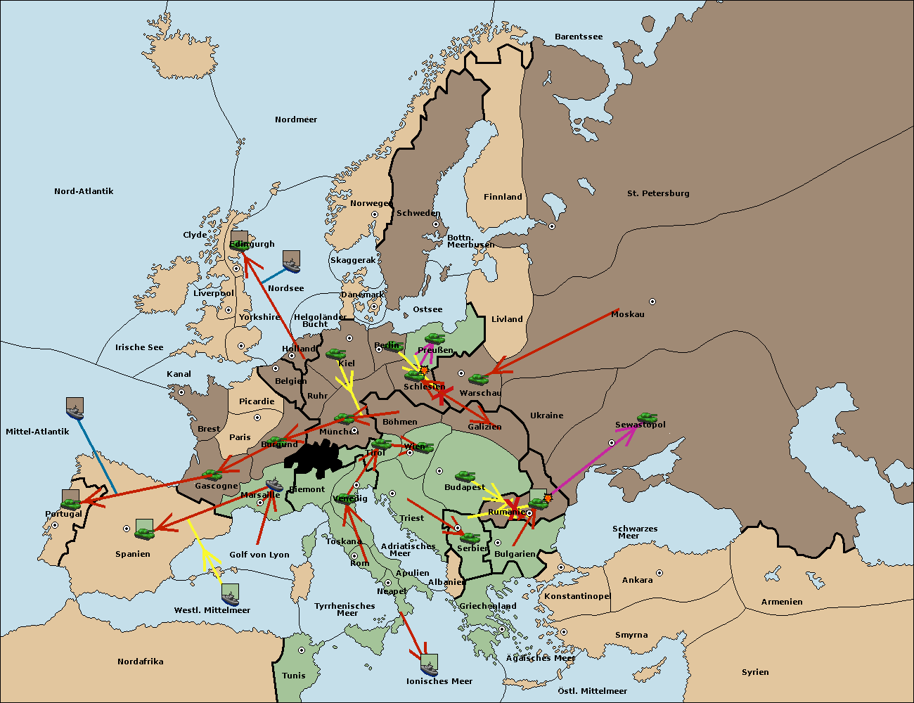 • Die Armee in Warschau support move nach Moskau von St. Petersburg. (gescheitert)